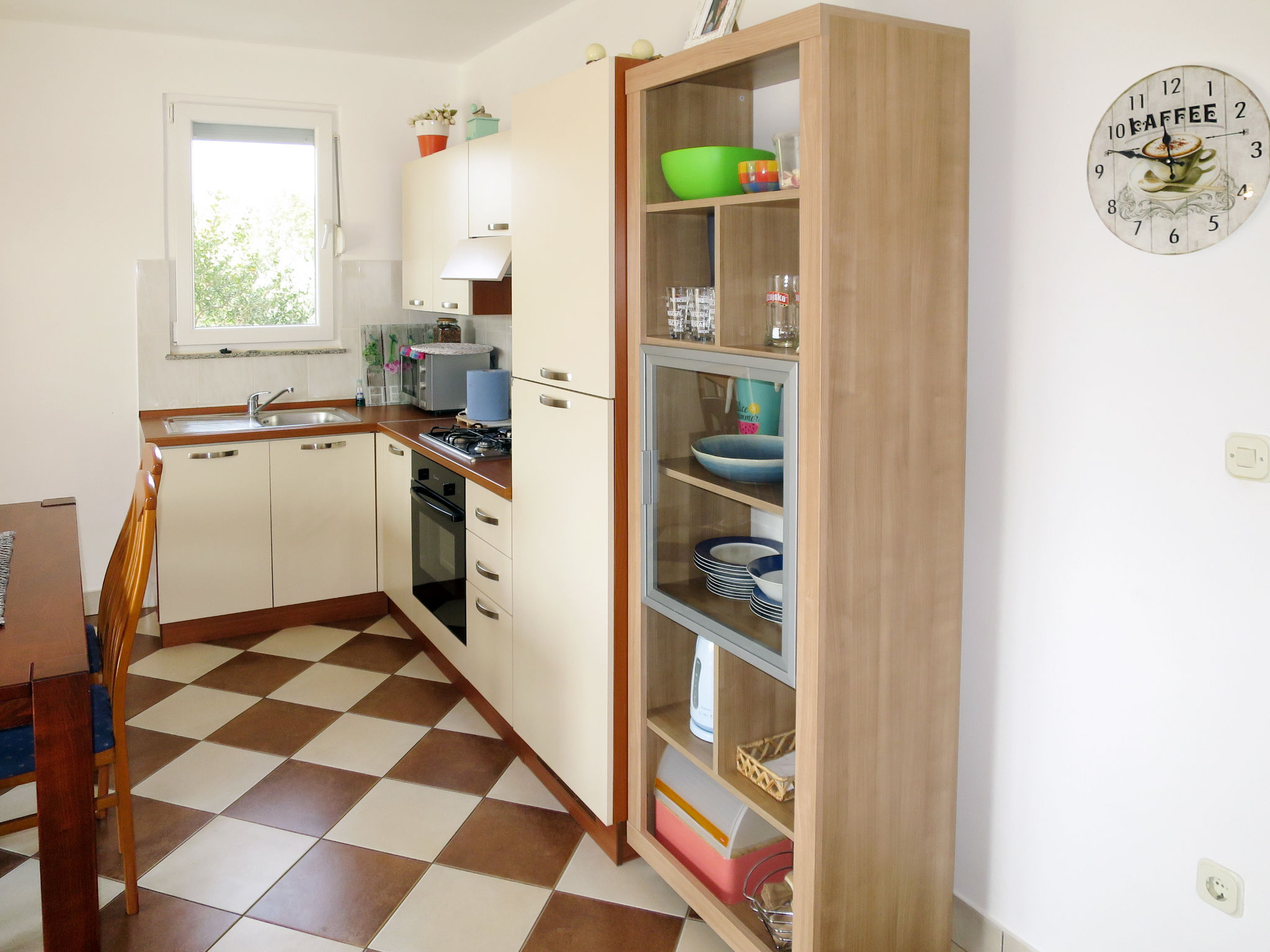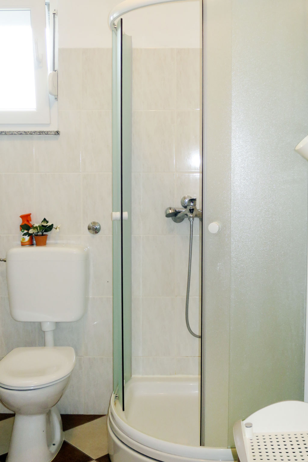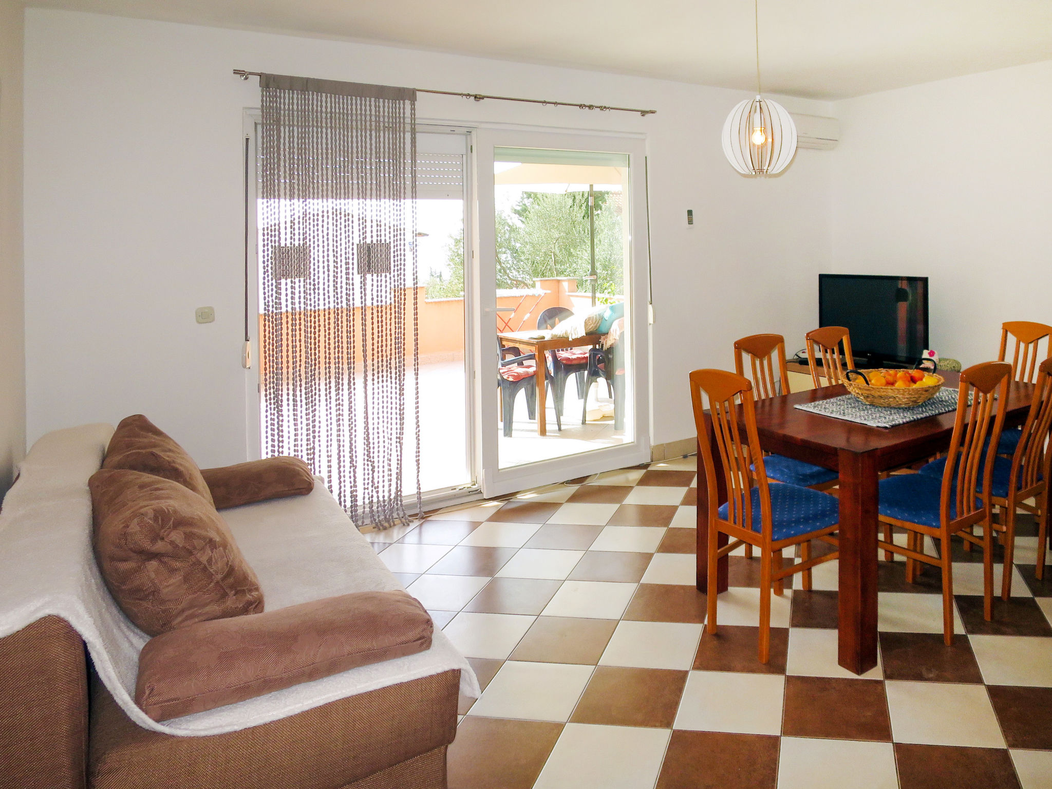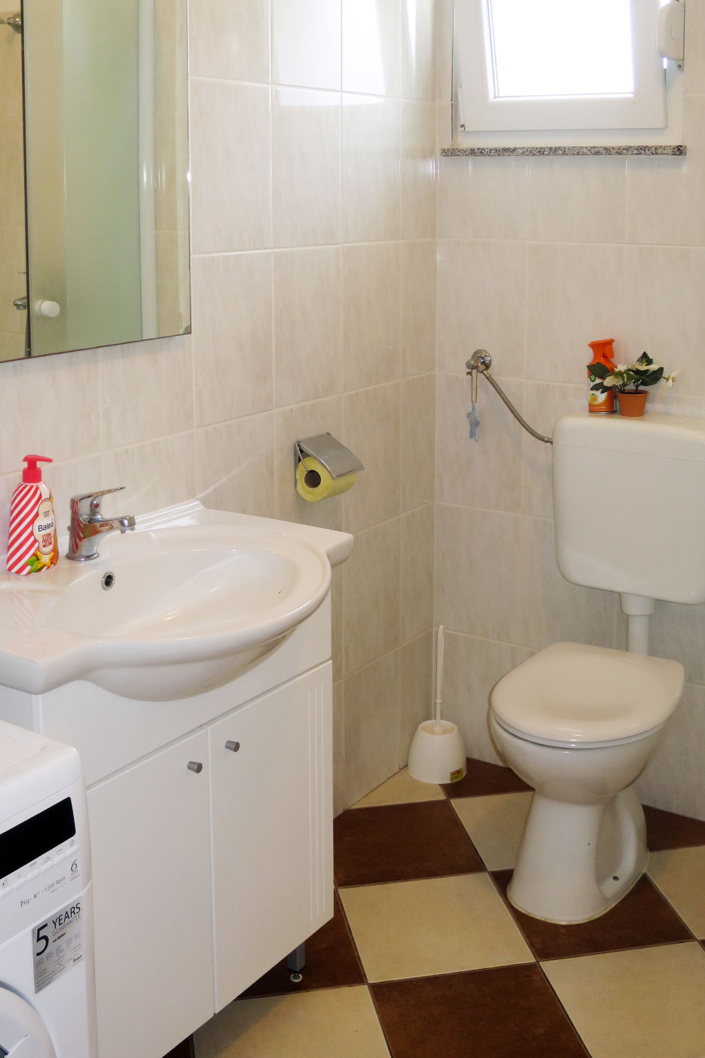 "Tomislav (SRD453)", 3-Zimmer-Wohnung 60 m2, im erhöhten Erdgeschoss. Wohn-/Esszimmer mit 1 Doppeldiwanbett, Sat-TV und Klimaanlage. Ausgang zur Terrasse. 1 Zimmer mit 2 Betten. 1 Zimmer mit 1 franz. Bett (160 cm, Länge 200 cm). Offene Küche (1 Kochplatte, Backofen, 3 Flammen, Toaster, Wasserkocher, Mikrowelle, Tiefkühler, elektrische Kaffeemaschine). Dusche/WC. Terrasse 25 m2 teilweise. Terrassenmöbel. Zur Verfügung: Waschmaschine. Internet (Wireless LAN, gratis). Maximal 2 Haustiere/Hunde erlaubt.
