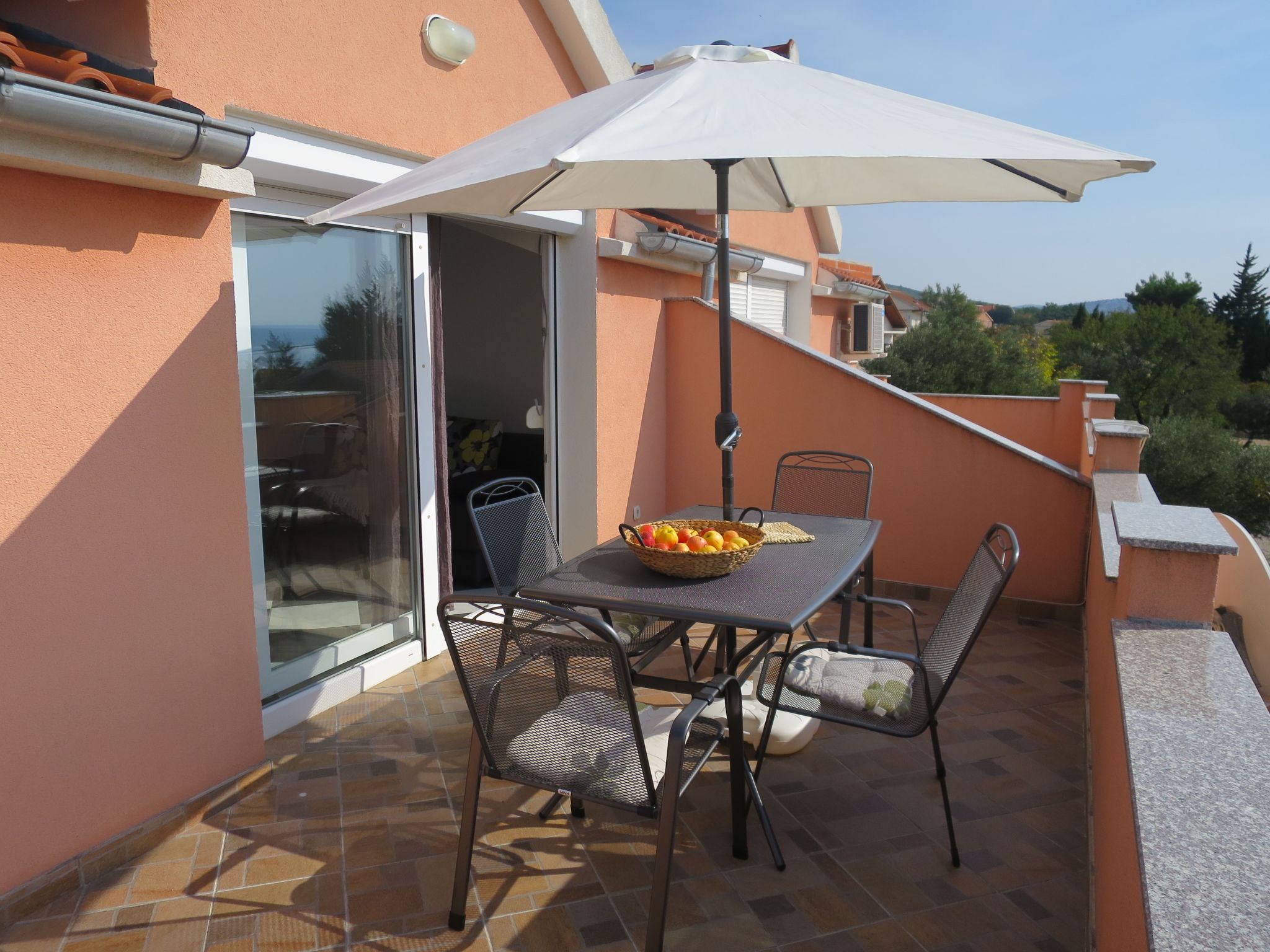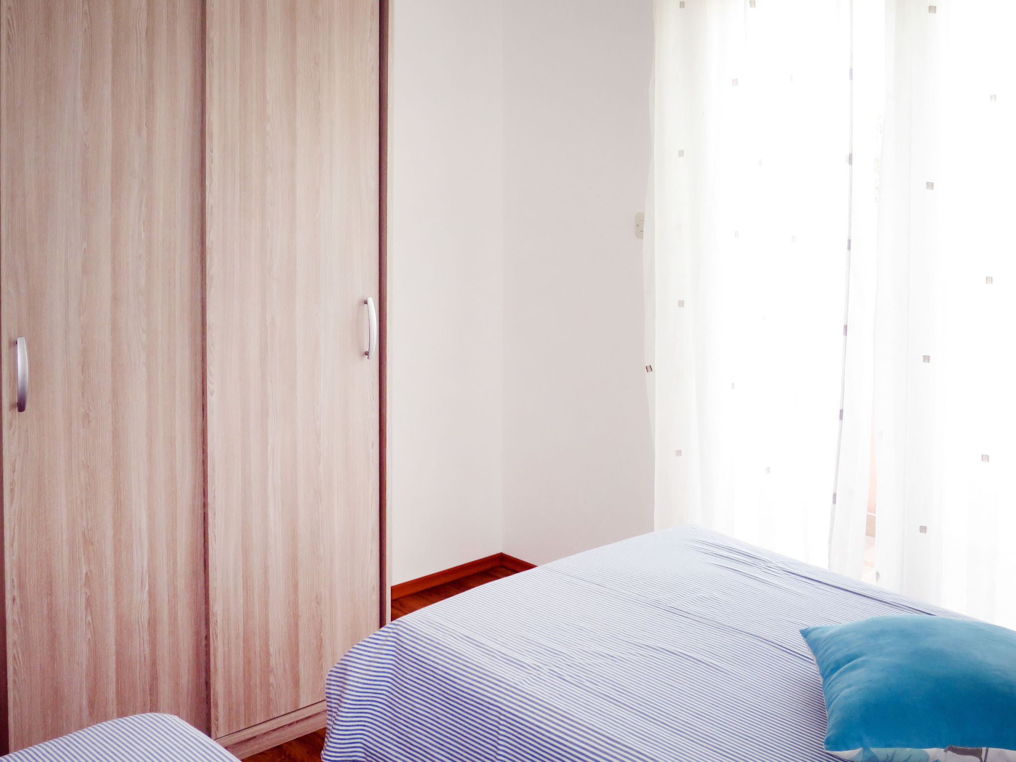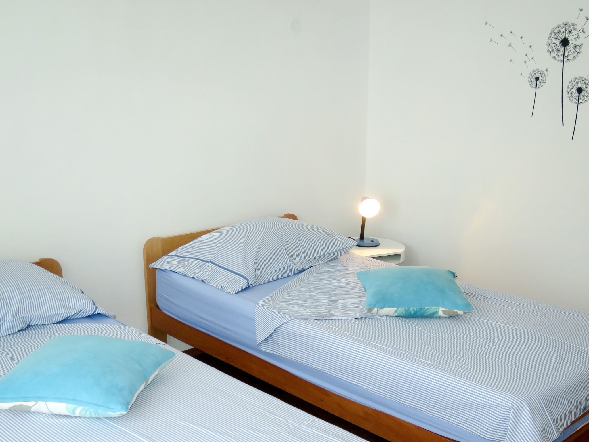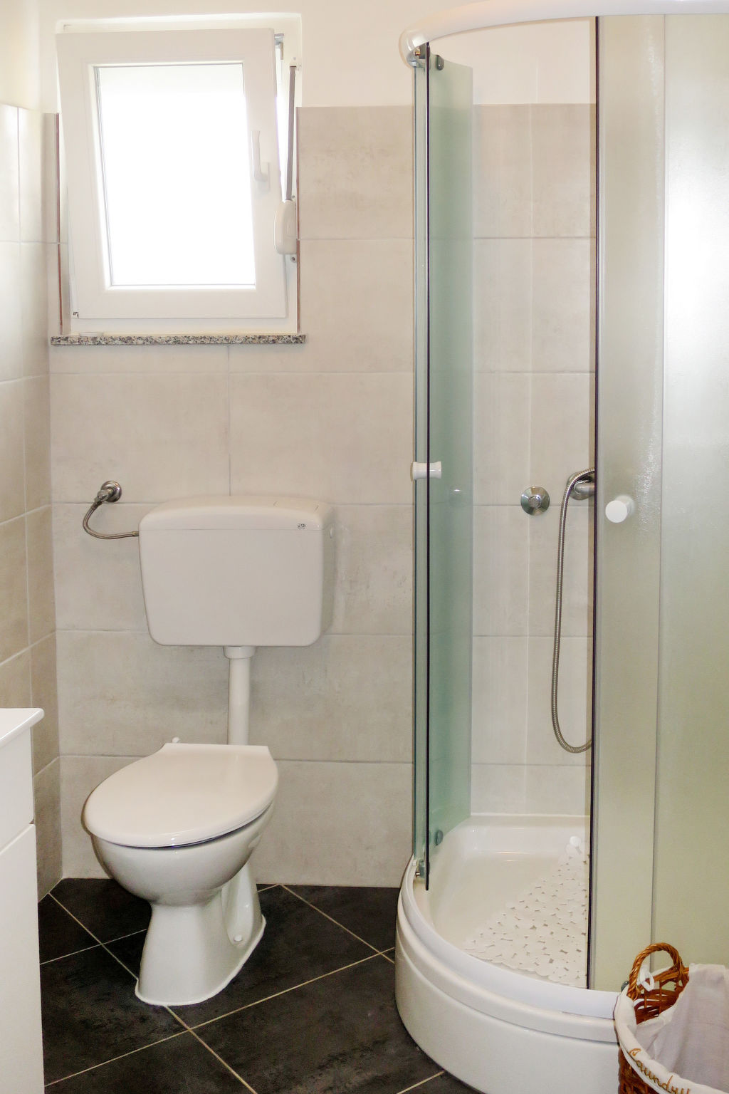 "Tomislav (SRD454)", 3-Zimmer-Wohnung 60 m2 im 1. Stock. Wohn-/Esszimmer mit 1 Doppeldiwanbett, Sat-TV und Klimaanlage. Ausgang zum Balkon. 1 Zimmer mit 2 Betten. Ausgang zum Balkon. 1 Zimmer mit 1 franz. Bett (160 cm, Länge 200 cm). Ausgang zum Balkon. Offene Küche (2 Kochplatten, Backofen, 2 Flammen, Toaster, Wasserkocher, Mikrowelle, Tiefkühler, elektrische Kaffeemaschine). Dusche/WC. Balkon 15 m2, Balkon 5 m2. Balkonmöbel. Sicht auf das Meer. Zur Verfügung: Waschmaschine. Internet (Wireless LAN, gratis). Maximal 2 Haustiere/Hunde erlaubt.