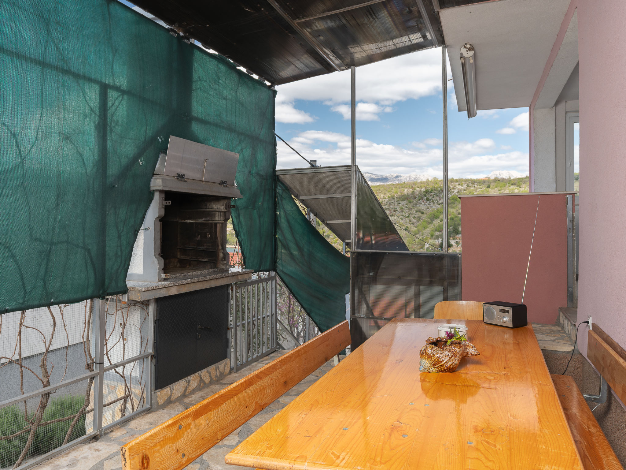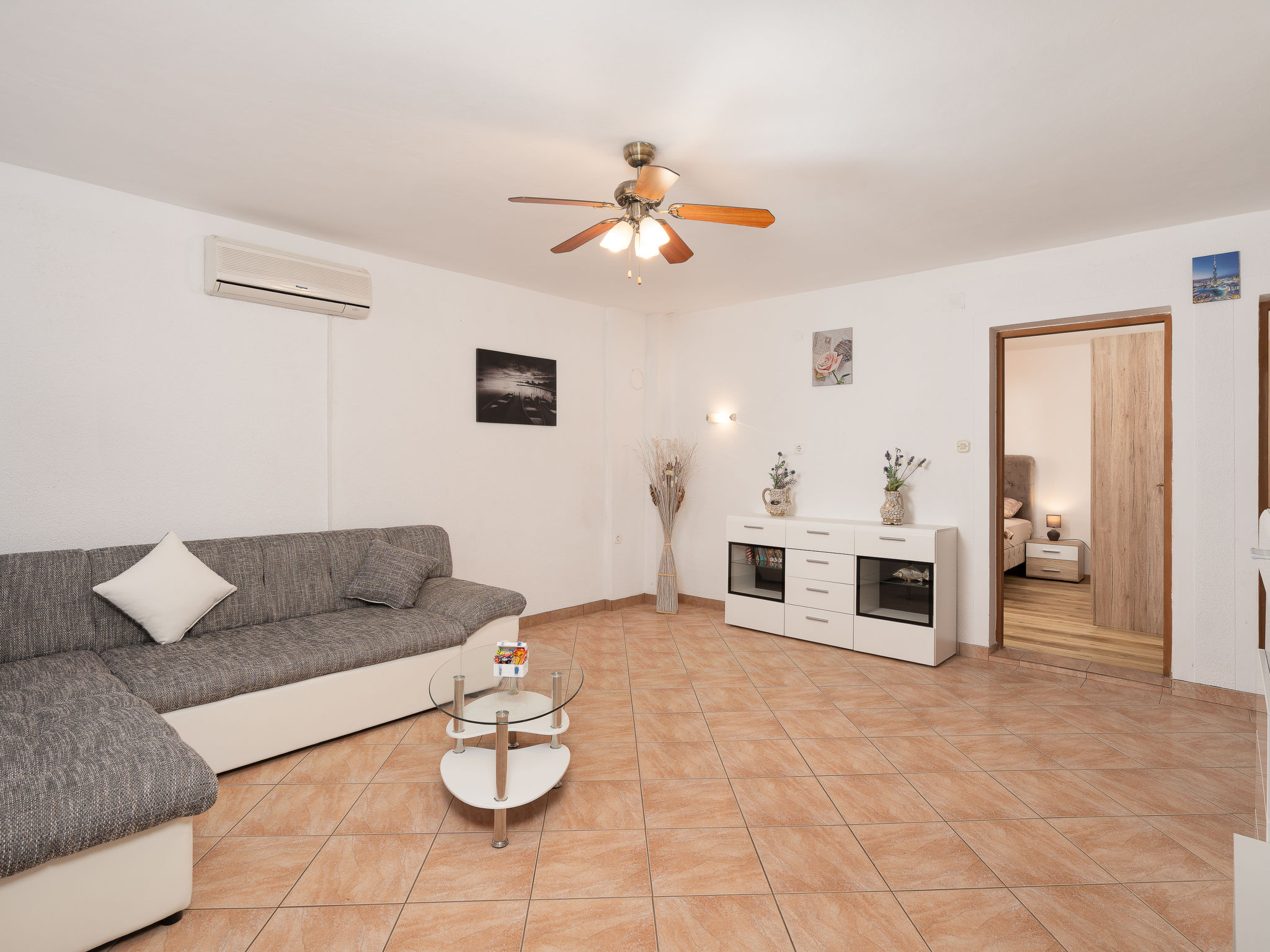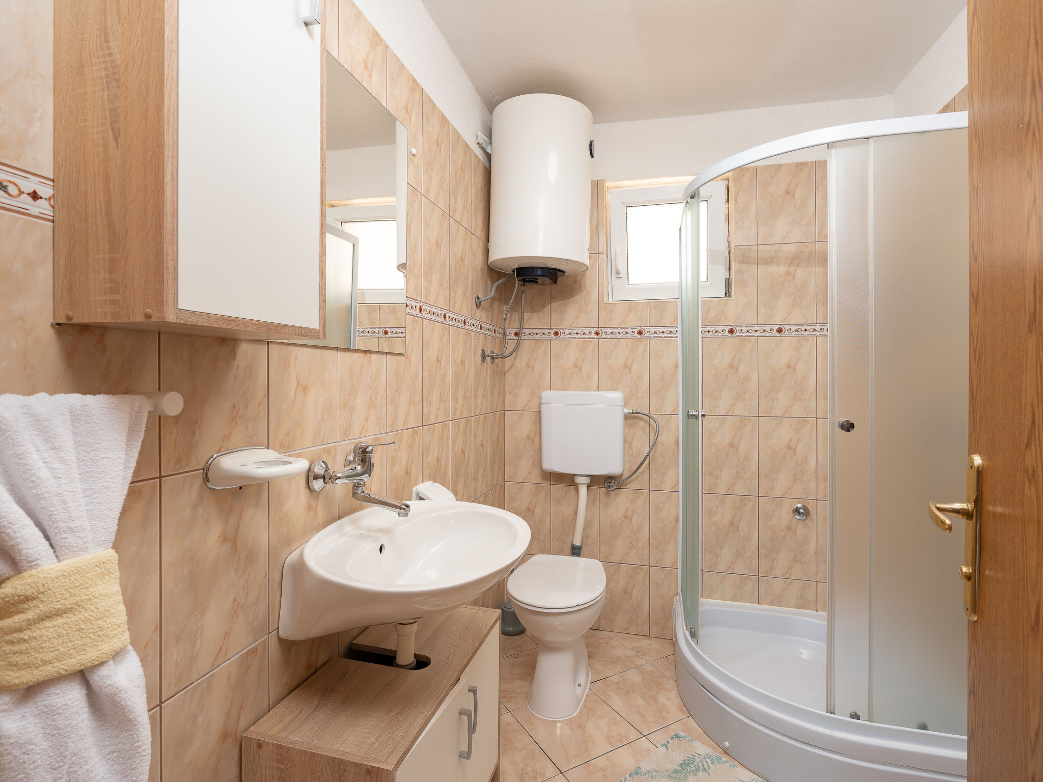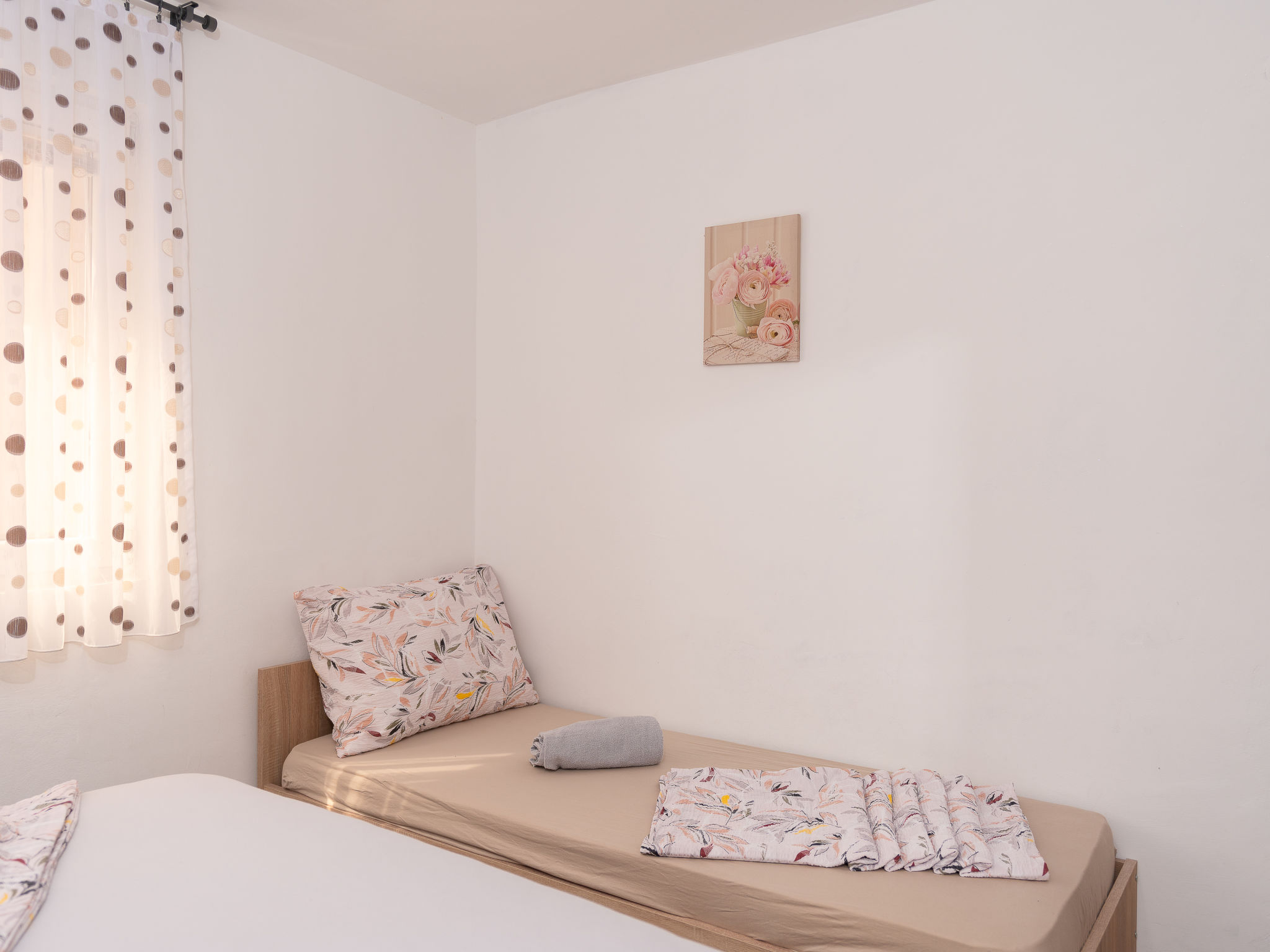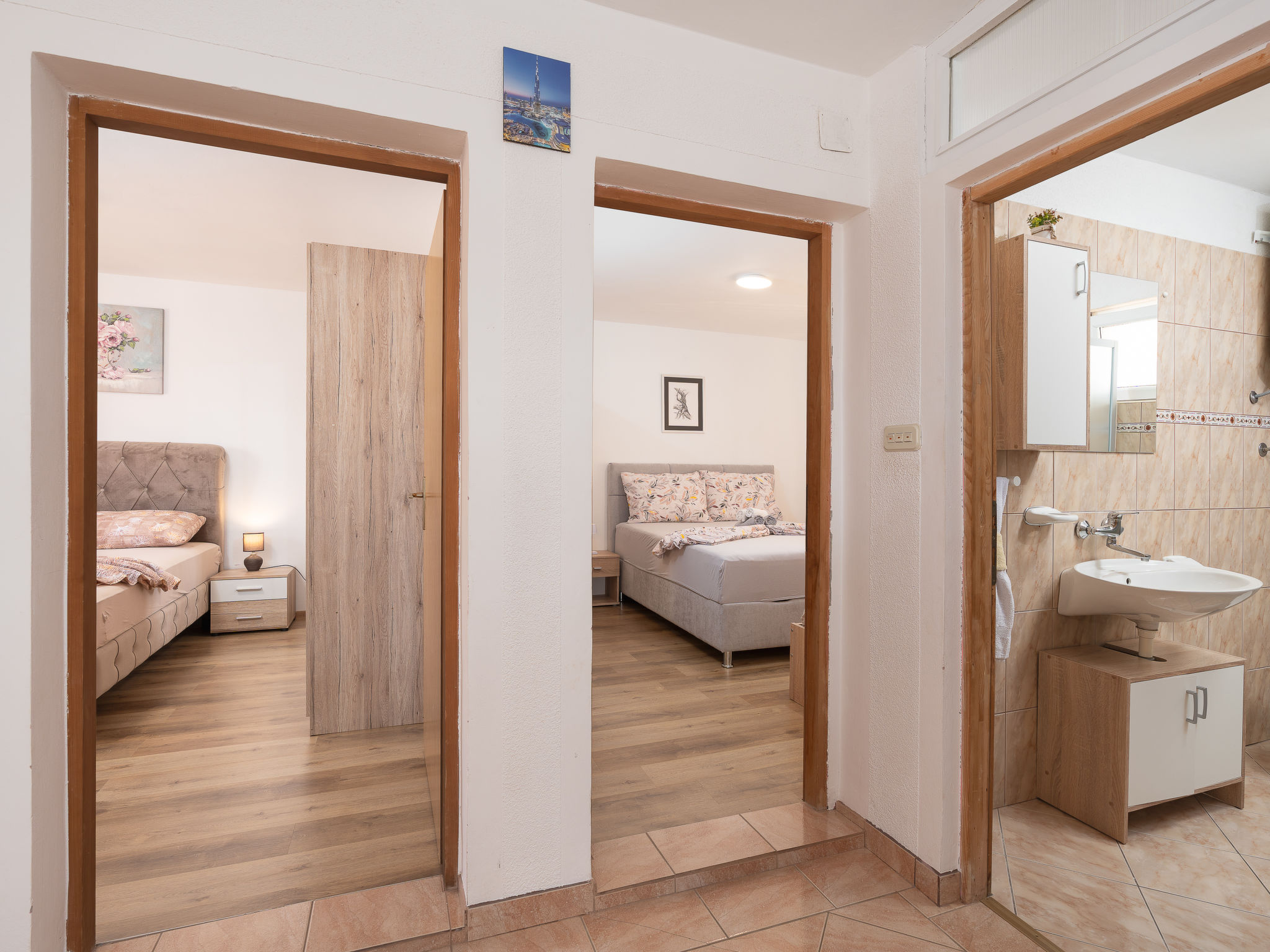 Ribnica 15 km von Novigrad: Dreifamilienhaus "Mia". 12 km vom Zentrum von Obrovac, ruhige, sonnige, erhöhte Lage, 80 m vom Meer, 80 m vom Strand. Zur Mitbenutzung: Grundstück 160 m2 (eingezäunt). Gartenmöbel, Grill. Im Hause: Internetzugang. Parkplatz beim Haus auf dem Grundstück. Einkaufsgeschäft 1 km, Restaurant 1 km, Kieselstrand 80 m. Zugang zum Strand über 30 Stufen.