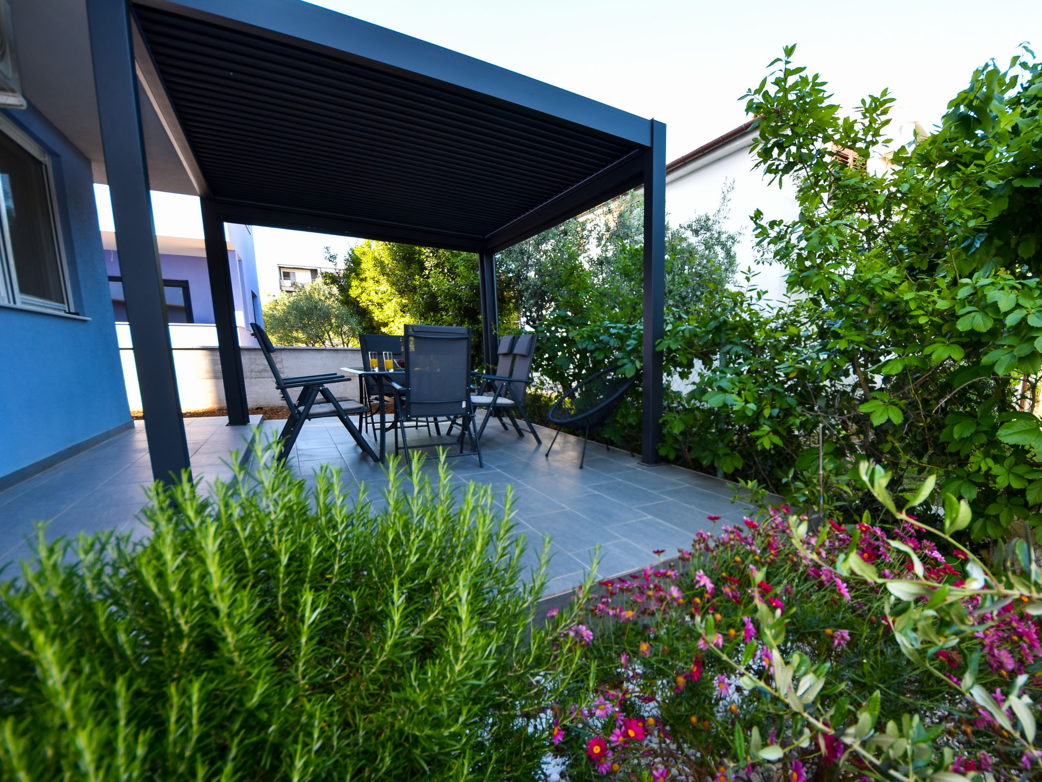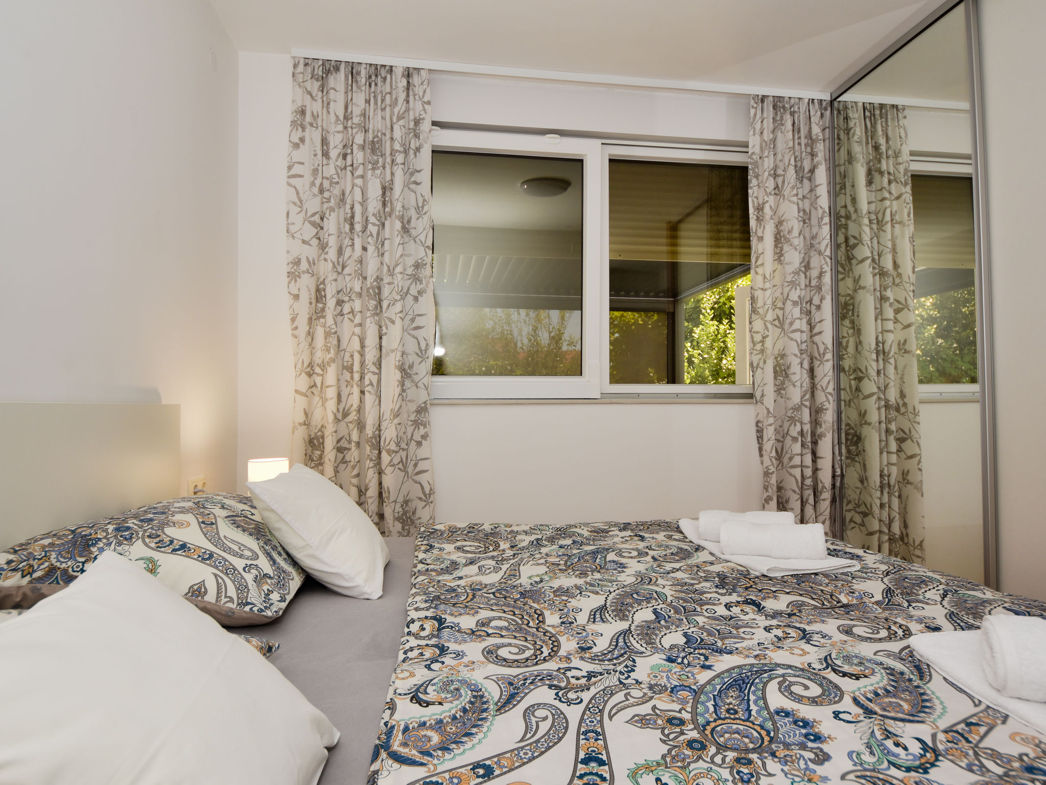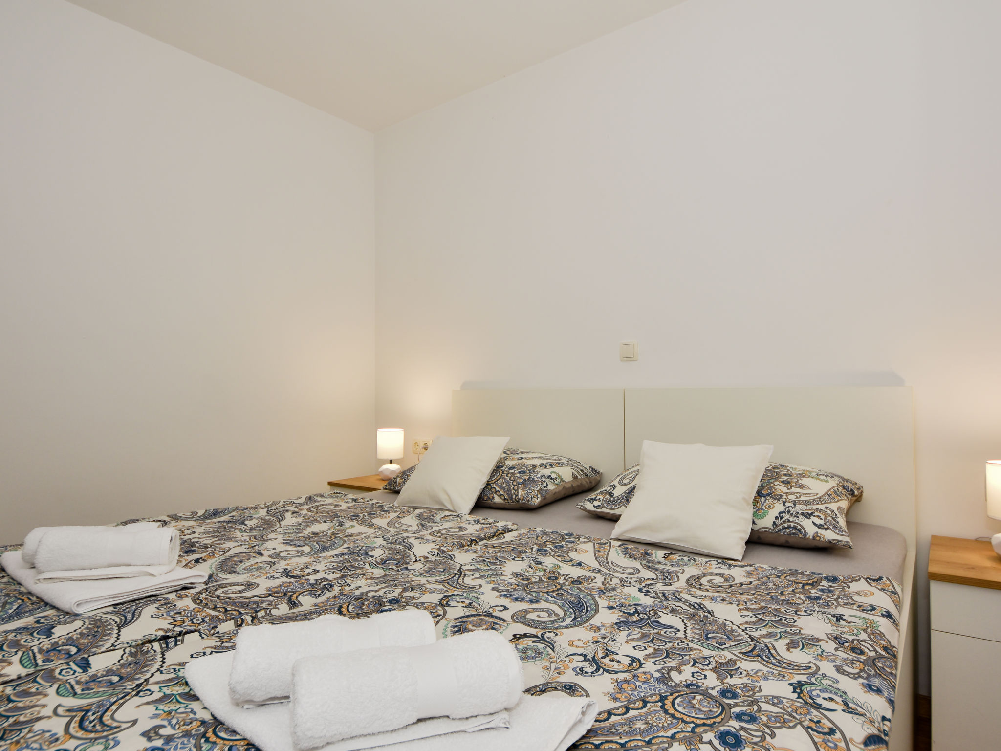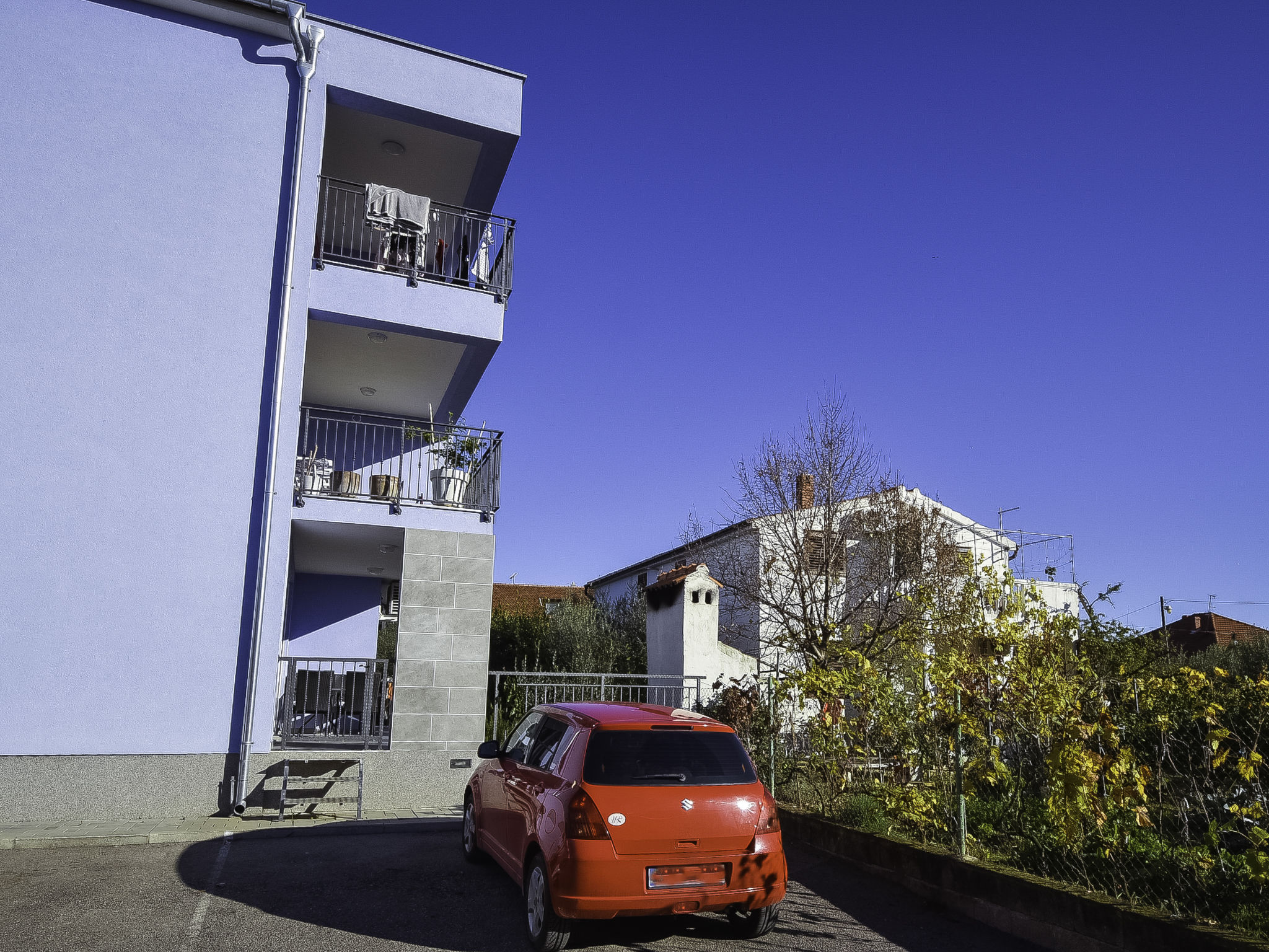 Kleines Appartementhaus, Baujahr 2021. Im Ortsteil Belafuža, 3.5 km vom Zentrum, sonnige, erhöhte Lage, 3 km vom Meer, 3 km vom Strand. Im Hause: Internetzugang. Parkplatz beim Haus. Einkaufsgeschäft, Restaurant 500 m, Kieselstrand 3 km. Tennis 3.5 km. Bitte beachten: Flugplatz 20 km vom Haus.