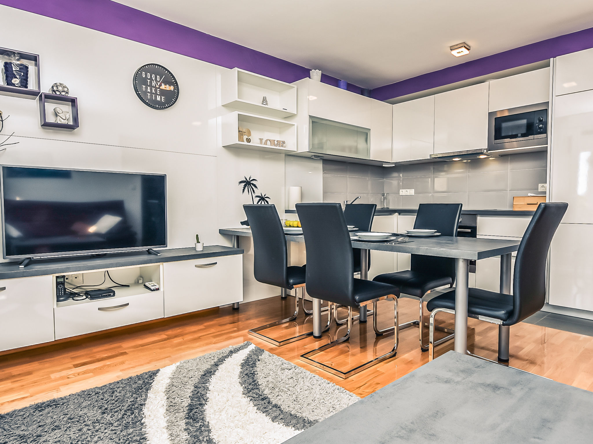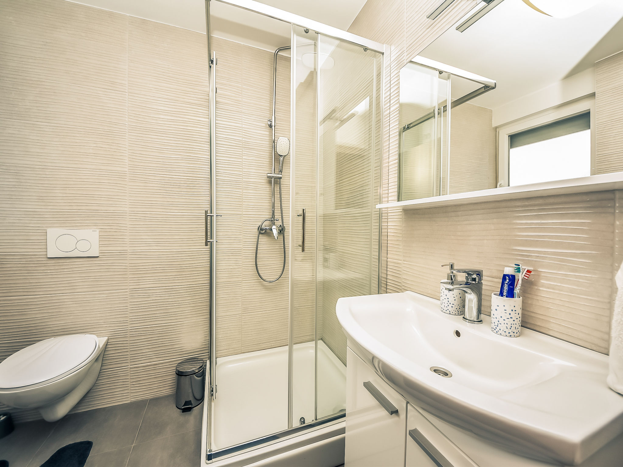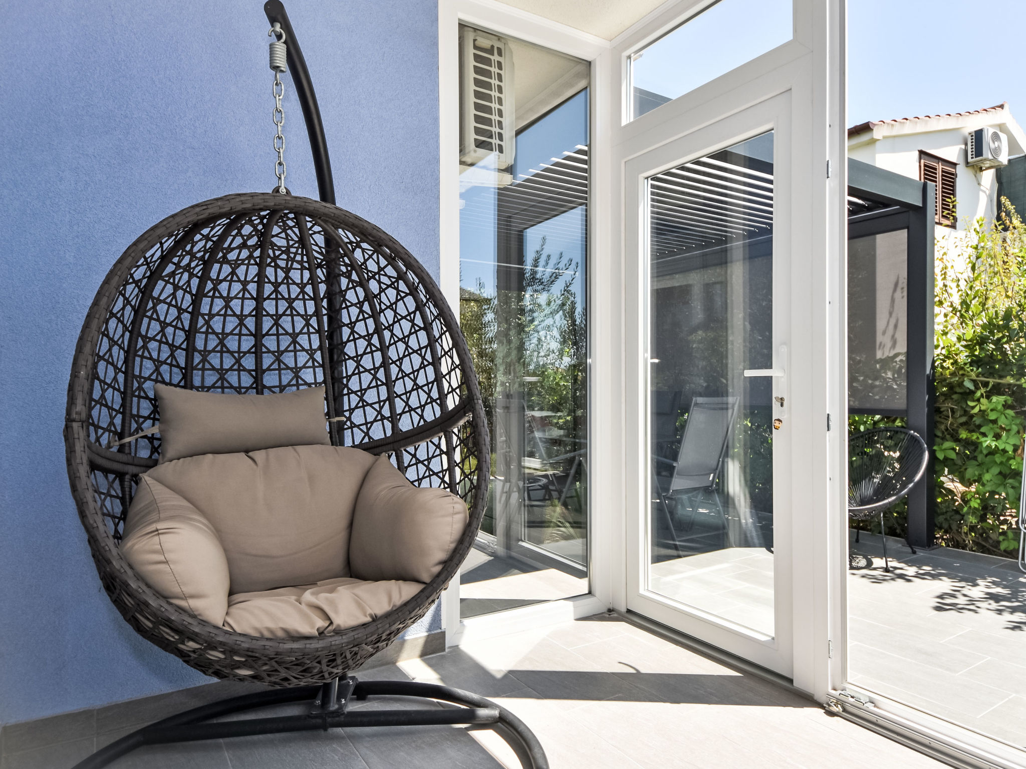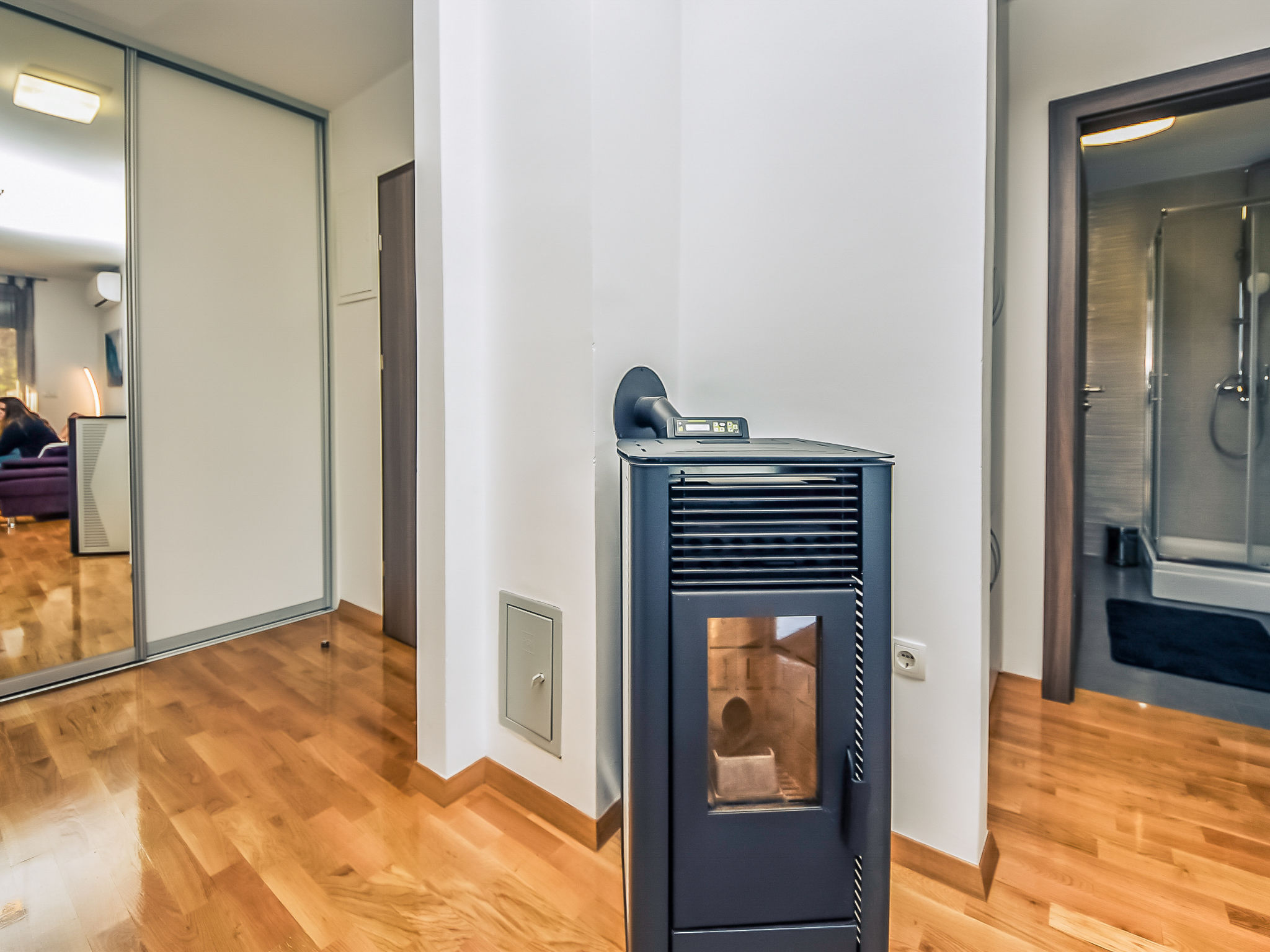 Kleines Appartementhaus, Baujahr 2021. Im Ortsteil Belafuža, 3.5 km vom Zentrum, sonnige, erhöhte Lage, 3 km vom Meer, 3 km vom Strand. Im Hause: Internetzugang. Parkplatz beim Haus. Einkaufsgeschäft, Restaurant 500 m, Kieselstrand 3 km. Tennis 3.5 km. Bitte beachten: Flugplatz 20 km vom Haus.