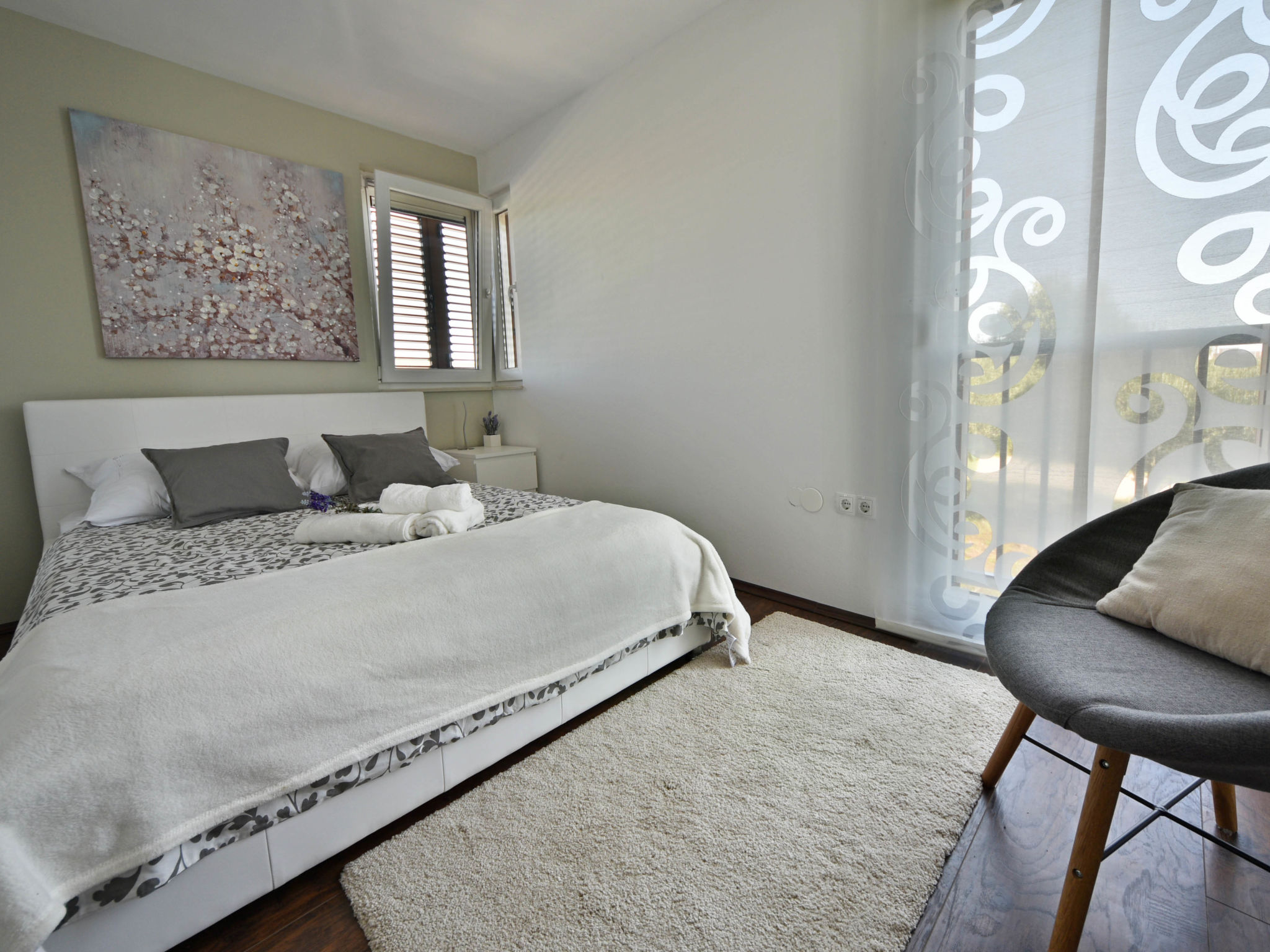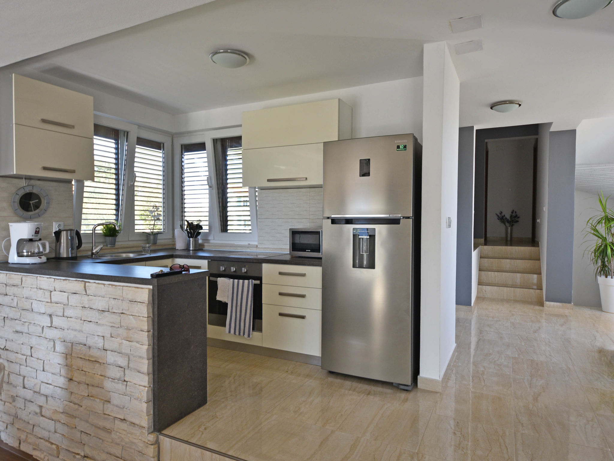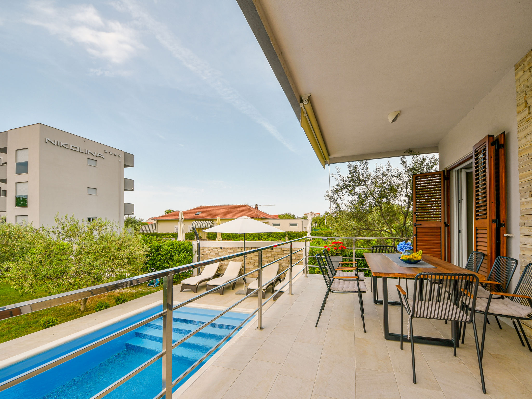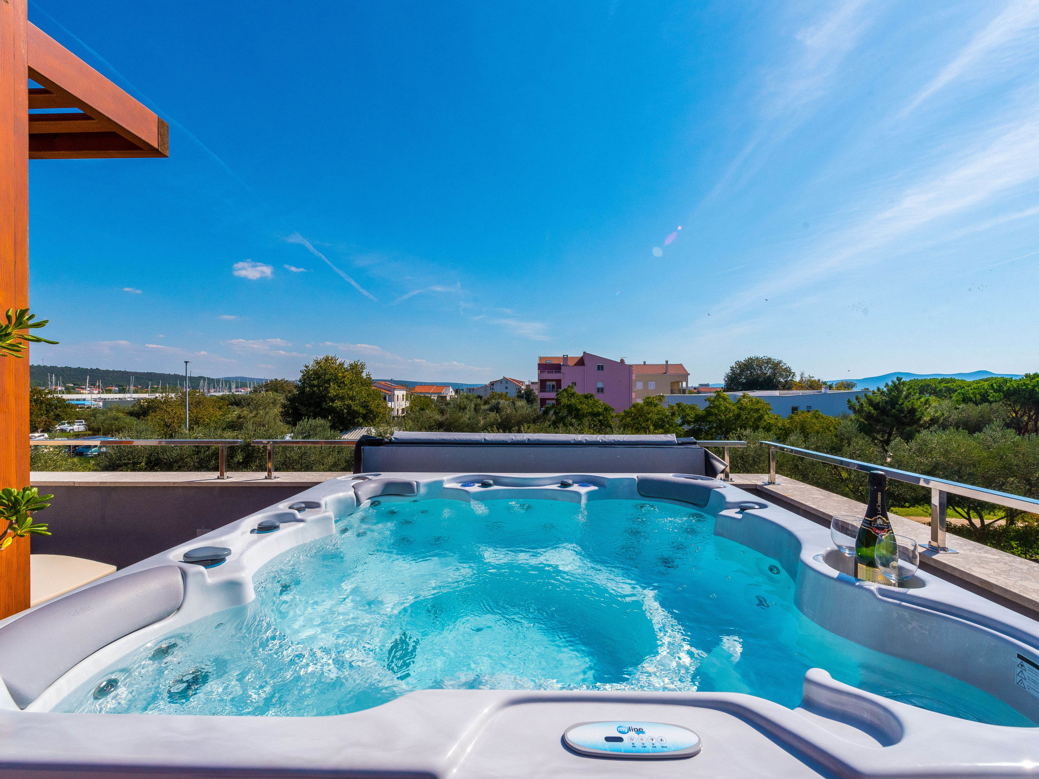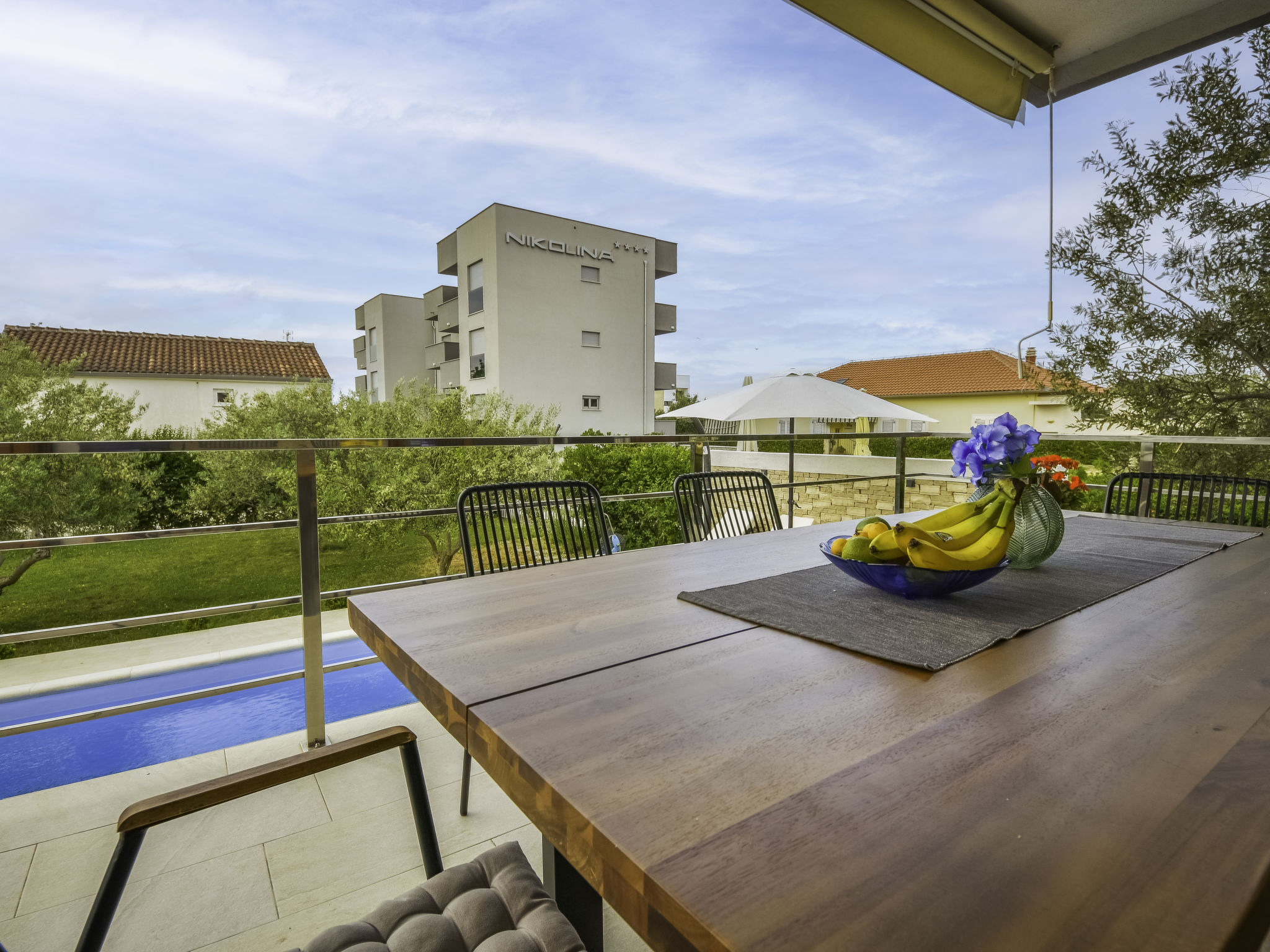 Bibinje 5 km von Zadar: Einfamilienhaus "Arbo", auf 3 Stockwerken. 2 km vom Zentrum von Bibinje, ruhige, sonnige Lage, 200 m vom Meer, 200 m vom Strand. Zur Alleinbenutzung: Grundstück 616 m2 (eingezäunt), Schwimmbad eckig (7 x 3 m, 23 m2, 140 cm tief, 01.05.-01.10.) mit Innentreppe. Sprudelbad, Gartenmöbel, Grill. Im Hause: Internetzugang, Dachterrasse, Waschmaschine. Parkplatz (für 3 Autos) beim Haus auf dem Grundstück. Einkaufsgeschäft, Restaurant 300 m, Fähre 5 km, Kieselstrand 200 m, Steinstrand 400 m. Jugendgruppen nur auf Anfrage. Bitte beachten: Flugplatz 7 km vom Haus. Schwimmbad mit Gegenstromanlage. Sprudelbad für 6 Personen, Gartenmöbel, Elektrogrill und Sprudelbad befinden sich auf der Dachterrasse (55 m2).