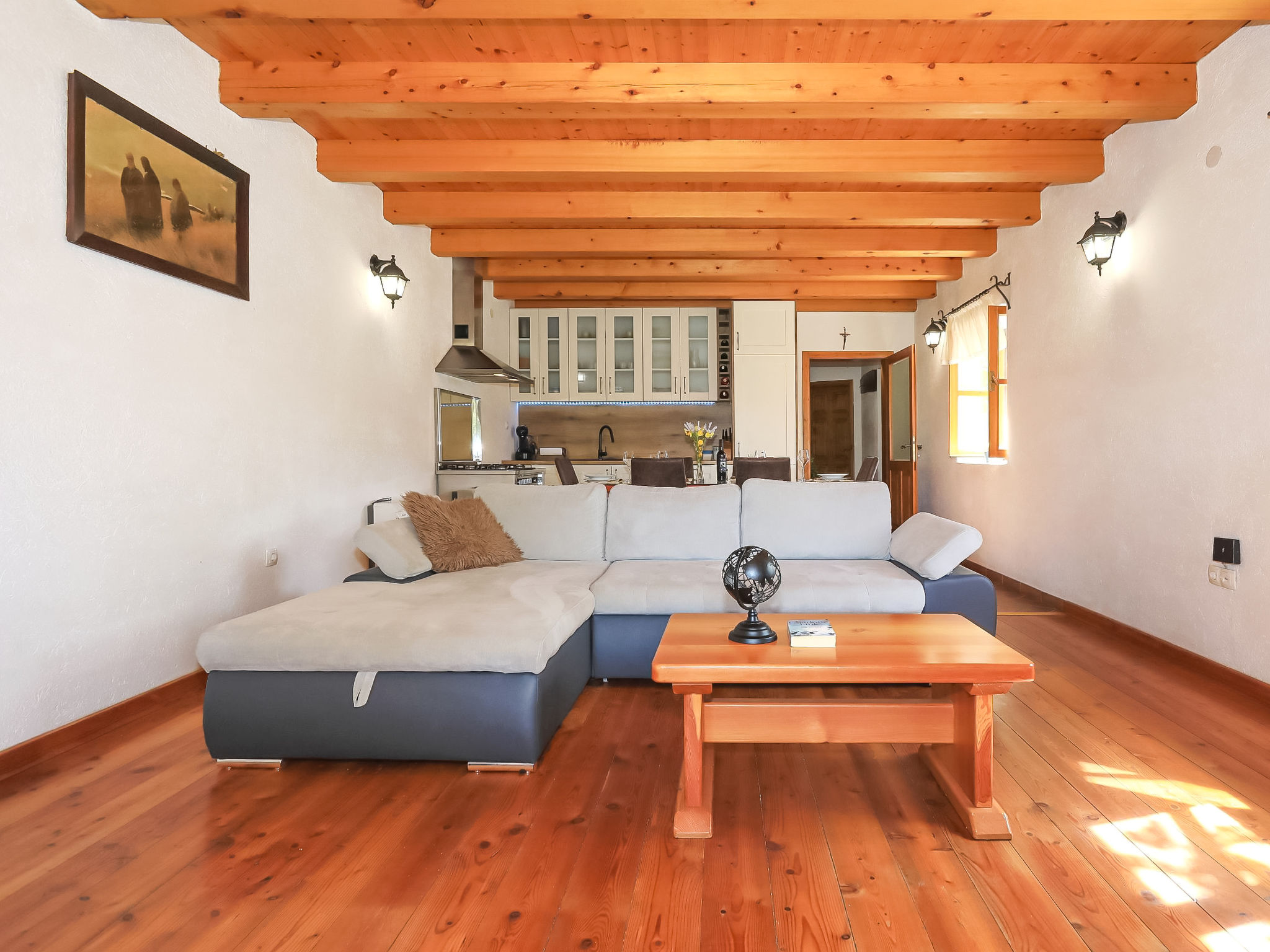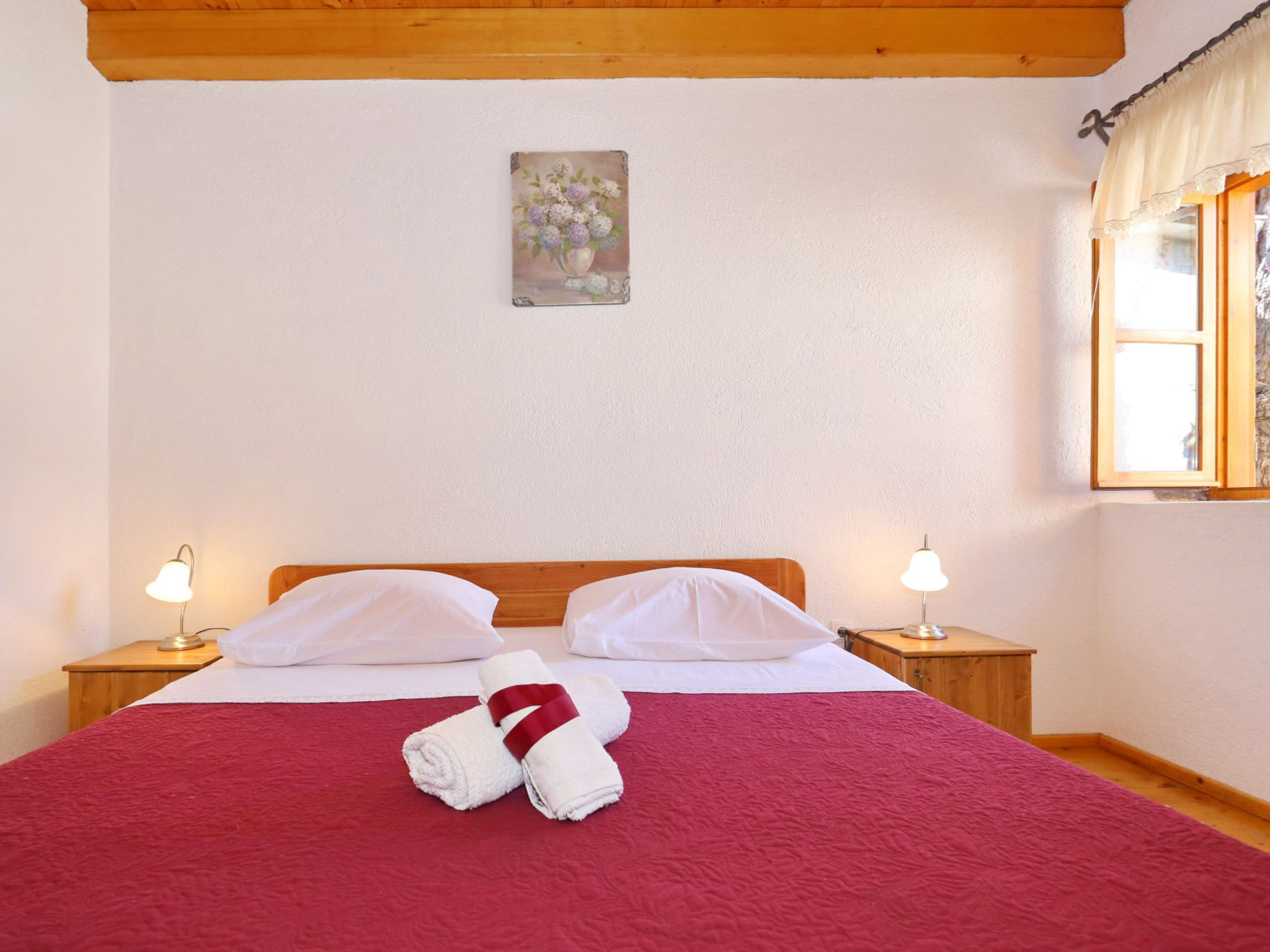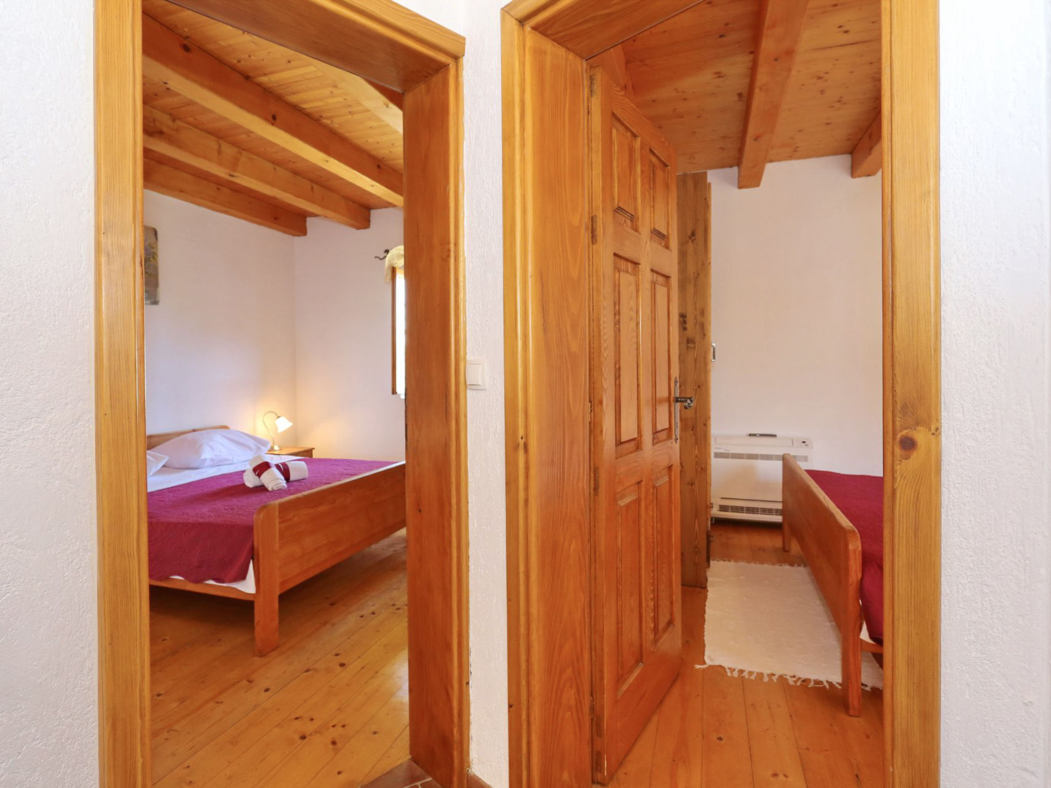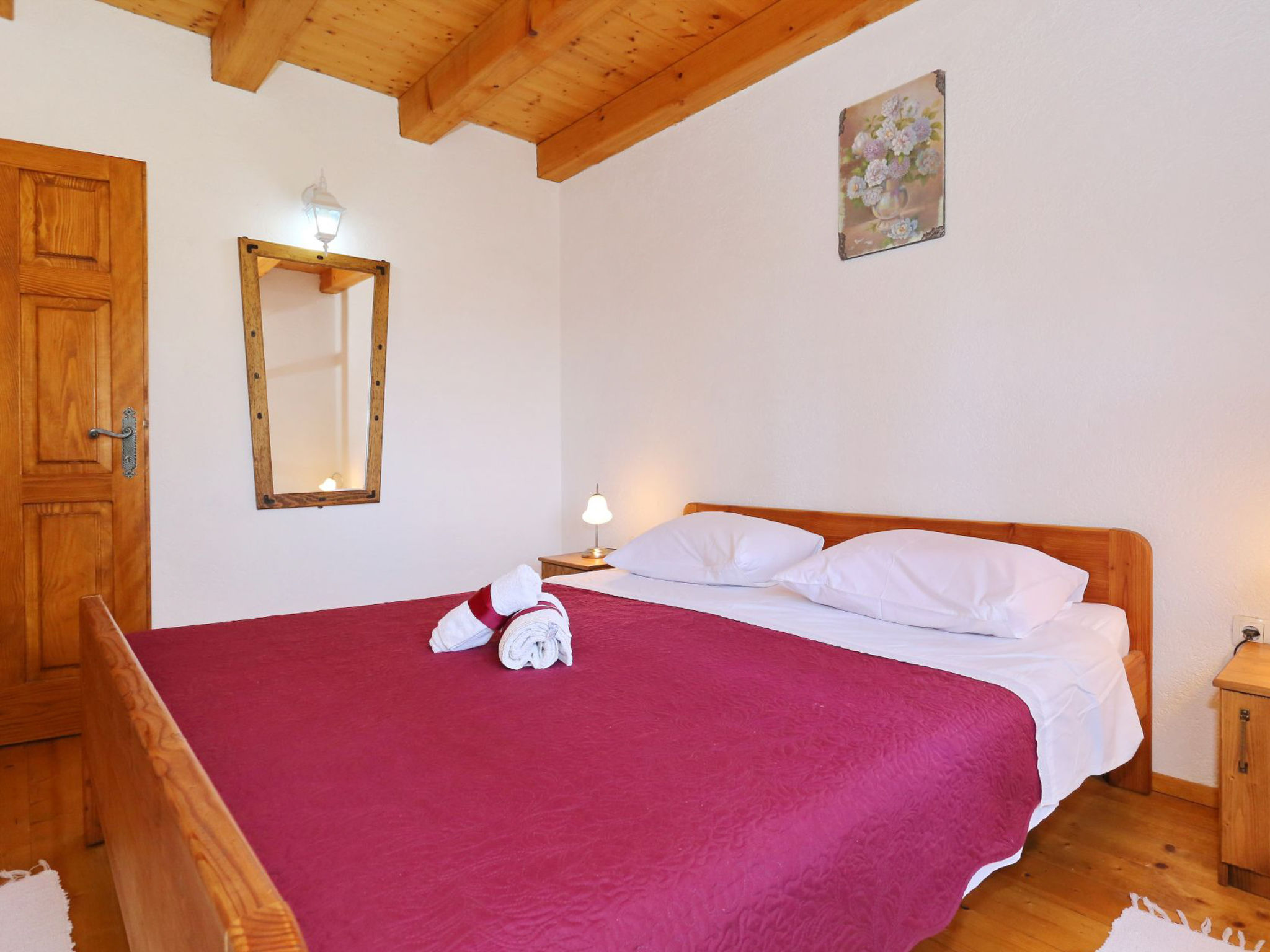 3-Zimmer-Haus 100 m2. Schön eingerichtet: Wohn-/Esszimmer 25 m2 mit 1 Doppeldiwanbett, offenem Kamin, Sat-TV und Klimaanlage. Ausgang zur Terrasse. 2 Zimmer, jedes Zimmer mit 1 Doppelbett (180 cm, Länge 200 cm), Klimaanlage. Offene Küche (4 Kochplatten, Backofen, Tiefkühler). Dusche/WC. Holzheizung (extra), Warmluftheizung (extra). Terrasse 20 m2, überdacht. Terrassenmöbel. Zur Verfügung: Internet (Wireless LAN, gratis).