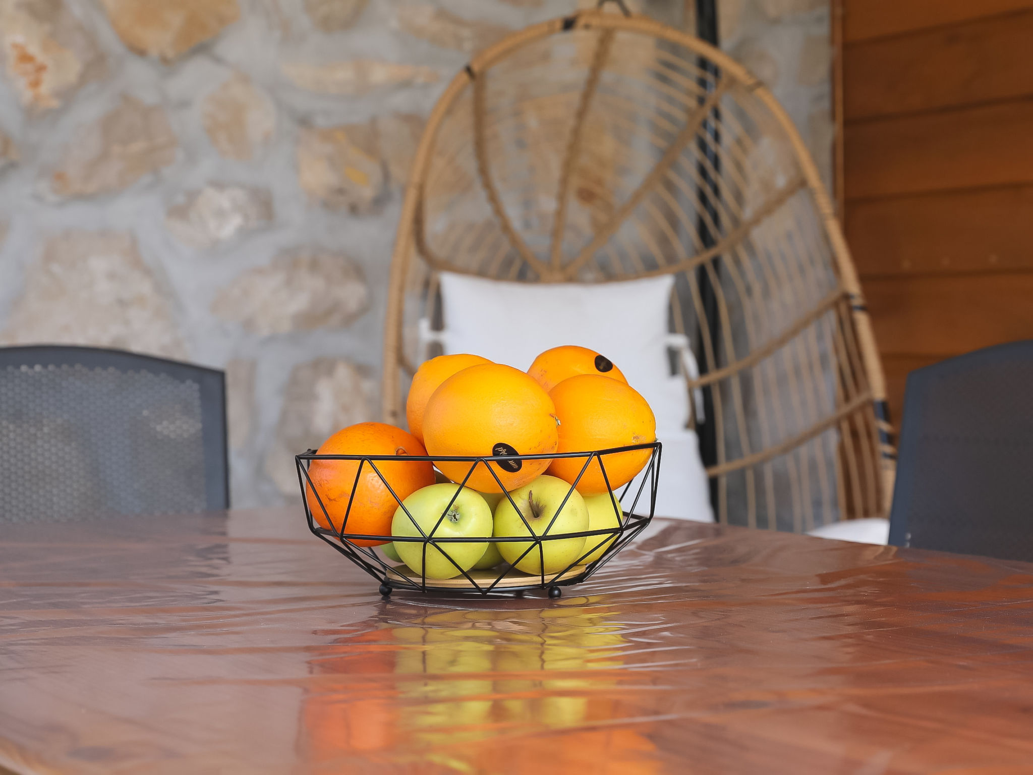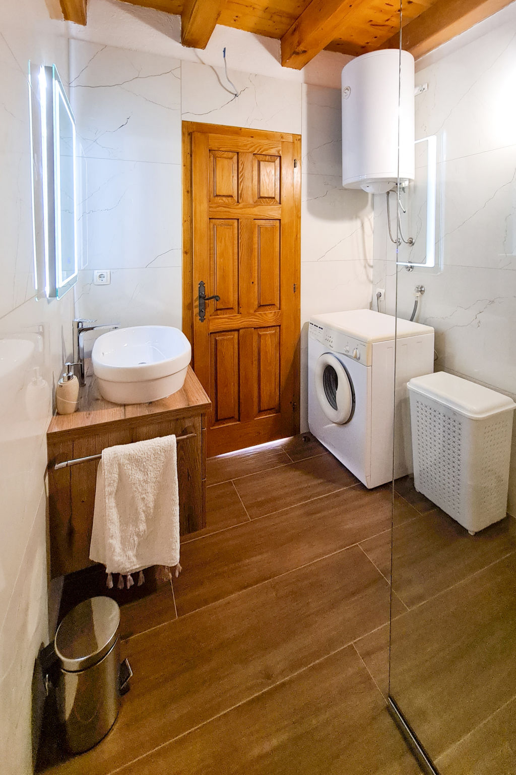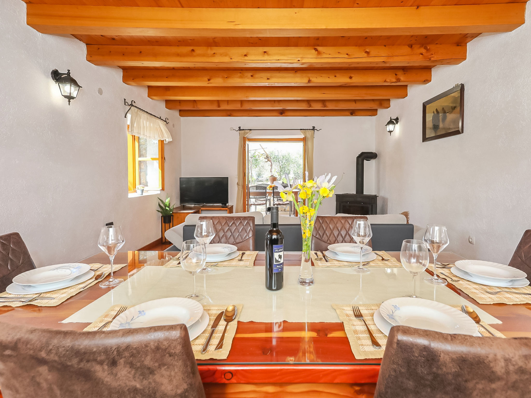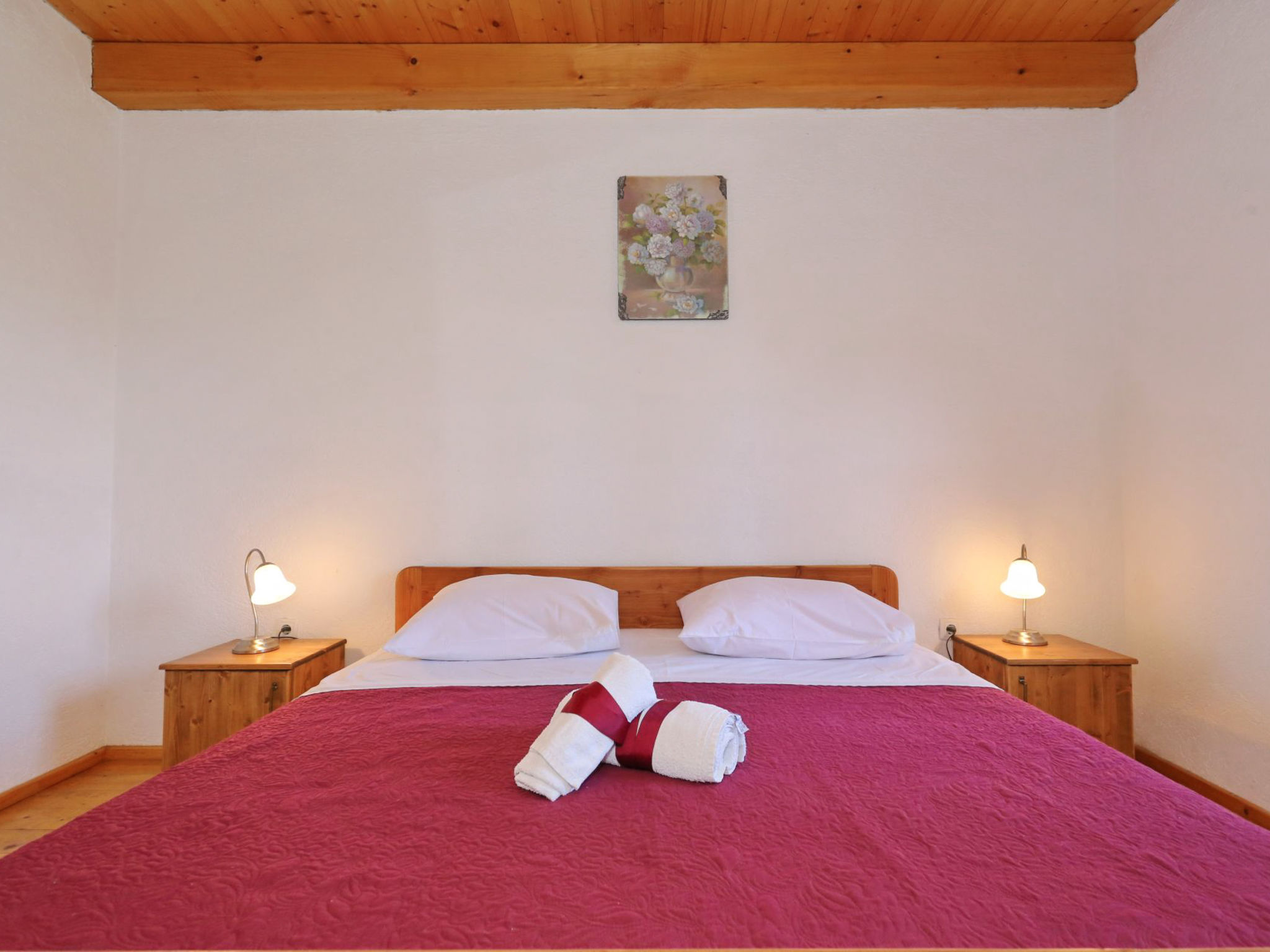 3-Zimmer-Haus 100 m2. Schön eingerichtet: Wohn-/Esszimmer 25 m2 mit 1 Doppeldiwanbett, offenem Kamin, Sat-TV und Klimaanlage. Ausgang zur Terrasse. 2 Zimmer, jedes Zimmer mit 1 Doppelbett (180 cm, Länge 200 cm), Klimaanlage. Offene Küche (4 Kochplatten, Backofen, Tiefkühler). Dusche/WC. Holzheizung (extra), Warmluftheizung (extra). Terrasse 20 m2, überdacht. Terrassenmöbel. Zur Verfügung: Internet (Wireless LAN, gratis).
