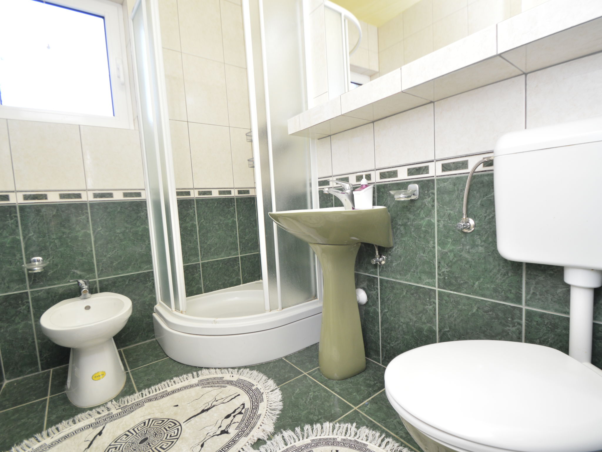 Tribunj 3 km von Vodice: Schönes Mehrfamilienhaus "Friedrich". Im Weiler Sovlje, 1.5 km vom Zentrum von Tribunj, ruhige, sonnige Lage, 250 m vom Meer, 300 m vom Strand. Zur Mitbenutzung: gepflegter Garten (eingezäunt), Schwimmbad (24 m2, 150 cm tief, saisonale Verfügbarkeit: 01.Mai.-31.Okt.) mit Innentreppe. Aussendusche, Laube, Gartenmöbel, Kinderspielplatz. Im Hause: Internetzugang, Waschmaschine (zur Mitbenutzung, extra). Parkplatz beim Haus. Einkaufsgeschäft 1.3 km, Restaurant 350 m, Kieselstrand 400 m, Felsstrand 300 m, betonierter Strand 400 m. Der Besitzer akzeptiert keine Jugendgruppen. Zur Mitbenutzung: Liegestühle und Sonnenschirme. Parkplatz für Anhänger vorhanden.