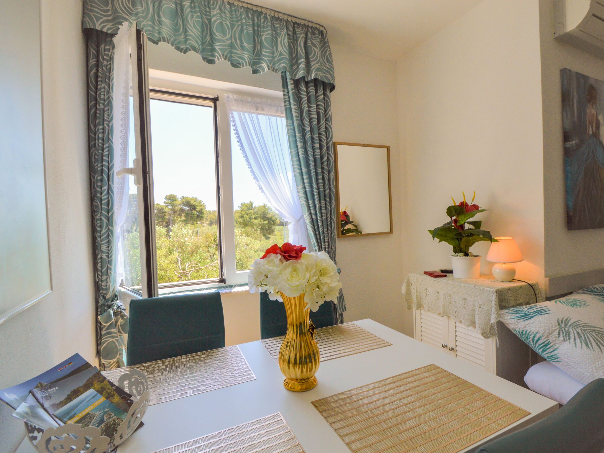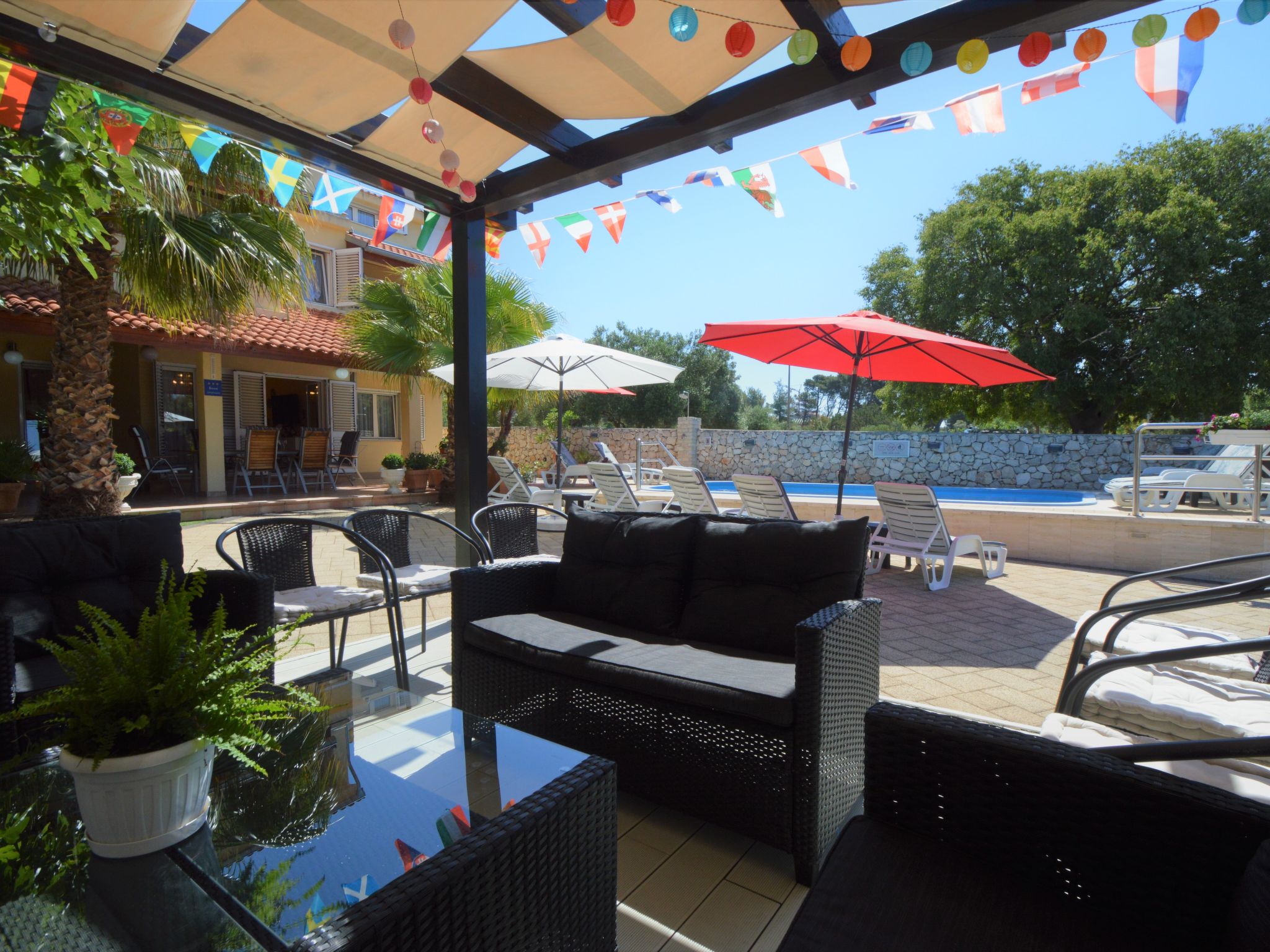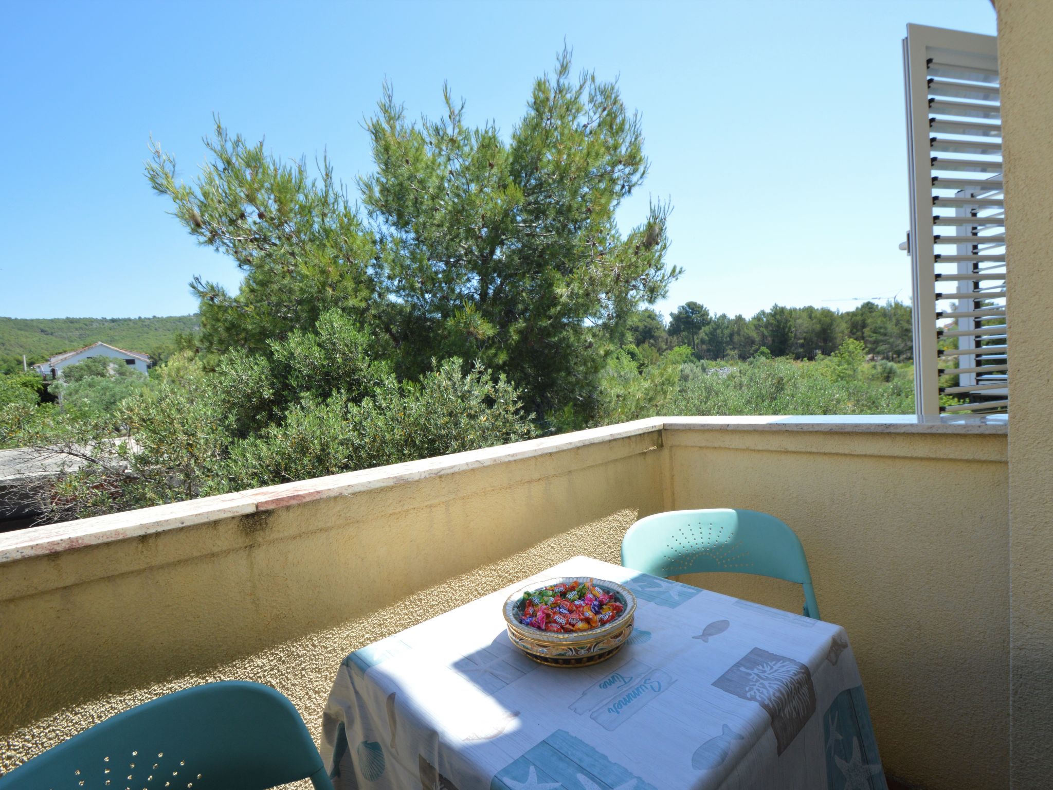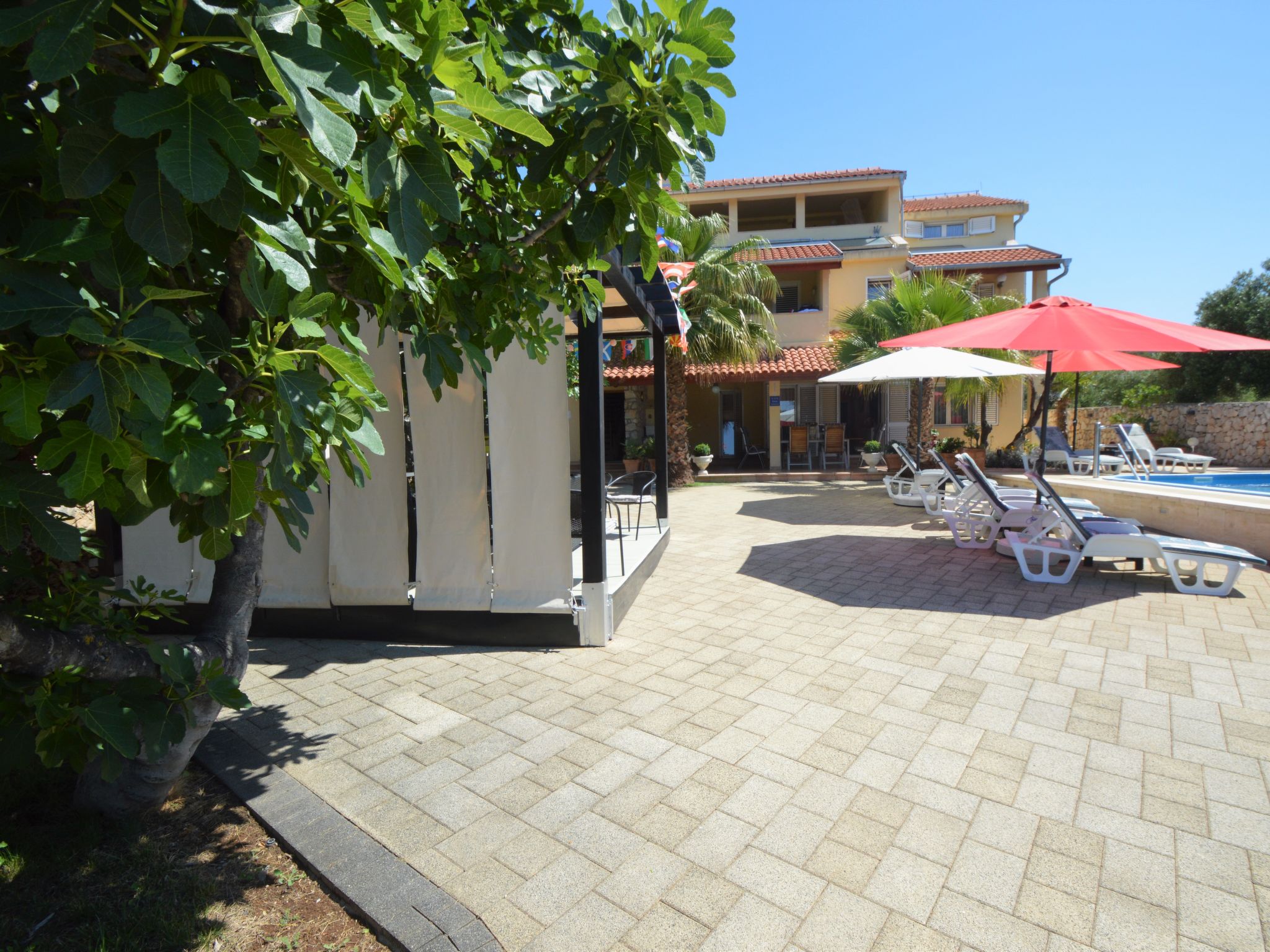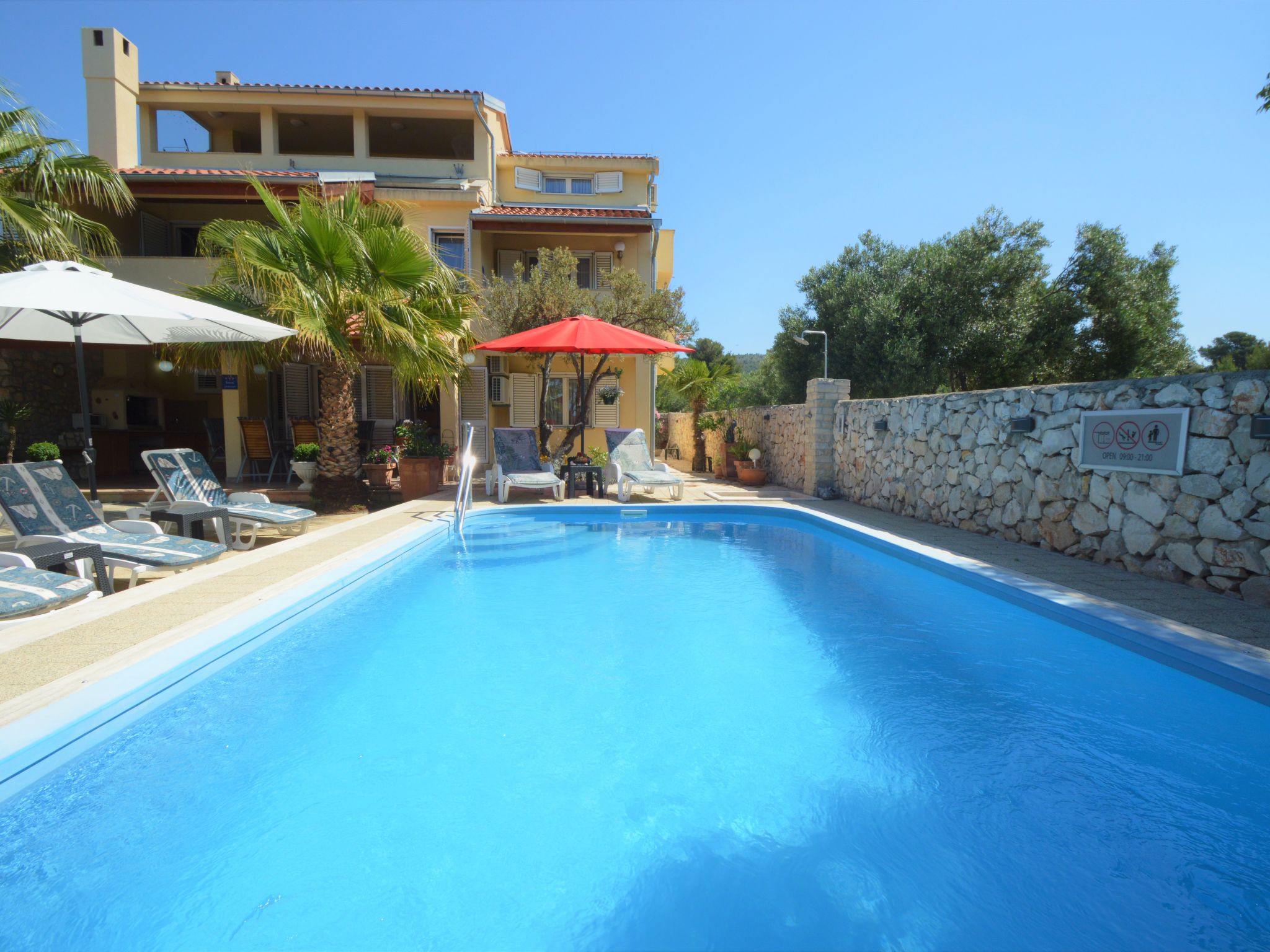 Tribunj 3 km von Vodice: Schönes Mehrfamilienhaus "Friedrich". Im Weiler Sovlje, 1.5 km vom Zentrum von Tribunj, ruhige, sonnige Lage, 250 m vom Meer, 300 m vom Strand. Zur Mitbenutzung: gepflegter Garten (eingezäunt), Schwimmbad (24 m2, 150 cm tief, saisonale Verfügbarkeit: 01.Mai.-31.Okt.) mit Innentreppe. Aussendusche, Laube, Gartenmöbel, Kinderspielplatz. Im Hause: Internetzugang, Waschmaschine (zur Mitbenutzung, extra). Parkplatz beim Haus. Einkaufsgeschäft 1.3 km, Restaurant 350 m, Kieselstrand 400 m, Felsstrand 300 m, betonierter Strand 400 m. Der Besitzer akzeptiert keine Jugendgruppen. Zur Mitbenutzung: Liegestühle und Sonnenschirme. Parkplatz für Anhänger vorhanden.
