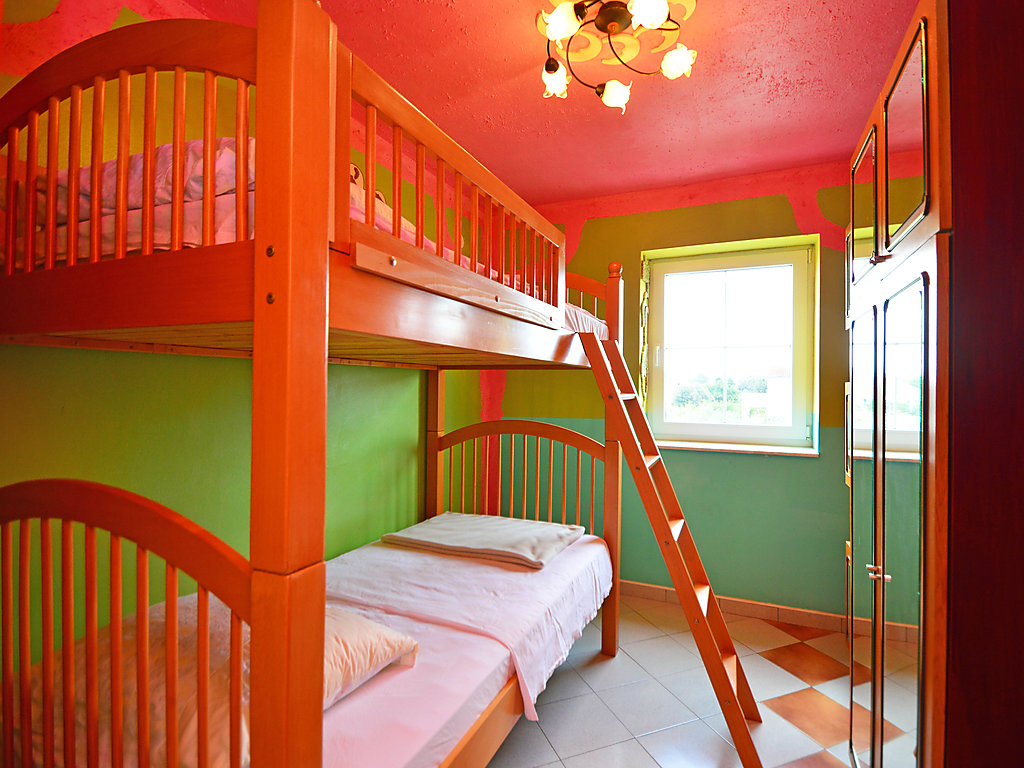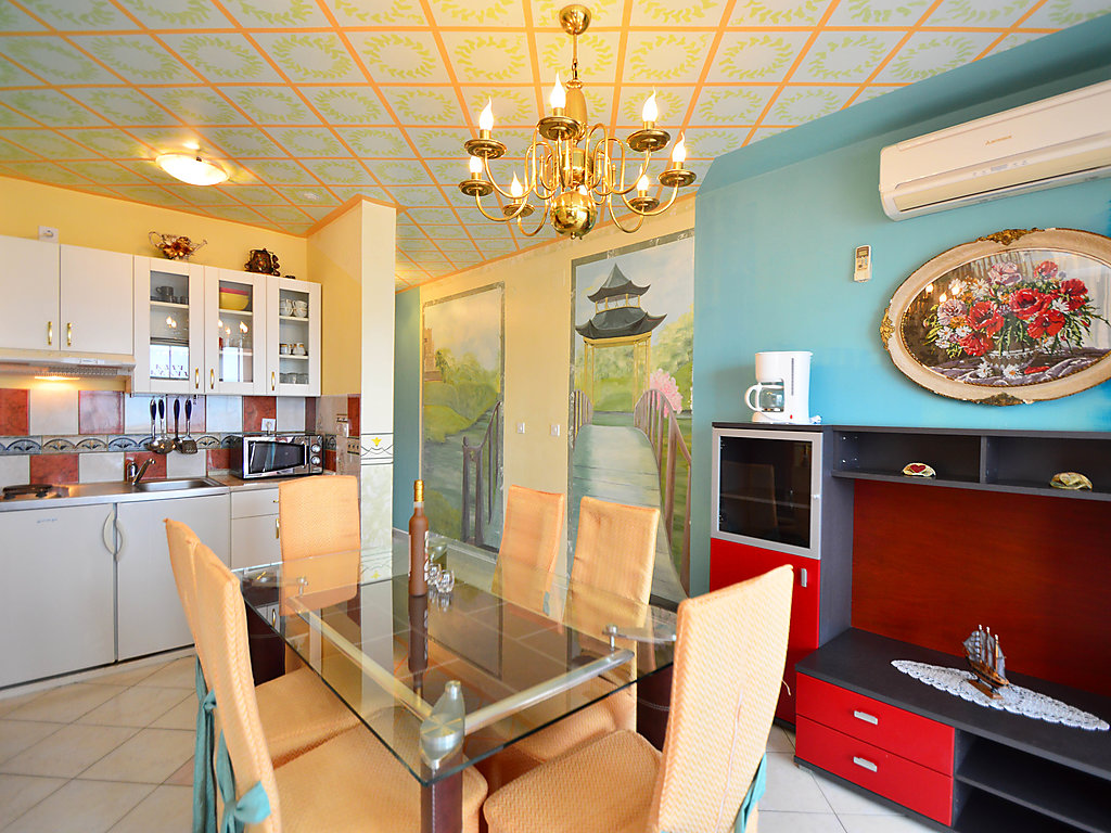 4-Zimmer-Wohnung 75 m2 im 1. Stock, Ostlage. Wohn-/Esszimmer mit Sat-TV (Flachbildschirm), Klimaanlage. Wohnzimmer mit 1 Diwanbett (140 cm, Länge 200 cm). Ausgang zum Balkon. 1 Zimmer mit 1 franz. Bett (160 cm, Länge 190 cm). 1 Zimmer mit 2 x 1 Etagenbetten (90 cm, Länge 190 cm). Offene Küche (2 Kochplatten, Mikrowelle, elektrische Kaffeemaschine). Dusche/Bidet/WC. Klimaanlage (extra). Balkon 5 m2. Balkonmöbel. Herrliche Sicht auf den See. Zur Verfügung: Internet (Wireless LAN, gratis). 1 Haustier/Hund erlaubt.