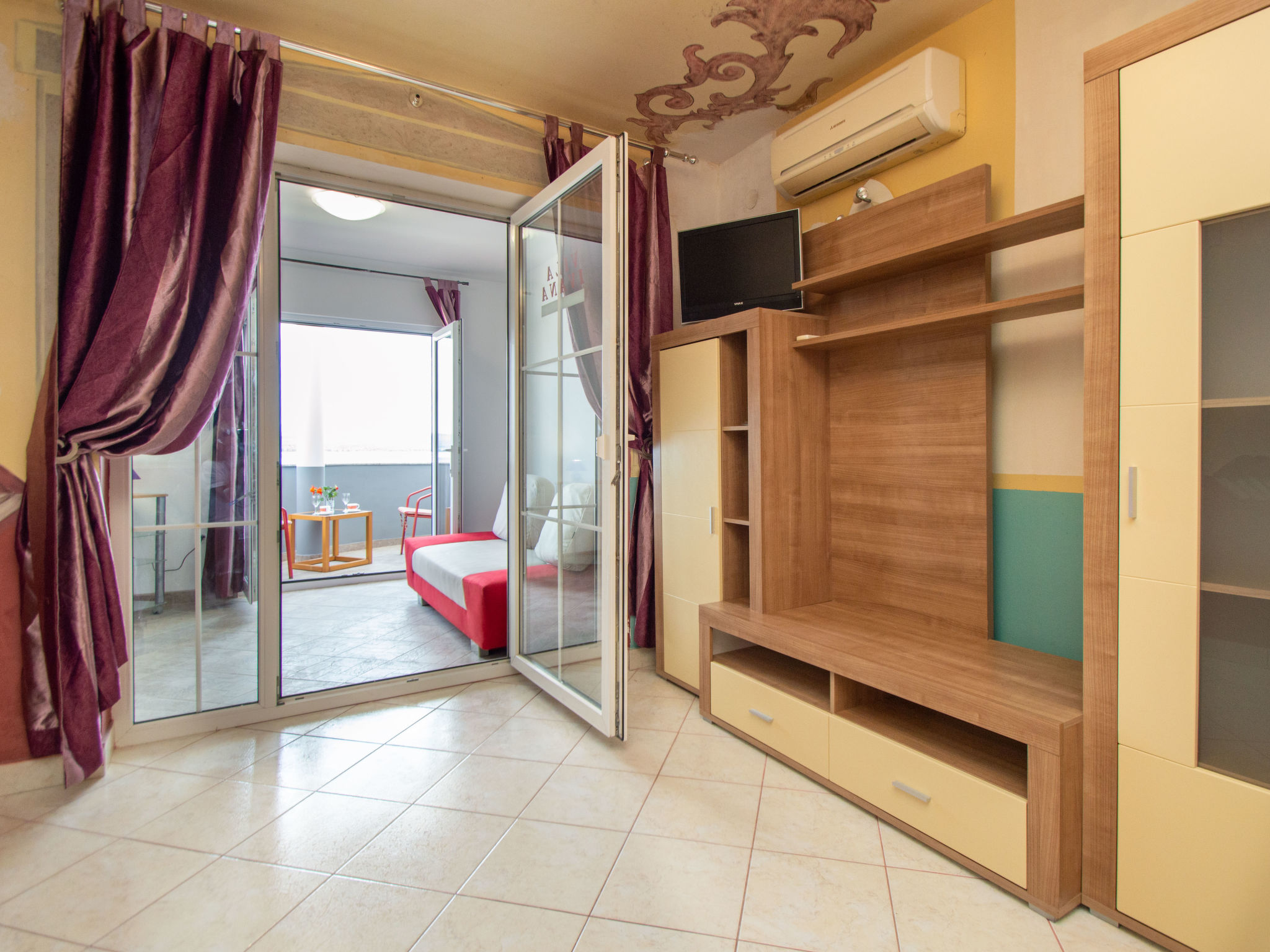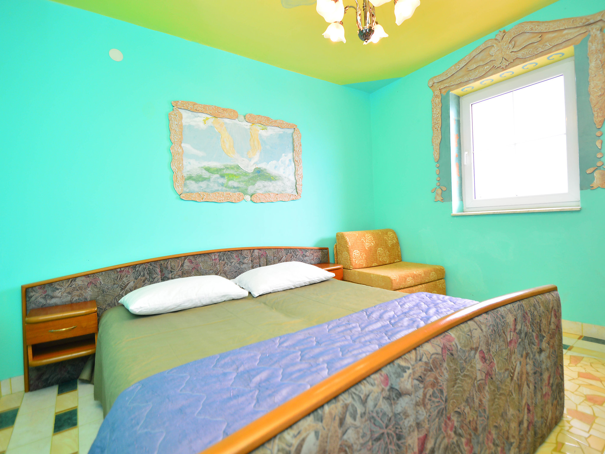 3-Zimmer-Wohnung 60 m2 im 1. Stock, Ostlage. Wohnzimmer mit Sat-TV (Flachbildschirm), Klimaanlage. Wohnzimmer mit 1 Doppeldiwanbett (140 cm, Länge 200 cm). Ausgang zum Balkon. 1 Zimmer mit 1 Diwanbett (70 cm, Länge 190 cm), 1 franz. Bett (160 cm, Länge 200 cm). Küche (2 Kochplatten, Mikrowelle, elektrische Kaffeemaschine) mit Esstisch. Bad/Bidet/WC, Whirlbadewanne. Klimaanlage (extra). Balkon 5 m2. Balkonmöbel. Herrliche Sicht auf den See. Zur Verfügung: Waschmaschine. Internet (Wireless LAN, gratis). 1 Haustier/Hund erlaubt.