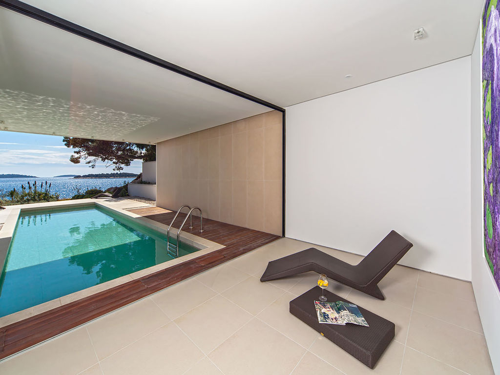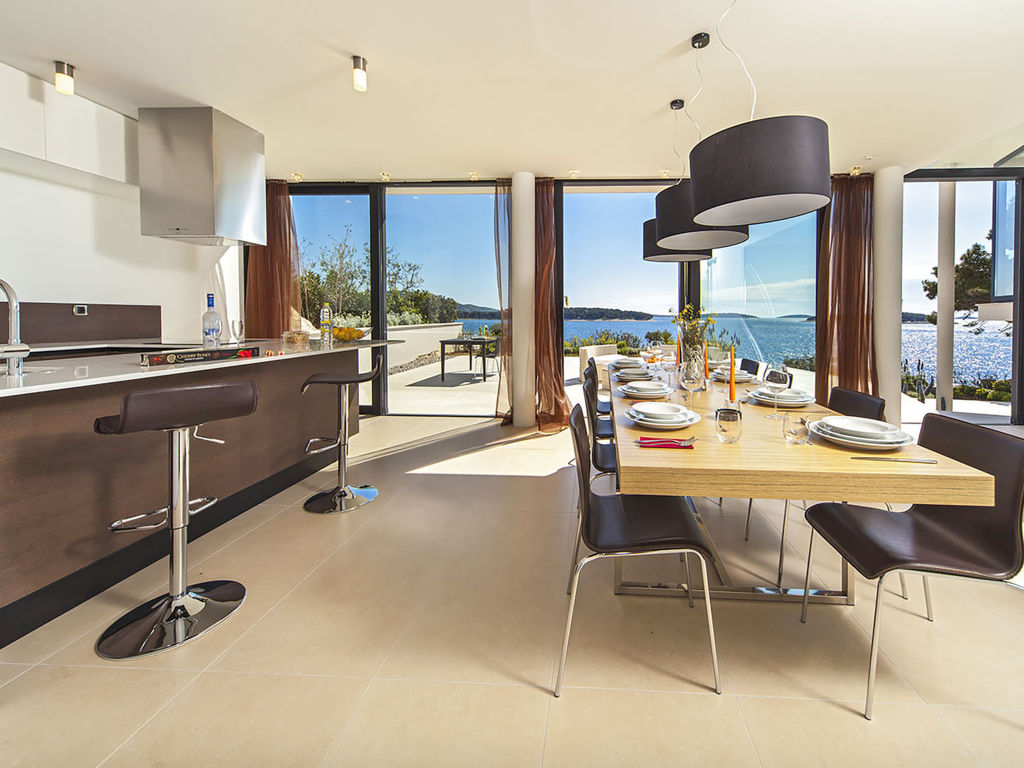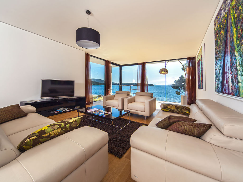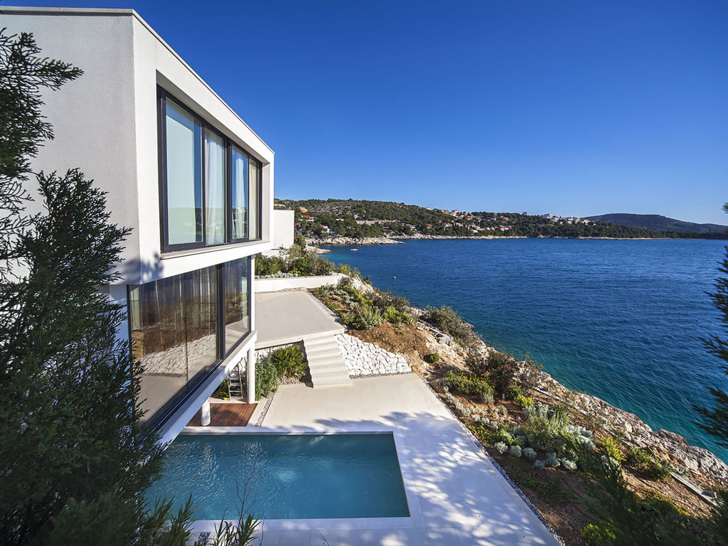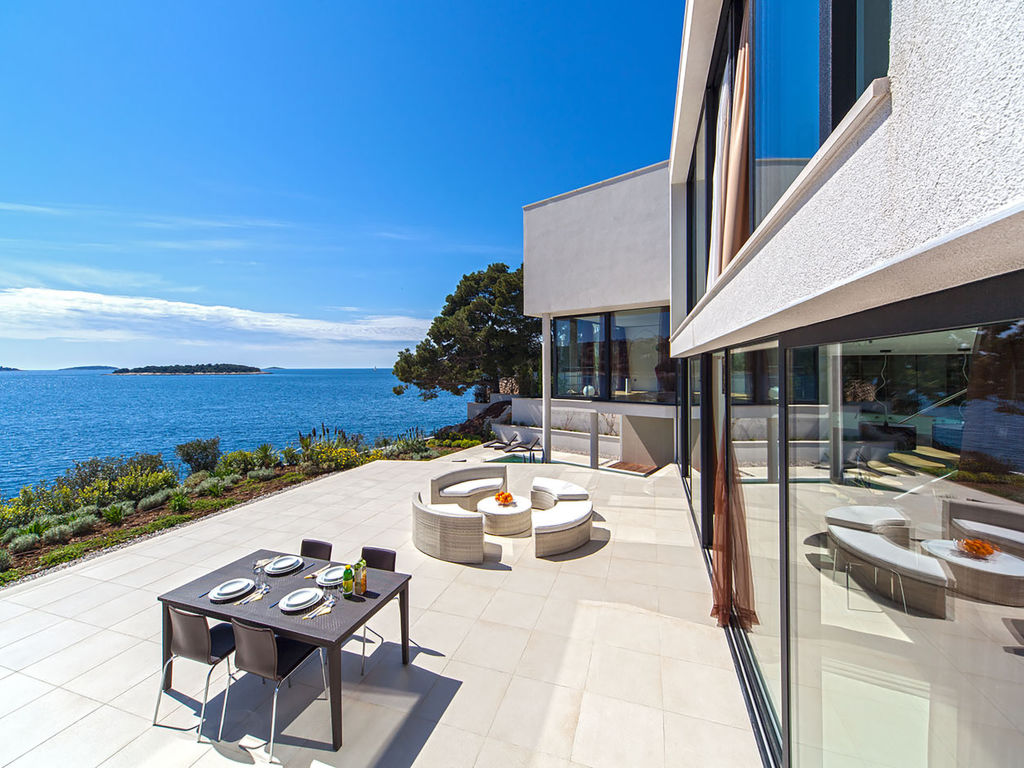 Grosse, moderne, komfortable Villa "Golden Ray 3", auf 2 Stockwerken, Baujahr 2012. 3 km vom Zentrum von Primošten, 25 km vom Zentrum von Šibenik, ruhige, sonnige Lage, direkt am Meer. Zur Mitbenutzung: Schwimmbad eckig (16 x 4 m, 72 m2, 134 cm tief, saisonale Verfügbarkeit: 01.Mai.-31.Okt.) mit Innentreppe. Zur Alleinbenutzung: Schwimmbad eckig, beheizt (24 m2, 130 cm tief, 01.01.-31.12.). Terrasse (40 m2). Im Hause: Internetzugang, Sauna, Klimaanlage. Frühstück möglich auf Anfrage (extra). Parkplatz (für 2 Autos, überdacht). Einkaufsgeschäft 3 km, Restaurant 3 km, Kieselstrand 3 km, Felsstrand 10 m. Schwimmbad, eckig mit Innentreppe (16 x 4 m, 72 m2, 134 cm tief, geöffnet ab 01.05. bis 31.10.), zur Mitbenutzung mit den Villen Ref. Nr.HR4600.204, HR4600.205, HR4600.206, HR4600.207 und den Ferienwohnungen Ref. Nr. HR4600.208, HR4600.209, HR4600.210. Zur Alleinbenutzung: Schwimmbad - Poolheizung bis 30.4. und ab 1.11.