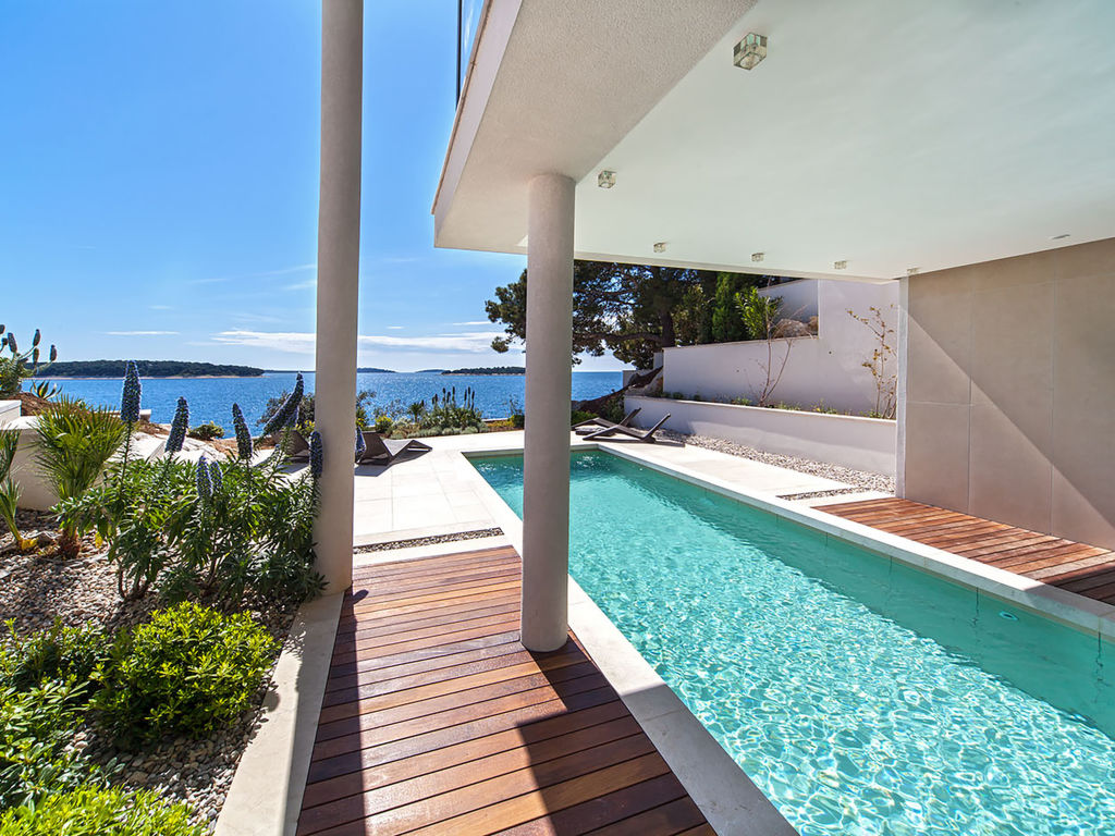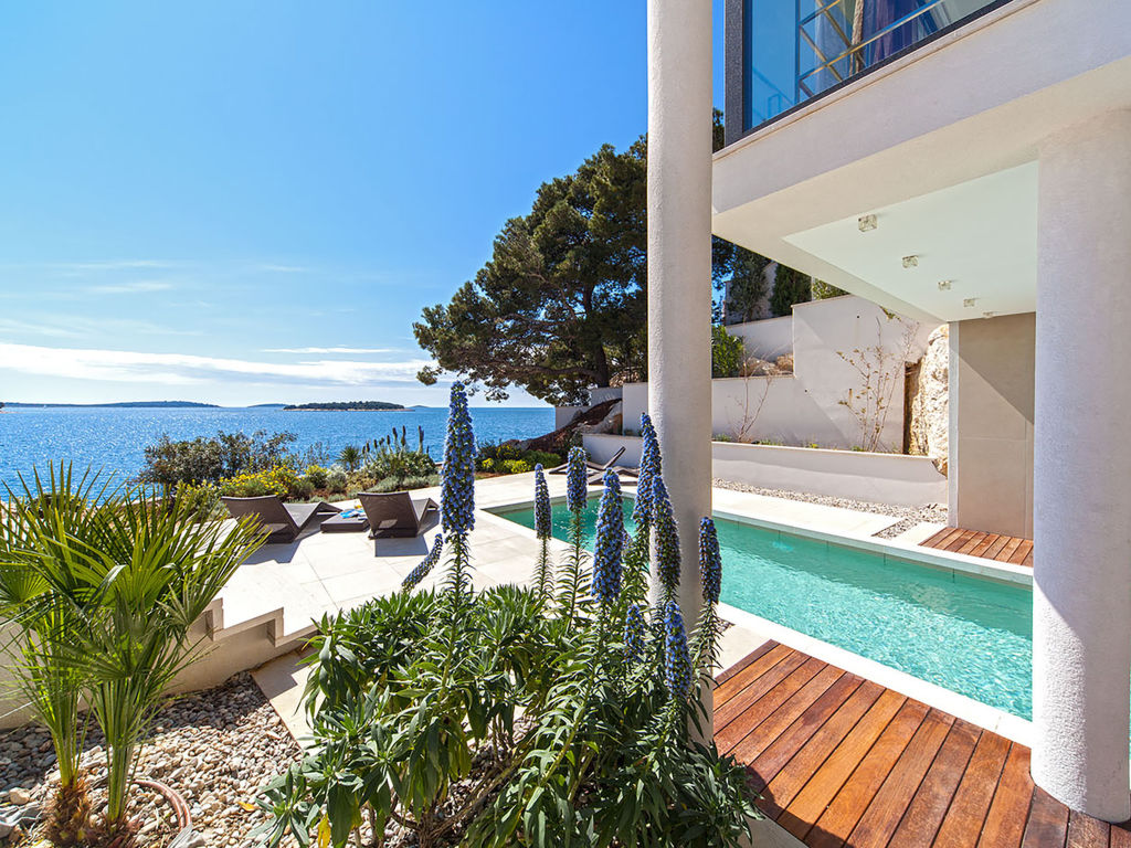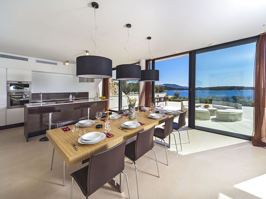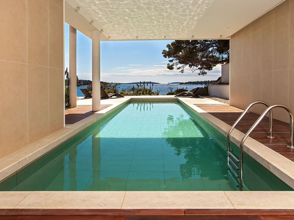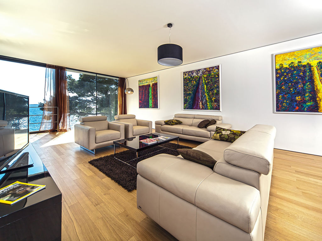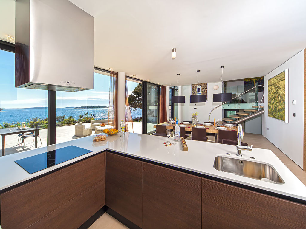 Grosse, moderne, komfortable Villa "Golden Ray 3", auf 2 Stockwerken, Baujahr 2012. 3 km vom Zentrum von Primošten, 25 km vom Zentrum von Šibenik, ruhige, sonnige Lage, direkt am Meer. Zur Mitbenutzung: Schwimmbad eckig (16 x 4 m, 72 m2, 134 cm tief, saisonale Verfügbarkeit: 01.Mai.-31.Okt.) mit Innentreppe. Zur Alleinbenutzung: Schwimmbad eckig, beheizt (24 m2, 130 cm tief, 01.01.-31.12.). Terrasse (40 m2). Im Hause: Internetzugang, Sauna, Klimaanlage. Frühstück möglich auf Anfrage (extra). Parkplatz (für 2 Autos, überdacht). Einkaufsgeschäft 3 km, Restaurant 3 km, Kieselstrand 3 km, Felsstrand 10 m. Schwimmbad, eckig mit Innentreppe (16 x 4 m, 72 m2, 134 cm tief, geöffnet ab 01.05. bis 31.10.), zur Mitbenutzung mit den Villen Ref. Nr.HR4600.204, HR4600.205, HR4600.206, HR4600.207 und den Ferienwohnungen Ref. Nr. HR4600.208, HR4600.209, HR4600.210. Zur Alleinbenutzung: Schwimmbad - Poolheizung bis 30.4. und ab 1.11.