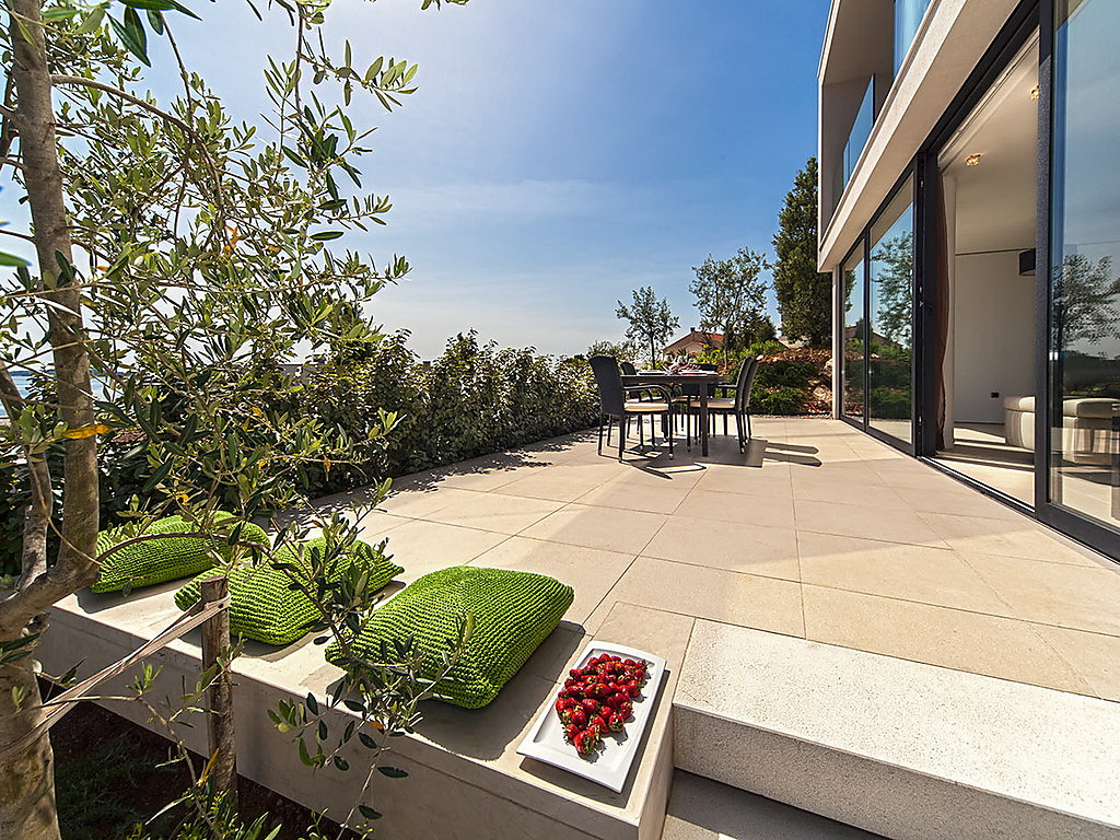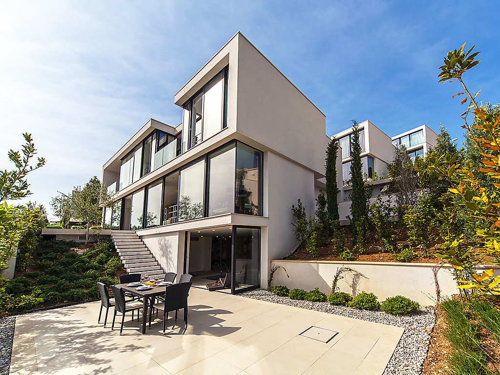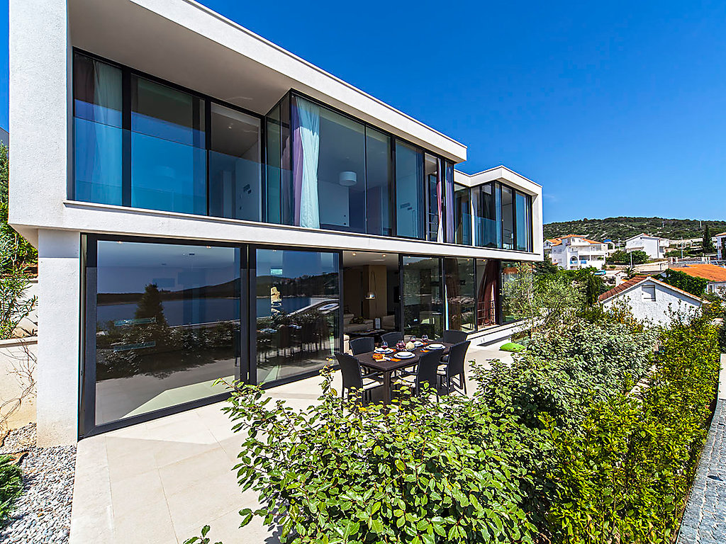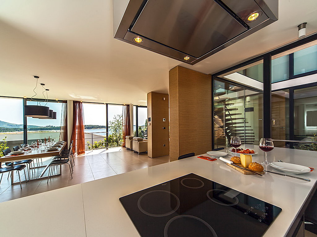 Grosse, moderne, komfortable Villa "Golden Ray 4", auf 3 Stockwerken, Baujahr 2012. 3 km vom Zentrum von Primošten, 25 km vom Zentrum von Šibenik, ruhige, sonnige Lage, 30 m vom Meer. Zur Mitbenutzung: Schwimmbad eckig (16 x 4 m, 72 m2, 134 cm tief, saisonale Verfügbarkeit: 01.Mai.-31.Okt.) mit Innentreppe. Zur Alleinbenutzung: Hallenbad beheizt (16 m2, 20 - 130 cm tief, 01.01.-31.12.). Terrasse (35 m2). Im Hause: Internetzugang, Sauna, Klimaanlage. Frühstück möglich auf Anfrage (extra). Parkplatz (für 2 Autos, überdacht). Einkaufsgeschäft 3 km, Restaurant 3 km, Kieselstrand 3 km, Felsstrand 30 m. Schwimmbad, eckig mit Innentreppe (16 x 4 m, 72 m2, 134 cm tief, geöffnet ab 01.05. bis 31.10.), zur Mitbenutzung mit den Villen Ref. Nr.HR4600.203, HR4600.205, HR4600.206,HR4600.207 und den Ferienwohnungen Ref. Nr. HR4600.208, HR4600.209, HR4600.210. Zur Alleinbenutzung: Schwimmbad - Poolheizung bis 30.4. und ab 1.11.