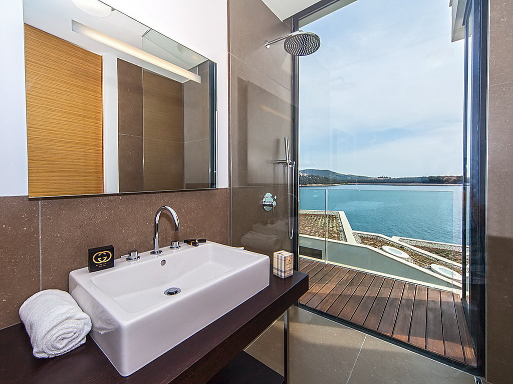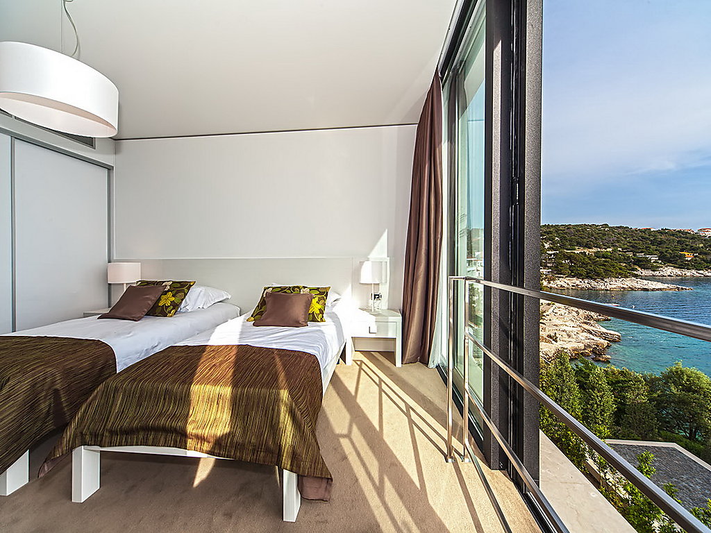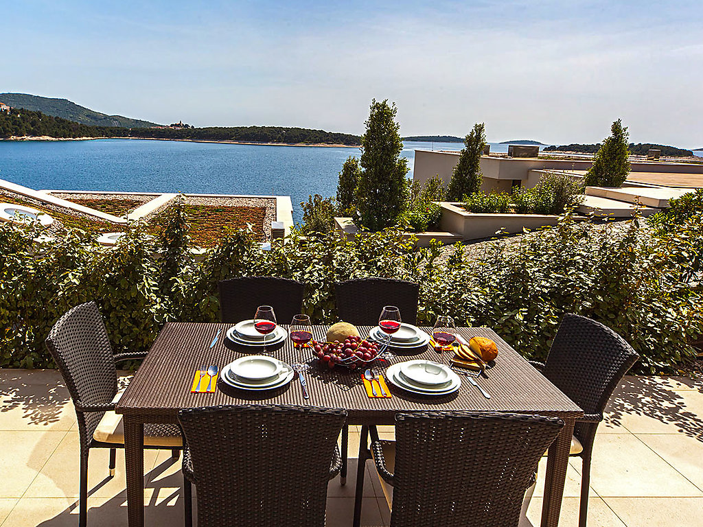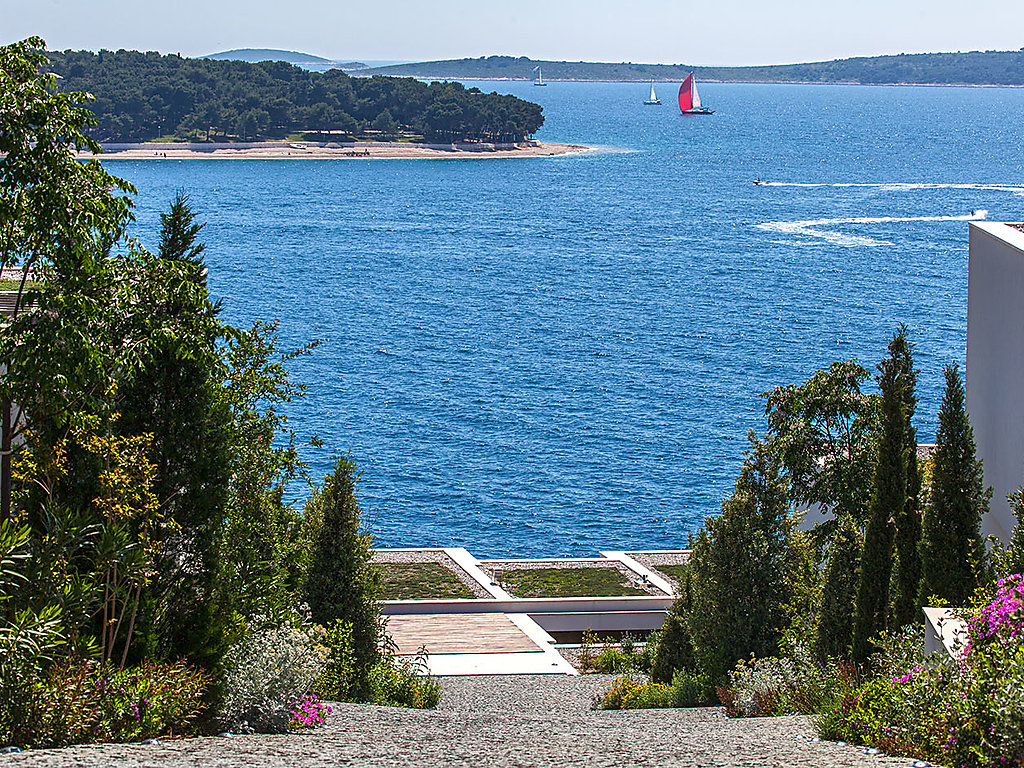 Grosse, moderne, komfortable Villa "Golden Ray 4", auf 3 Stockwerken, Baujahr 2012. 3 km vom Zentrum von Primošten, 25 km vom Zentrum von Šibenik, ruhige, sonnige Lage, 30 m vom Meer. Zur Mitbenutzung: Schwimmbad eckig (16 x 4 m, 72 m2, 134 cm tief, saisonale Verfügbarkeit: 01.Mai.-31.Okt.) mit Innentreppe. Zur Alleinbenutzung: Hallenbad beheizt (16 m2, 20 - 130 cm tief, 01.01.-31.12.). Terrasse (35 m2). Im Hause: Internetzugang, Sauna, Klimaanlage. Frühstück möglich auf Anfrage (extra). Parkplatz (für 2 Autos, überdacht). Einkaufsgeschäft 3 km, Restaurant 3 km, Kieselstrand 3 km, Felsstrand 30 m. Schwimmbad, eckig mit Innentreppe (16 x 4 m, 72 m2, 134 cm tief, geöffnet ab 01.05. bis 31.10.), zur Mitbenutzung mit den Villen Ref. Nr.HR4600.203, HR4600.205, HR4600.206,HR4600.207 und den Ferienwohnungen Ref. Nr. HR4600.208, HR4600.209, HR4600.210. Zur Alleinbenutzung: Schwimmbad - Poolheizung bis 30.4. und ab 1.11.