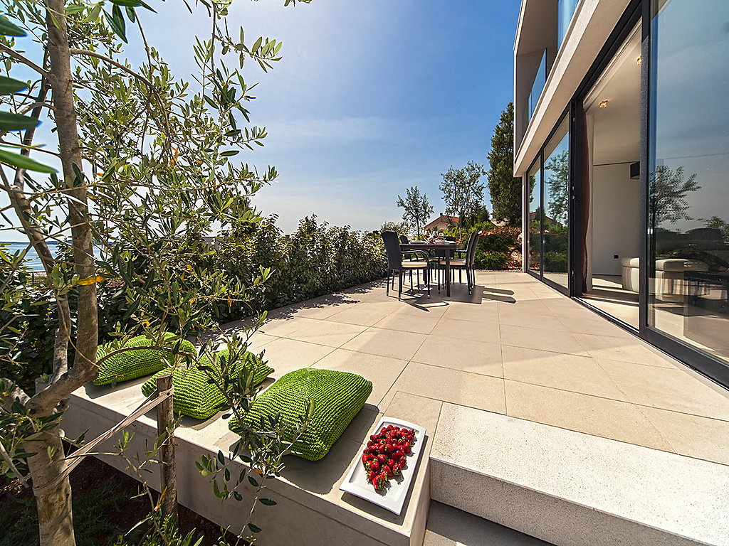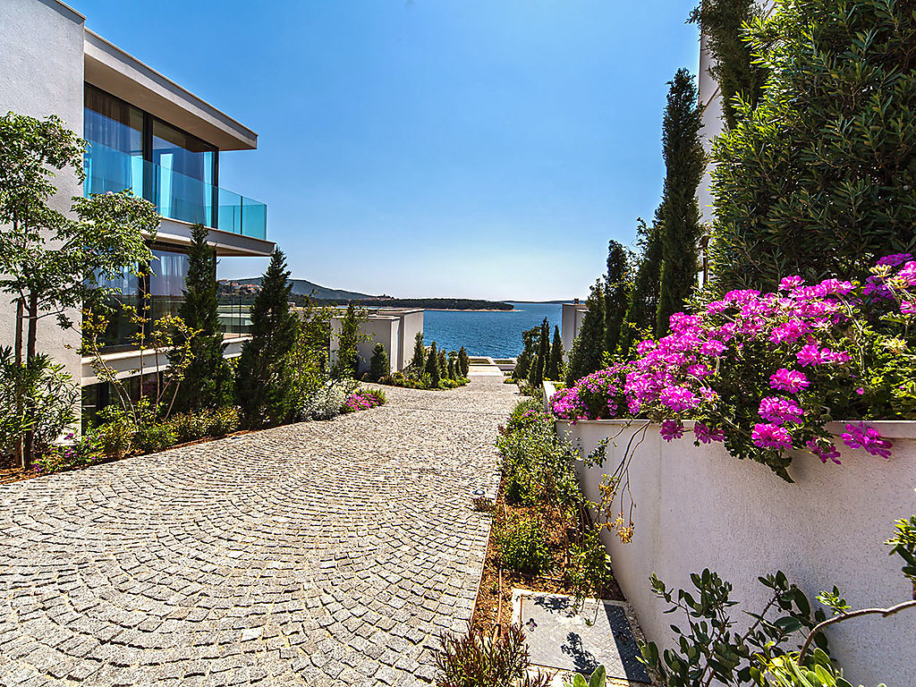 Grosse, moderne, komfortable Villa "Golden Ray 6", auf 3 Stockwerken, Baujahr 2012. 3 km vom Zentrum von Primošten, 25 km vom Zentrum von Šibenik, ruhige, sonnige Lage, 50 m vom Meer. Zur Mitbenutzung: Schwimmbad eckig (16 x 4 m, 72 m2, 134 cm tief, saisonale Verfügbarkeit: 01.Mai.-31.Okt.) mit Innentreppe. Zur Alleinbenutzung: Hallenbad beheizt (16 m2, 20 - 130 cm tief, 01.01.-31.12.). Terrasse (15 m2). Im Hause: Internetzugang, Sauna, Klimaanlage. Frühstück möglich auf Anfrage (extra). Parkplatz (für 2 Autos, überdacht). Einkaufsgeschäft 3 km, Restaurant 3 km, Kieselstrand 3 km, Felsstrand 50 m. Schwimmbad, eckig mit Innentreppe (16 x 4 m, 72 m2, 134 cm tief, geöffnet ab 01.05. bis 31.10.), zur Mitbenutzung mit den Villen Ref. Nr.HR4600.203, HR4600.204,HR4600.205,HR4600.207 und den Ferienwohnungen Ref. Nr. HR4600.208, HR4600.209, HR4600.210. Zur Alleinbenutzung: Schwimmbad - Poolheizung bis 30.4. und ab 1.11.