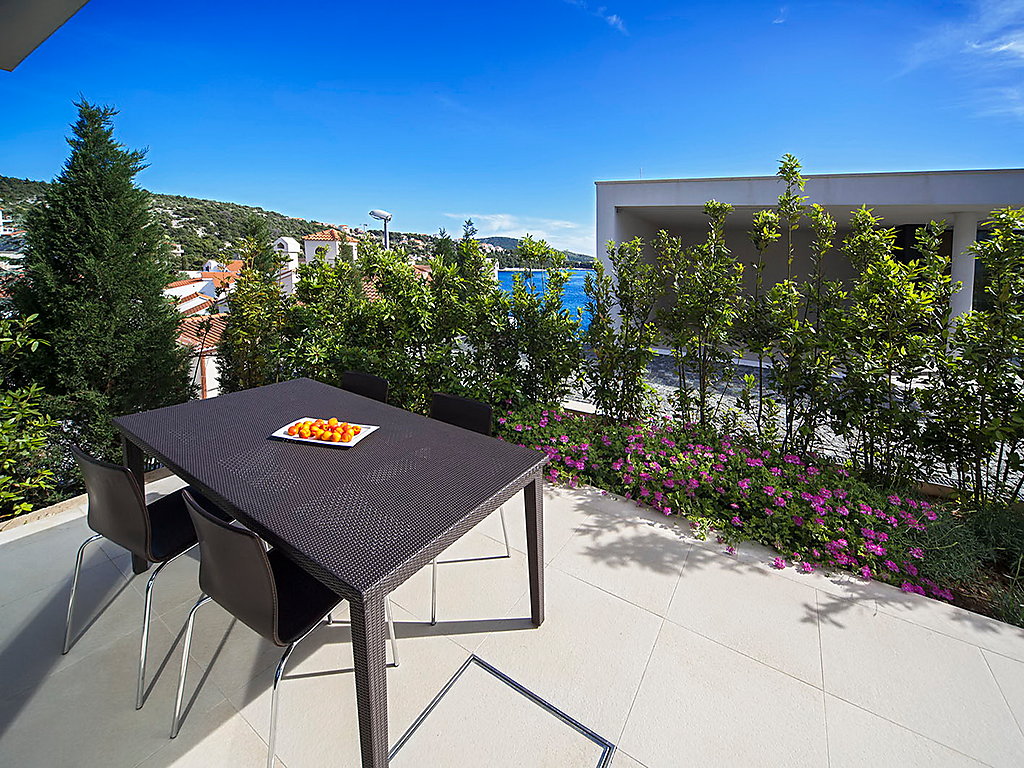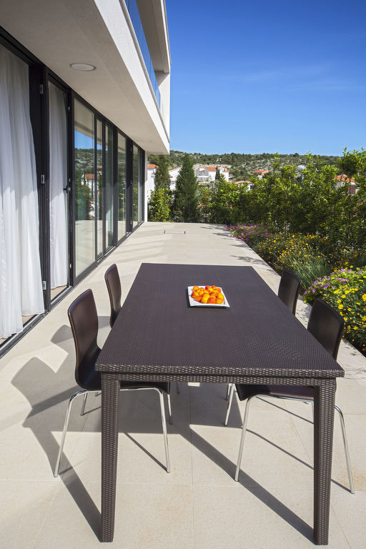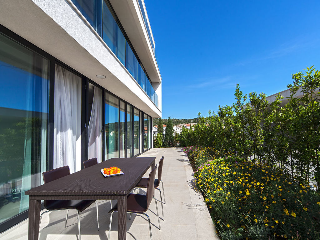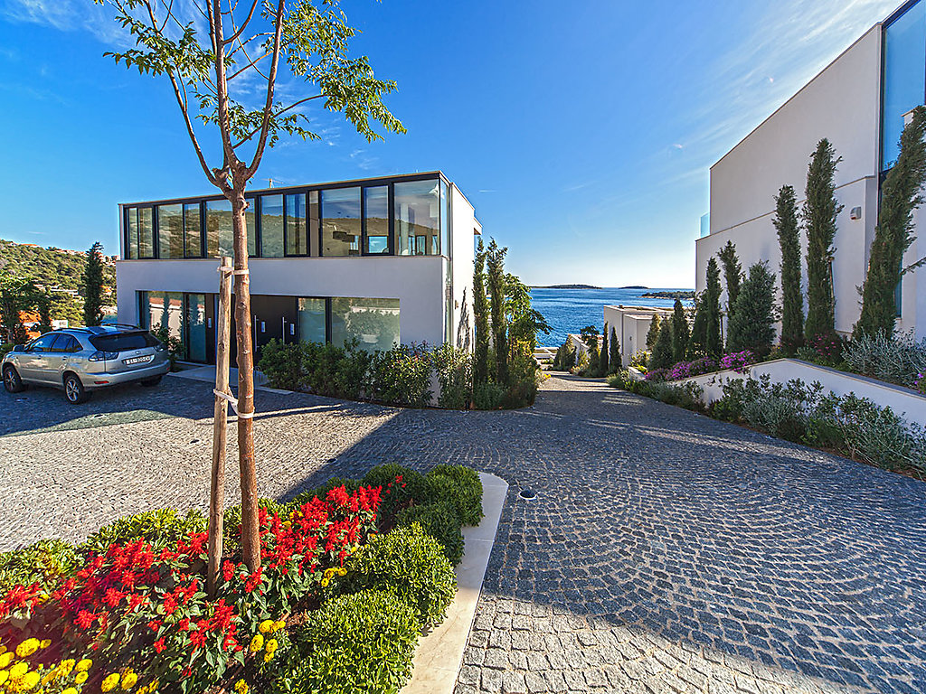 Dreifamilienhaus "Golden Ray", Baujahr 2012. 3 km vom Zentrum von Primošten, 25 km vom Zentrum von Šibenik, ruhige, sonnige Lage, 100 m vom Meer, 100 m vom Strand. Zur Mitbenutzung: Schwimmbad eckig (16 x 4 m, 72 m2, 134 cm tief, saisonale Verfügbarkeit: 01.Mai.-31.Okt.) mit Innentreppe. Im Hause: Internetzugang, Klimaanlage. Frühstück möglich auf Anfrage (extra). Parkplatz beim Haus. Einkaufsgeschäft 3 km, Restaurant 3 km, Kieselstrand 3 km, Felsstrand 100 m. Schwimmbad, eckig mit Innentreppe (16 x 4 m, 72 m2, 134 cm tief, geöffnet ab 01.05. bis 31.10.),zur Mitbenutzung mit den Villen Ref. Nr. HR4600.203, HR4600.204, HR4600.205, HR4600.206, HR4600.207 und den Ferienwohnungen Ref. Nr. HR4600.209,HR4600.210.