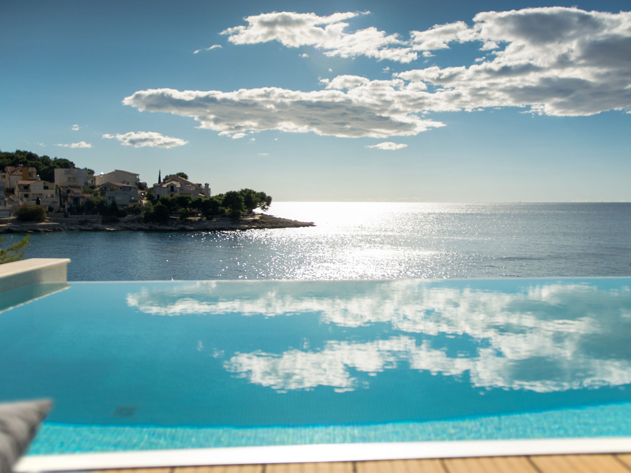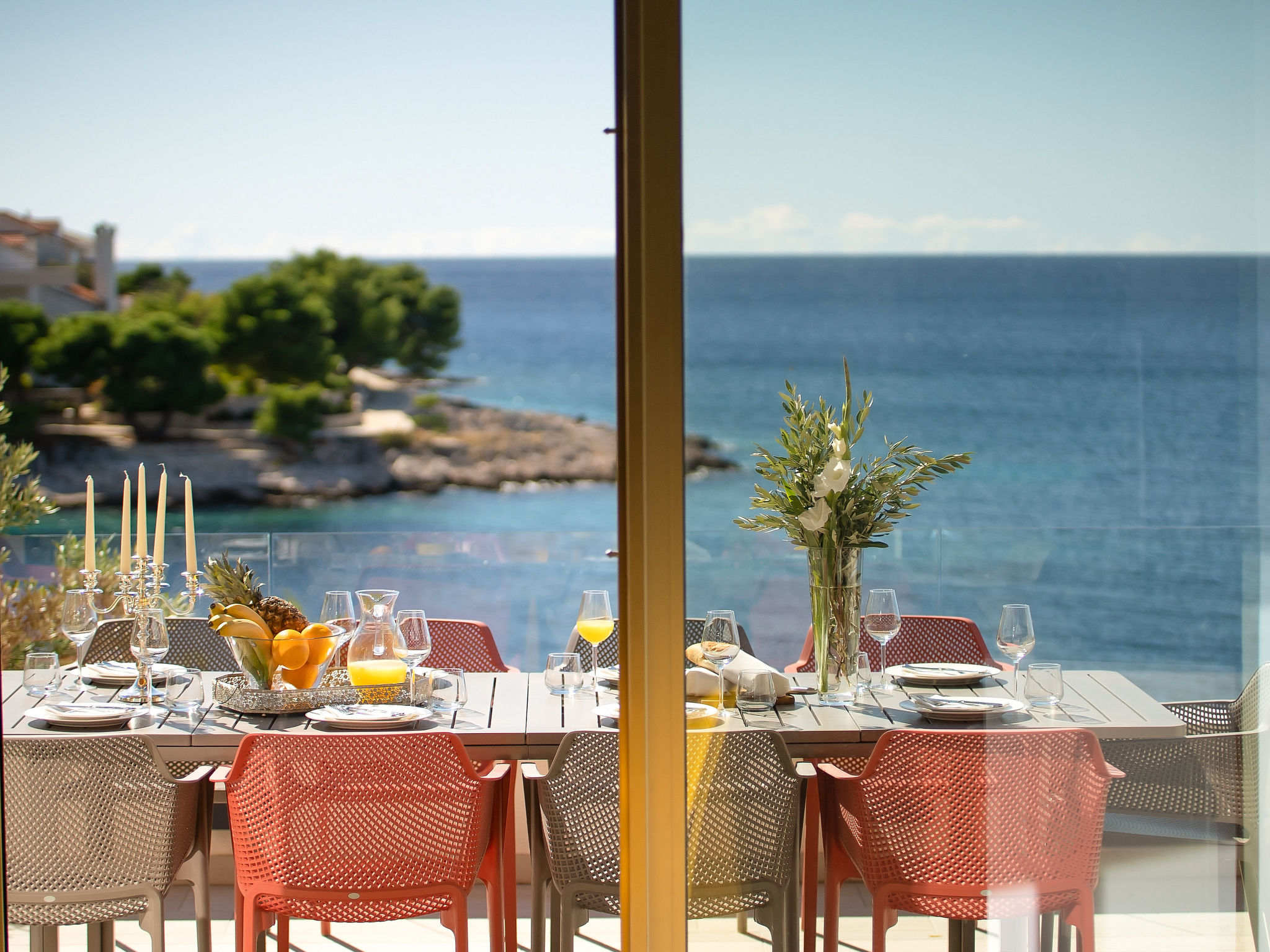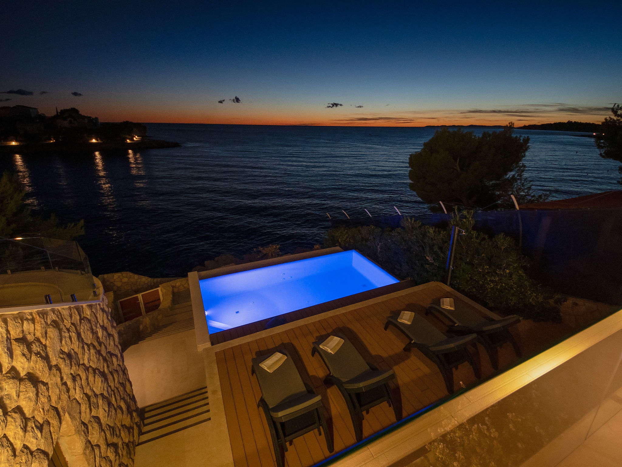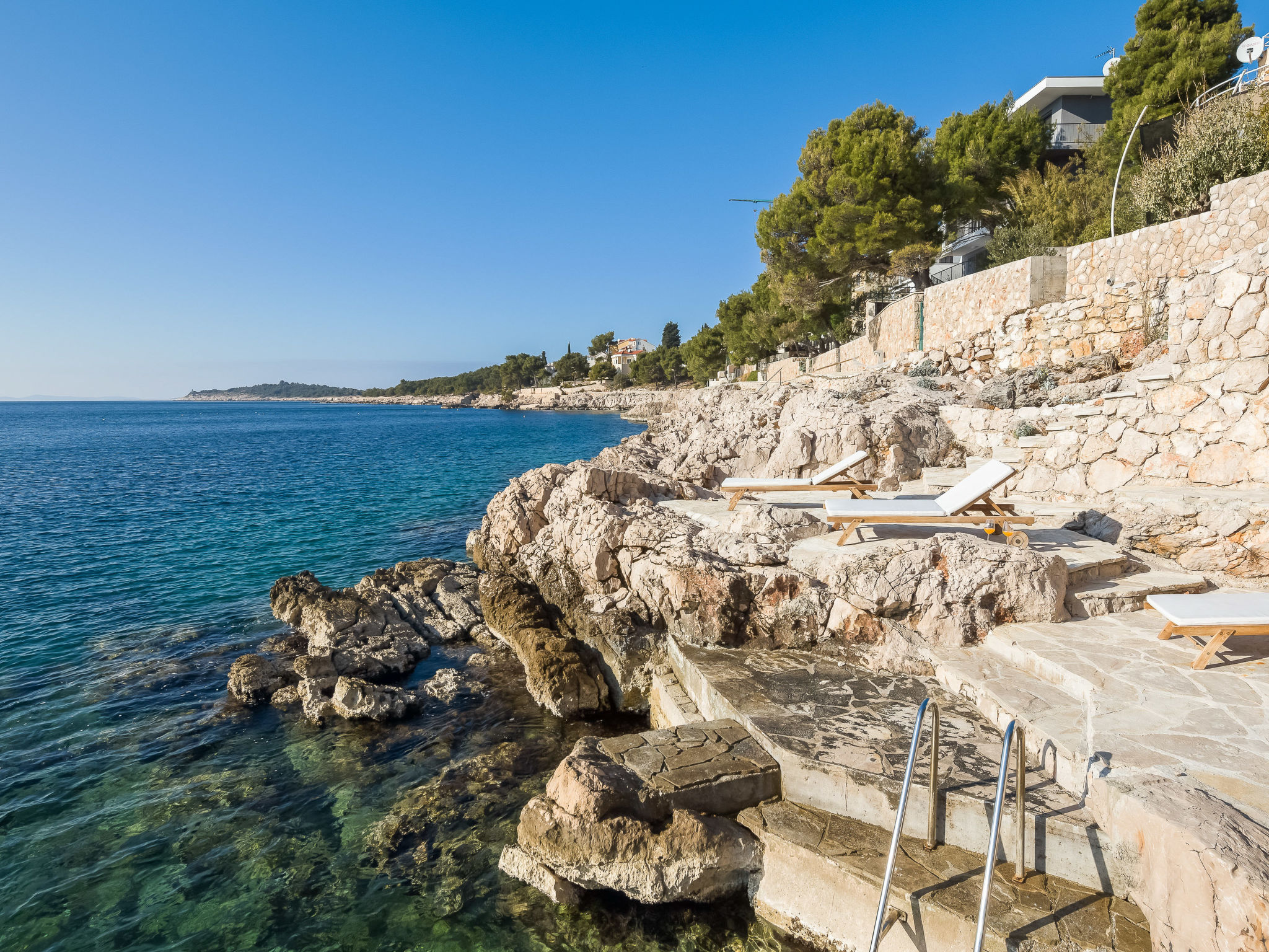 8-Zimmer-Villa 380 m2 auf 3 Stockwerken, Südwestlage. Wohn-/Esszimmer 50 m2 mit Panoramafenster mit Sat-TV (Flachbildschirm), DVD und Klimaanlage. Ausgang zur Terrasse. Offene Küche (Backofen, Geschirrspüler, 4 Glaskeramikherd Platten, Mikrowelle, Tiefkühler, elektrische Kaffeemaschine). Ausgang zur Terrasse. Dusche/WC. Obergeschoss: Wohn-/Esszimmer. Ausgang zur Terrasse. 1 Zimmer mit 1 franz. Bett (160 cm, Länge 200 cm). 1 Zimmer mit Panoramafenster mit 1 franz. Bett (160 cm, Länge 200 cm), Bad/WC und TV (Flachbildschirm), Klimaanlage. Ausgang zur Terrasse. 2 Zimmer mit Panoramafenster, jedes Zimmer mit 1 franz. Bett (160 cm, Länge 200 cm), TV (Flachbildschirm), Klimaanlage. Ausgang zur Terrasse. Offene Küche (Backofen, Geschirrspüler, 4 Glaskeramikherd Platten, Tiefkühler). 2 Duschen/WC. 2. Obergeschoss: (Aussentreppe) Wohn-/Esszimmer mit Panoramafenster mit Sat-TV (Flachbildschirm), DVD und Klimaanlage. Ausgang zum Garten, zur Terrasse. 1 Zimmer mit Panoramafenster mit 1 franz. Bett (180 cm, Länge 200 cm), TV (Flachbildschirm), Klimaanlage. Offene Küche (Backofen, Geschirrspüler, 4 Glaskeramikherd Platten, Mikrowelle, Tiefkühler, elektrische Kaffeemaschine). Bad/WC. Heizung. 2 Terrassen 30 m2, Terrasse 20 m2. Terrassenmöbel, Liegestühle. Herrliche Sicht auf das Meer. Zur Verfügung: Internet (Wireless LAN, gratis).