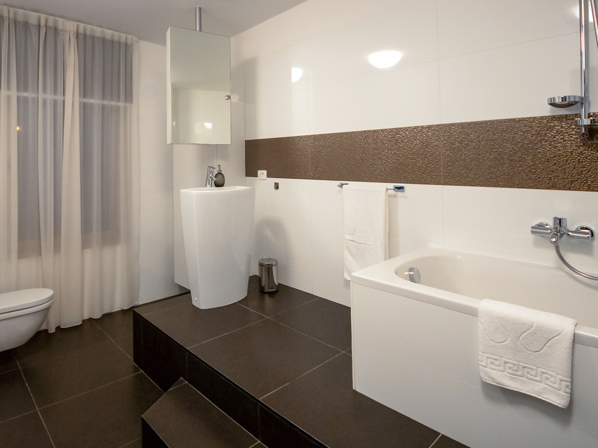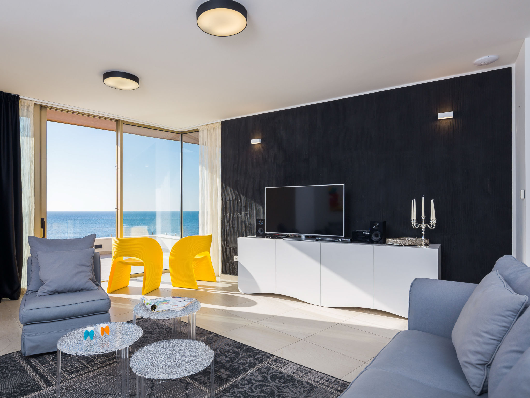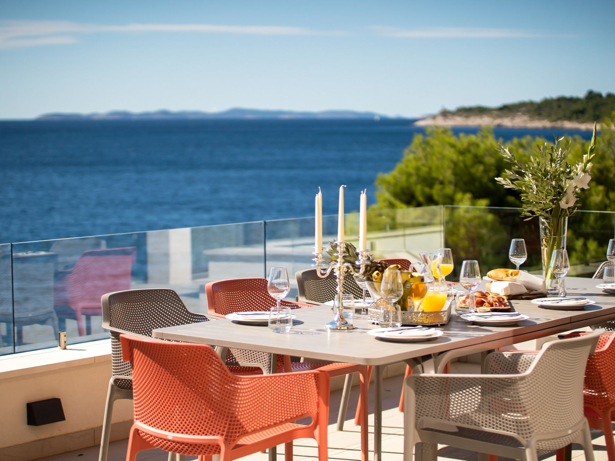 8-Zimmer-Villa 380 m2 auf 3 Stockwerken, Südwestlage. Wohn-/Esszimmer 50 m2 mit Panoramafenster mit Sat-TV (Flachbildschirm), DVD und Klimaanlage. Ausgang zur Terrasse. Offene Küche (Backofen, Geschirrspüler, 4 Glaskeramikherd Platten, Mikrowelle, Tiefkühler, elektrische Kaffeemaschine). Ausgang zur Terrasse. Dusche/WC. Obergeschoss: Wohn-/Esszimmer. Ausgang zur Terrasse. 1 Zimmer mit 1 franz. Bett (160 cm, Länge 200 cm). 1 Zimmer mit Panoramafenster mit 1 franz. Bett (160 cm, Länge 200 cm), Bad/WC und TV (Flachbildschirm), Klimaanlage. Ausgang zur Terrasse. 2 Zimmer mit Panoramafenster, jedes Zimmer mit 1 franz. Bett (160 cm, Länge 200 cm), TV (Flachbildschirm), Klimaanlage. Ausgang zur Terrasse. Offene Küche (Backofen, Geschirrspüler, 4 Glaskeramikherd Platten, Tiefkühler). 2 Duschen/WC. 2. Obergeschoss: (Aussentreppe) Wohn-/Esszimmer mit Panoramafenster mit Sat-TV (Flachbildschirm), DVD und Klimaanlage. Ausgang zum Garten, zur Terrasse. 1 Zimmer mit Panoramafenster mit 1 franz. Bett (180 cm, Länge 200 cm), TV (Flachbildschirm), Klimaanlage. Offene Küche (Backofen, Geschirrspüler, 4 Glaskeramikherd Platten, Mikrowelle, Tiefkühler, elektrische Kaffeemaschine). Bad/WC. Heizung. 2 Terrassen 30 m2, Terrasse 20 m2. Terrassenmöbel, Liegestühle. Herrliche Sicht auf das Meer. Zur Verfügung: Internet (Wireless LAN, gratis).