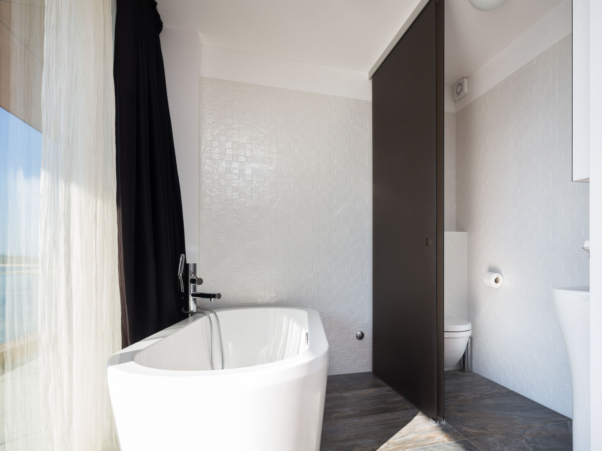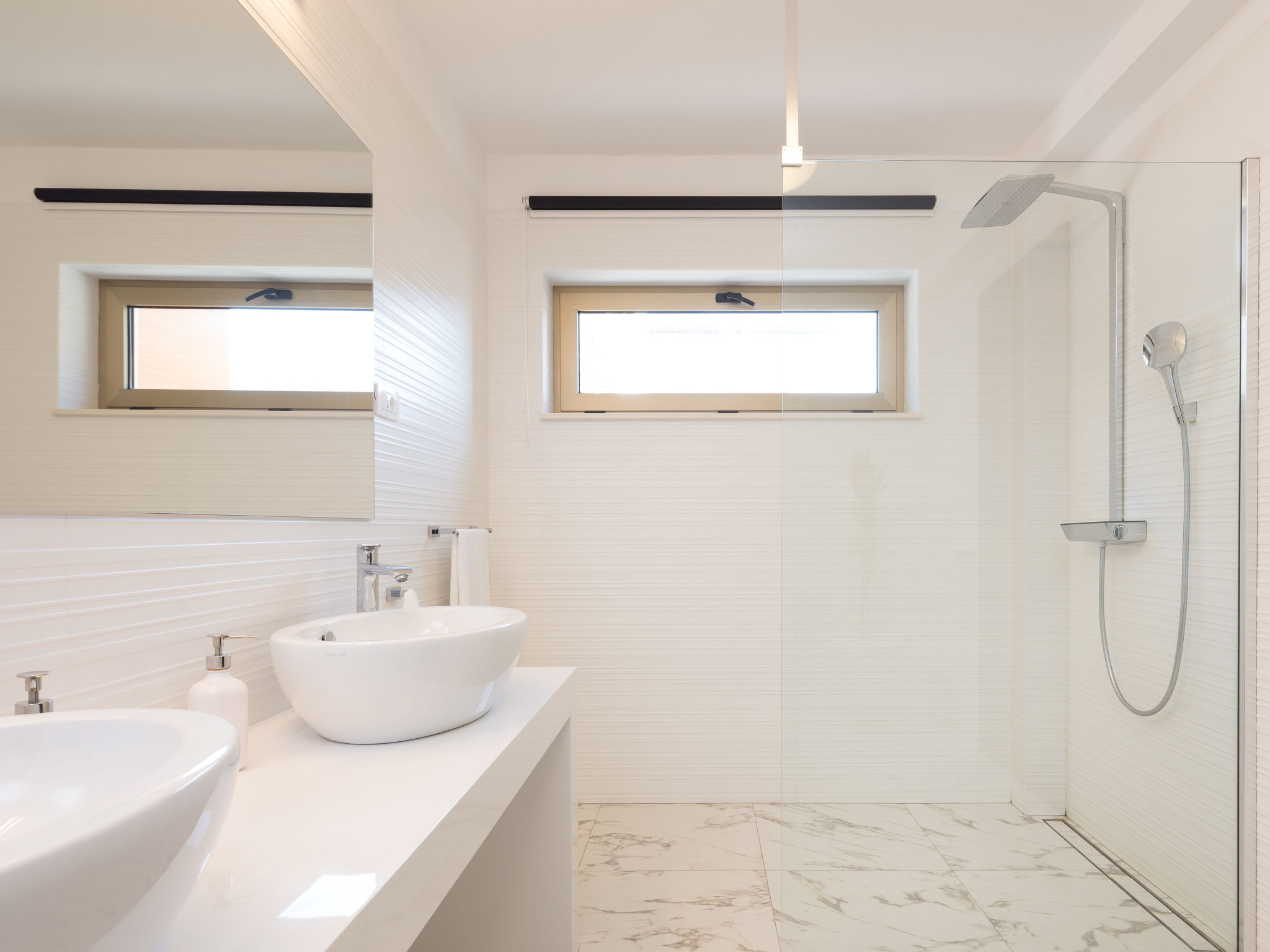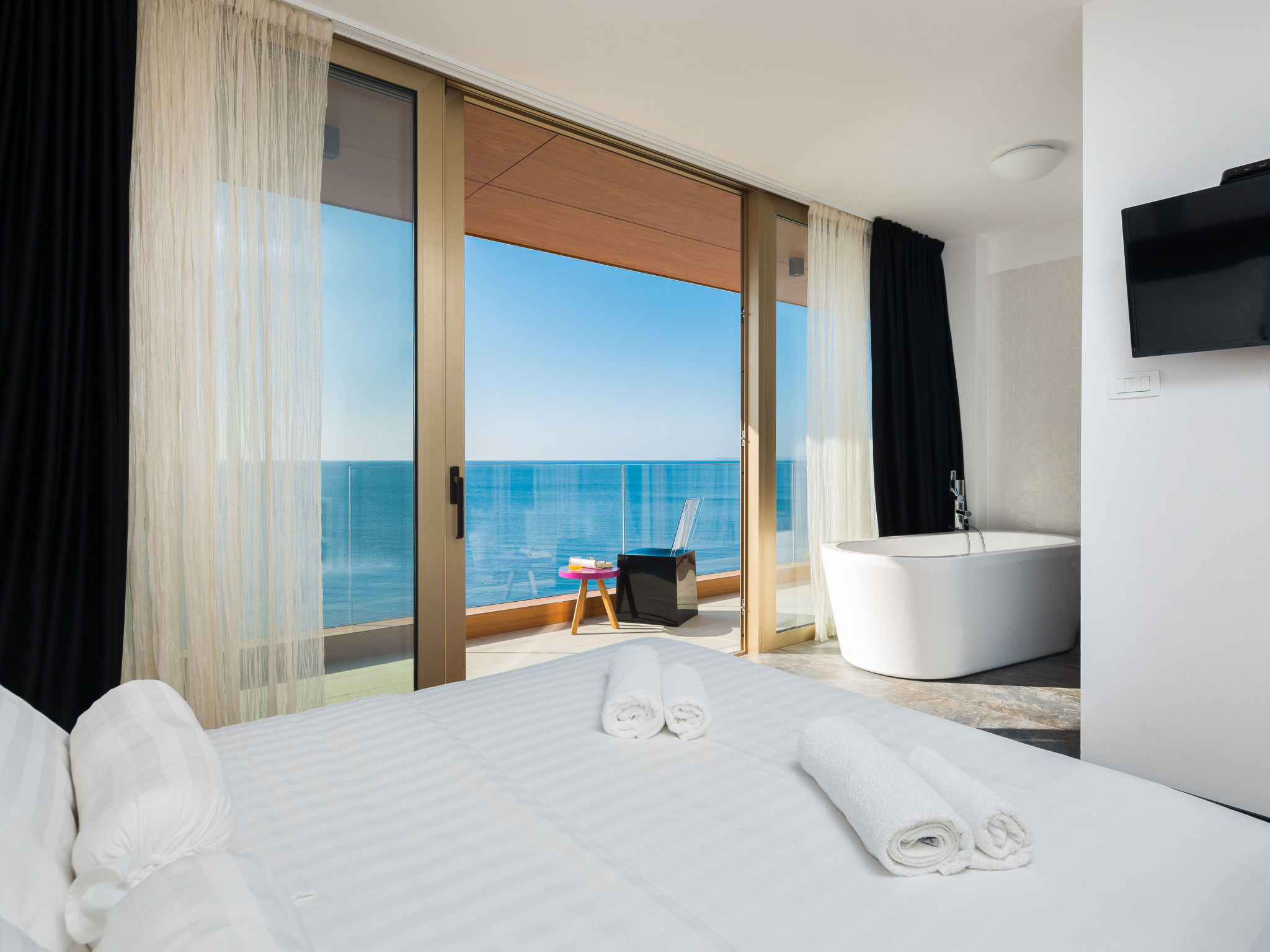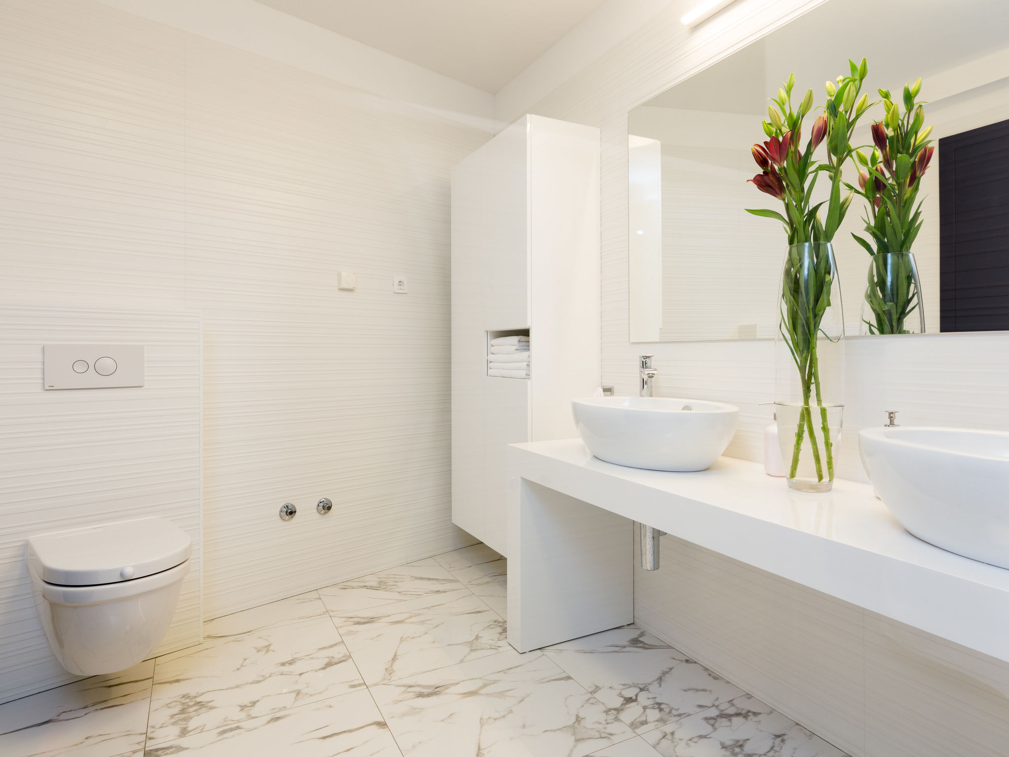 8-Zimmer-Villa 380 m2 auf 3 Stockwerken, Südwestlage. Wohn-/Esszimmer 50 m2 mit Panoramafenster mit Sat-TV (Flachbildschirm), DVD und Klimaanlage. Ausgang zur Terrasse. Offene Küche (Backofen, Geschirrspüler, 4 Glaskeramikherd Platten, Mikrowelle, Tiefkühler, elektrische Kaffeemaschine). Ausgang zur Terrasse. Dusche/WC. Obergeschoss: Wohn-/Esszimmer. Ausgang zur Terrasse. 1 Zimmer mit 1 franz. Bett (160 cm, Länge 200 cm). 1 Zimmer mit Panoramafenster mit 1 franz. Bett (160 cm, Länge 200 cm), Bad/WC und TV (Flachbildschirm), Klimaanlage. Ausgang zur Terrasse. 2 Zimmer mit Panoramafenster, jedes Zimmer mit 1 franz. Bett (160 cm, Länge 200 cm), TV (Flachbildschirm), Klimaanlage. Ausgang zur Terrasse. Offene Küche (Backofen, Geschirrspüler, 4 Glaskeramikherd Platten, Tiefkühler). 2 Duschen/WC. 2. Obergeschoss: (Aussentreppe) Wohn-/Esszimmer mit Panoramafenster mit Sat-TV (Flachbildschirm), DVD und Klimaanlage. Ausgang zum Garten, zur Terrasse. 1 Zimmer mit Panoramafenster mit 1 franz. Bett (180 cm, Länge 200 cm), TV (Flachbildschirm), Klimaanlage. Offene Küche (Backofen, Geschirrspüler, 4 Glaskeramikherd Platten, Mikrowelle, Tiefkühler, elektrische Kaffeemaschine). Bad/WC. Heizung. 2 Terrassen 30 m2, Terrasse 20 m2. Terrassenmöbel, Liegestühle. Herrliche Sicht auf das Meer. Zur Verfügung: Internet (Wireless LAN, gratis).