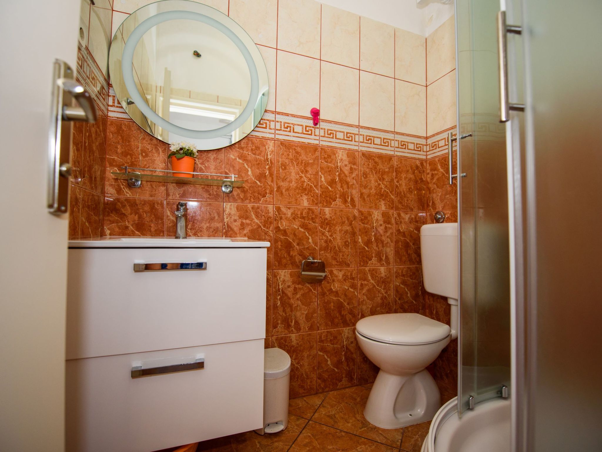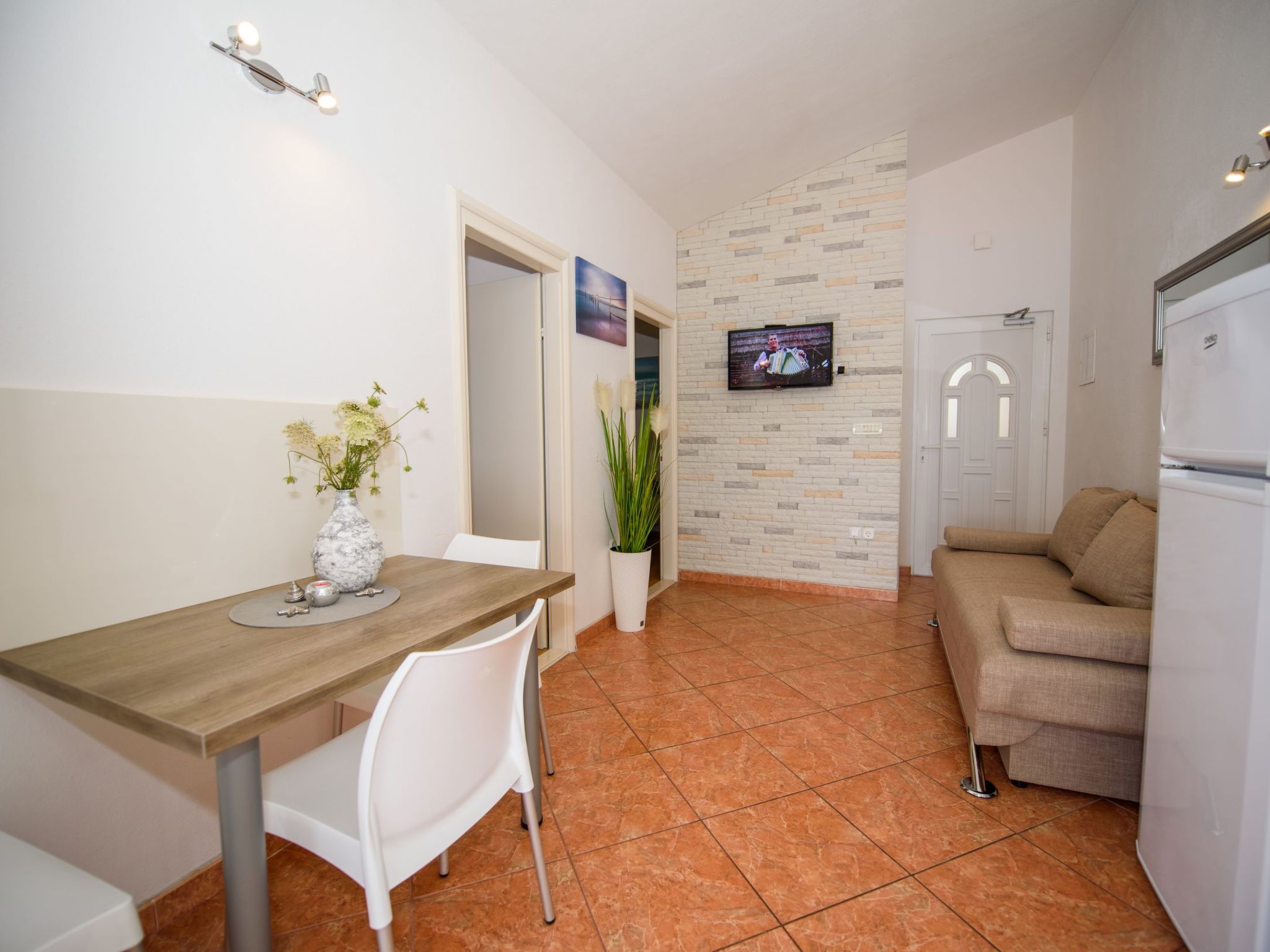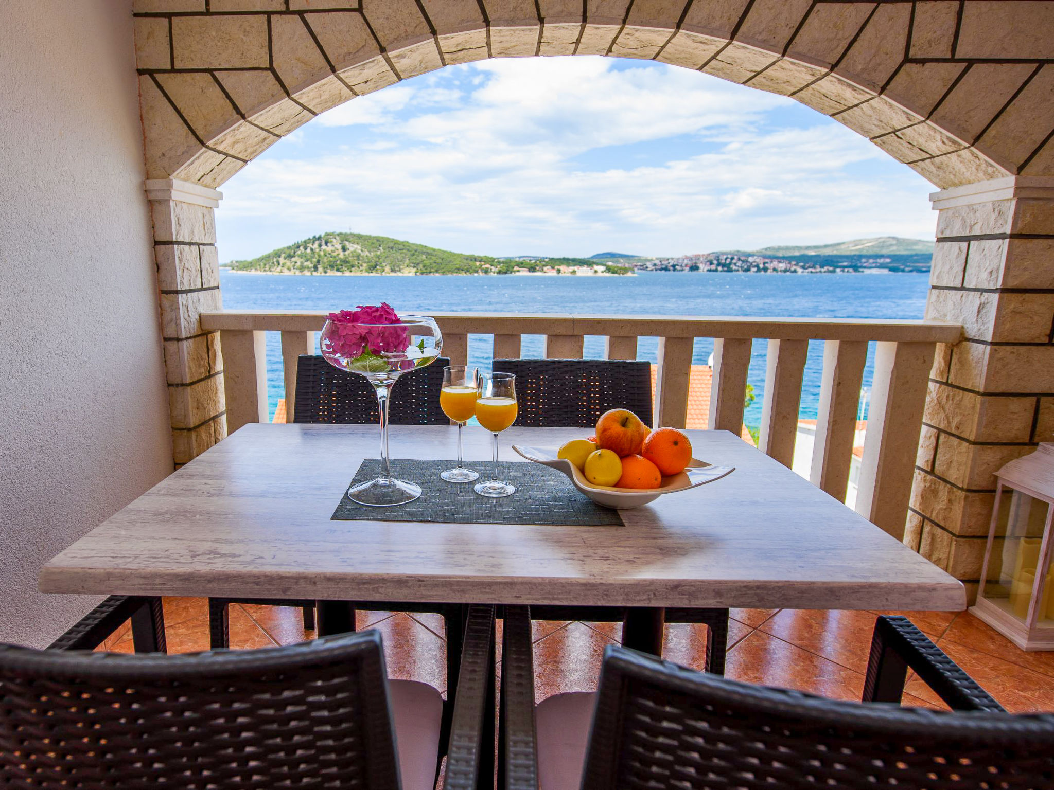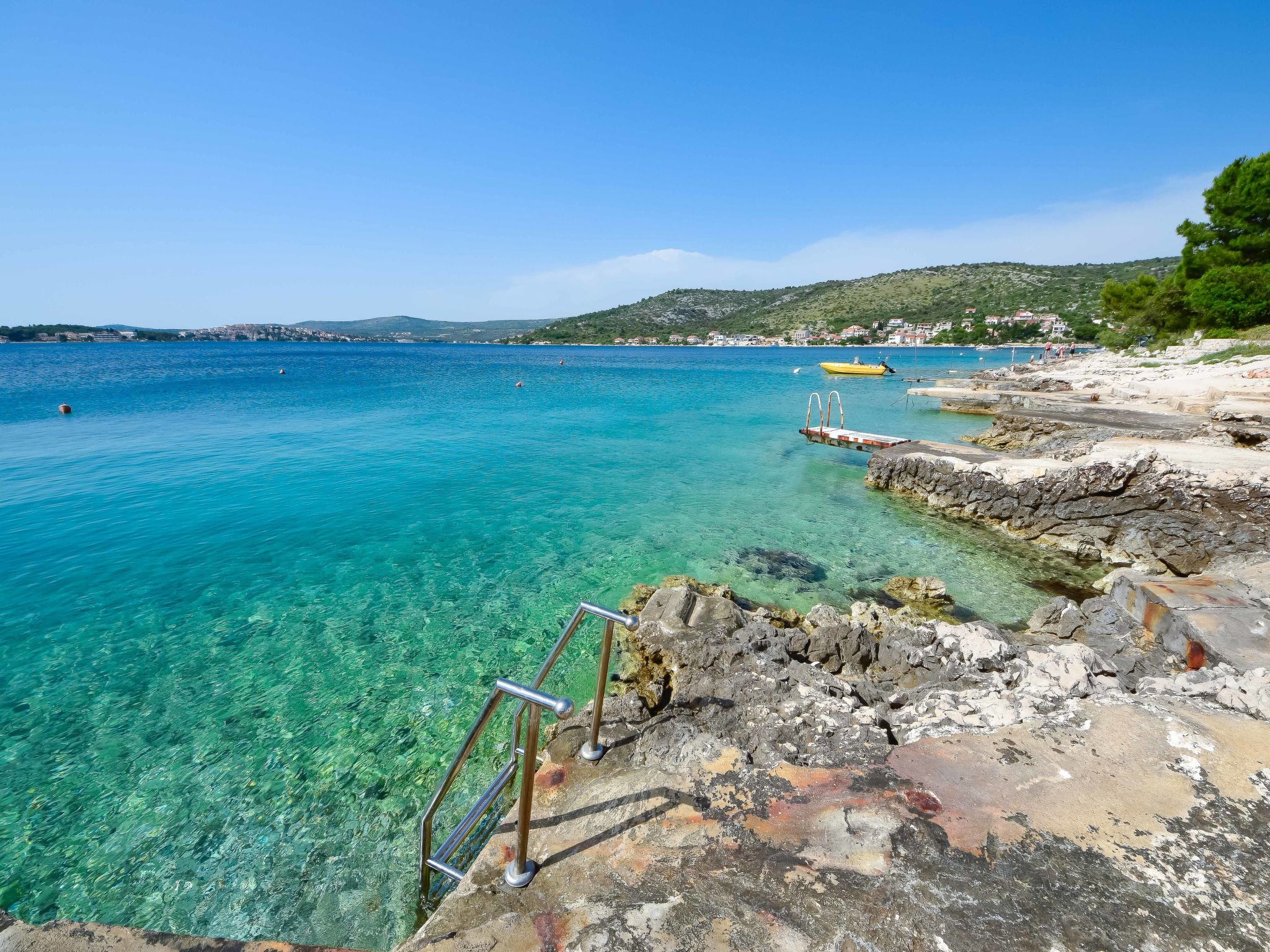 Razanj 10 km von Rogoznica: Schönes Appartementhaus "Marina". Im Ortsteil Ljoljinica, ruhige, erhöhte Lage, 40 m vom Meer. Zur Mitbenutzung: Aussendusche, Terrasse, Gartenmöbel, Grill, Parkplatz beim Haus auf dem Grundstück, Gemeinschaftsgarage. Einkaufsgeschäft, Restaurant 200 m, Felsstrand 40 m. Bitte beachten: In diesem Haus sind weitere Ferienwohnungen mietbar.