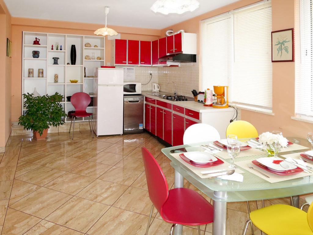 3-Zimmer-Wohnung 75 m2 im 1. Stock. Wohnzimmer mit Sat-TV und Internationale TV-Sender. Ausgang zur Terrasse. 1 Zimmer mit 1 Doppelbetten. Ausgang zur Terrasse. 1 Zimmer mit 1 Doppelbetten. Küche (2 Kochplatten, Backofen, Geschirrspüler, 2 Glaskeramikherd Platten, Mikrowelle, Tiefkühler, elektrische Kaffeemaschine). 2 Duschen/WC. Heizung, Klimaanlage.), Obergeschoss: mit Esstisch, Esstisch. Parkettböden. 1 Terrassen 25 m2. Terrassenmöbel. Sicht auf das Meer. Zur Verfügung: Internet (Wireless LAN, gratis). Bitte beachten: Nichtraucher-Unterkunft.