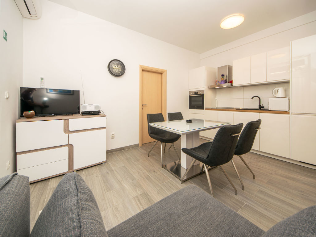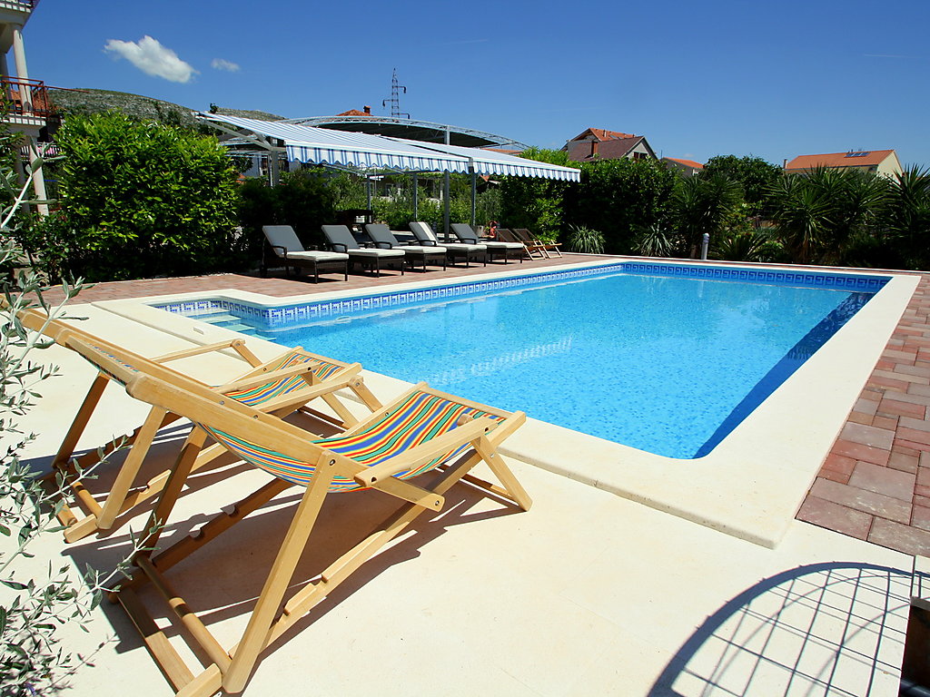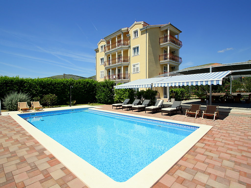 Schönes Mehrfamilienhaus "Mare". 200 m vom Zentrum von Trogir, ruhige, sonnige Lage, 300 m vom Meer. Zur Mitbenutzung: Grundstück 1'600 m2 (eingezäunt) mit Rasen 600 m2, Schwimmbad eckig beheizt (10 x 5 m, 140 cm tief, saisonale Verfügbarkeit: 02.Apr.-15.Okt.) mit Innentreppe. Aussendusche, Terrasse, Gartenmöbel, Grill, Kinderspielplatz (Schaukel). Im Hause: Internetzugang, Tischtennis. Parkplatz beim Haus auf dem Grundstück. Einkaufsgeschäft 50 m, Restaurant 300 m, Kieselstrand 1.5 km. Bitte beachten: In diesem Haus sind weitere Ferienwohnungen mietbar. Schwimmbad mit Gegenstromanlage.