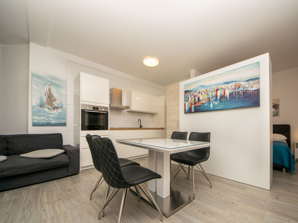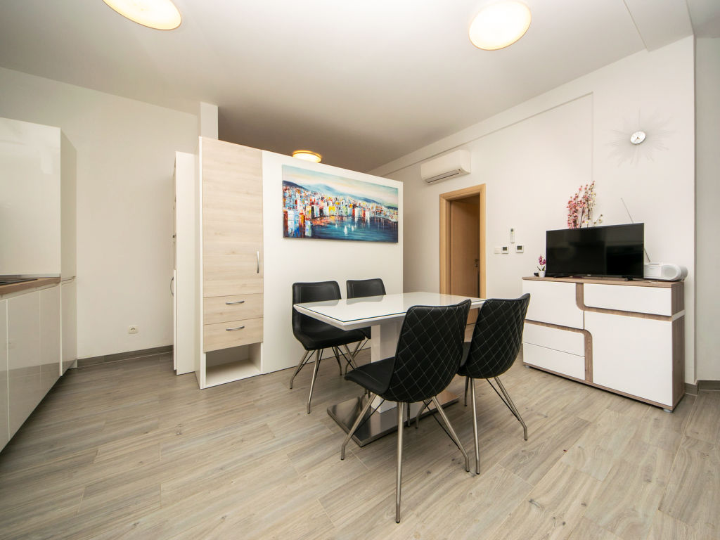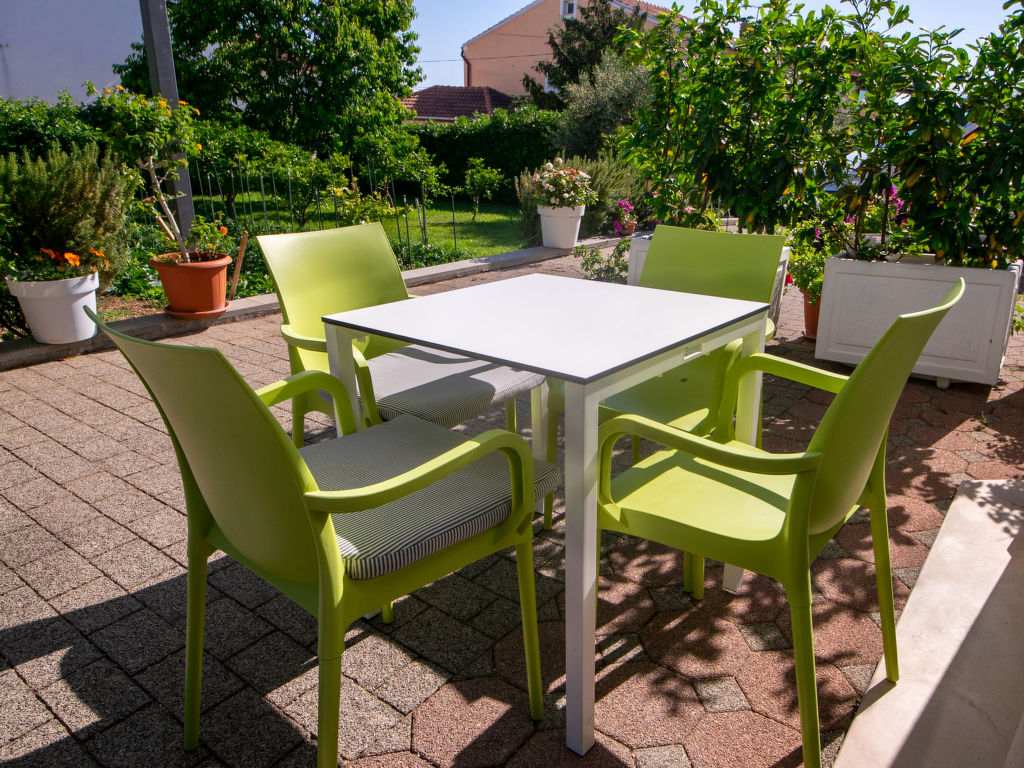 Schönes Mehrfamilienhaus "Mare". 200 m vom Zentrum von Trogir, ruhige, sonnige Lage, 300 m vom Meer. Zur Mitbenutzung: Grundstück 1'600 m2 (eingezäunt) mit Rasen 600 m2, Schwimmbad eckig beheizt (10 x 5 m, 140 cm tief, saisonale Verfügbarkeit: 02.Apr.-15.Okt.) mit Innentreppe. Aussendusche, Terrasse, Gartenmöbel, Grill, Kinderspielplatz (Schaukel). Im Hause: Internetzugang, Tischtennis. Parkplatz beim Haus auf dem Grundstück. Einkaufsgeschäft 50 m, Restaurant 300 m, Kieselstrand 1.5 km. Bitte beachten: In diesem Haus sind weitere Ferienwohnungen mietbar. Schwimmbad mit Gegenstromanlage.
