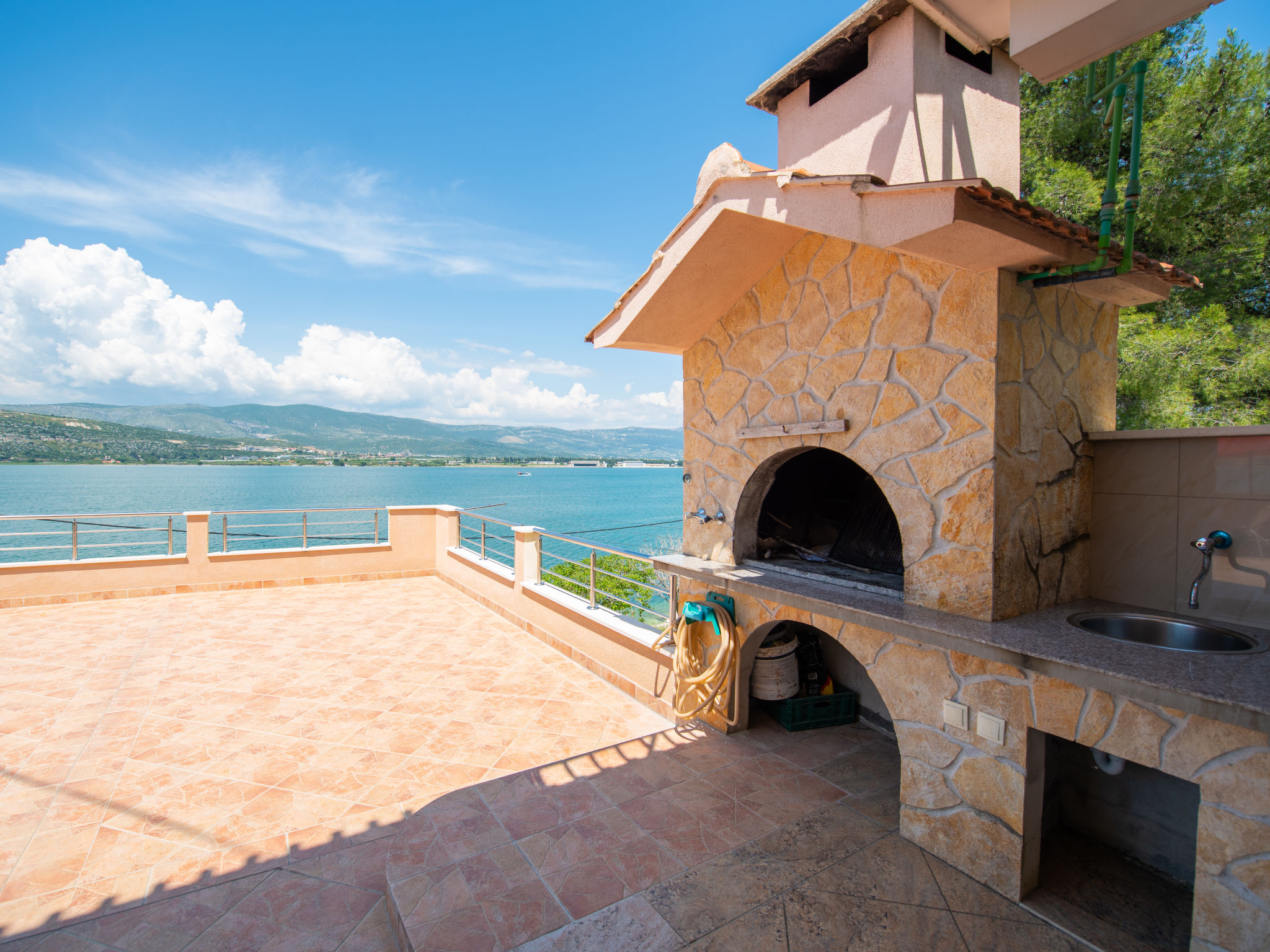 Mastrinka (Čiovo) 4 km von Trogir: Mehrfamilienhaus "Vinka". Sonnige Lage, 30 m vom Meer, 30 m vom Strand, Strasse zu überqueren, an einer Strasse. Zur Mitbenutzung: Grundstück 500 m2. Grill. Im Hause: Internetzugang, Waschmaschine (extra) (zur Mitbenutzung). Öffentliche Parkplätze auf der Strasse. Einkaufsgeschäft, Restaurant 800 m, Kieselstrand, Felsstrand 30 m. Bitte beachten: private Bootsanlegestelle (extra) auf Anfrage. Flugplatz 5.5 km vom Haus.