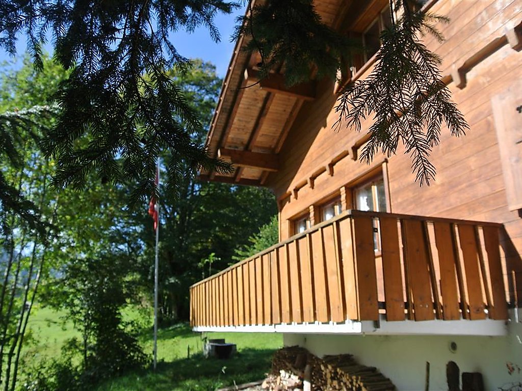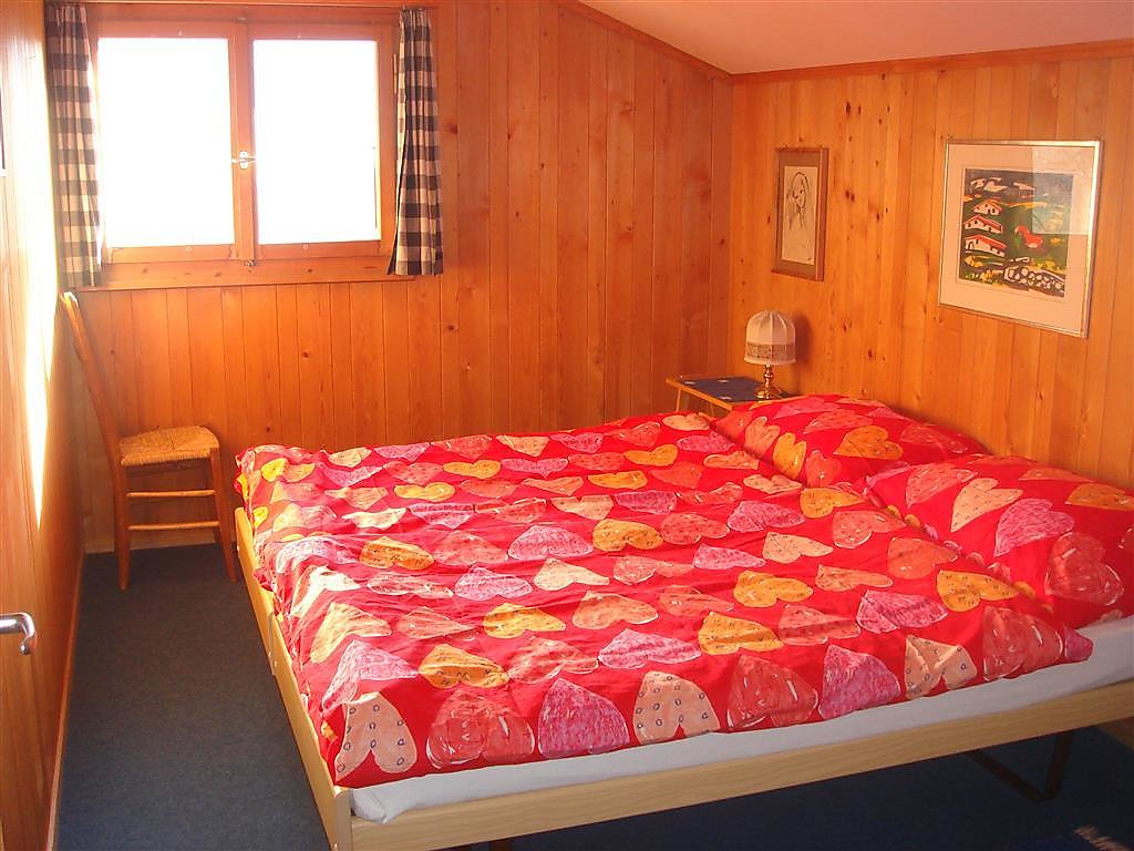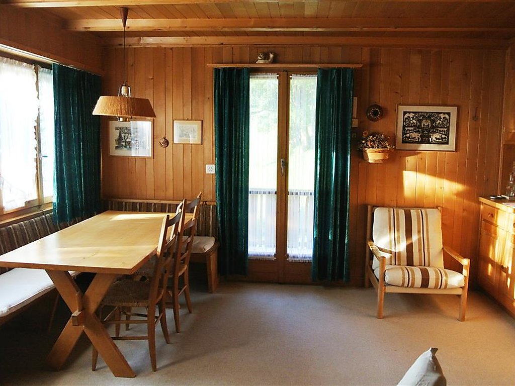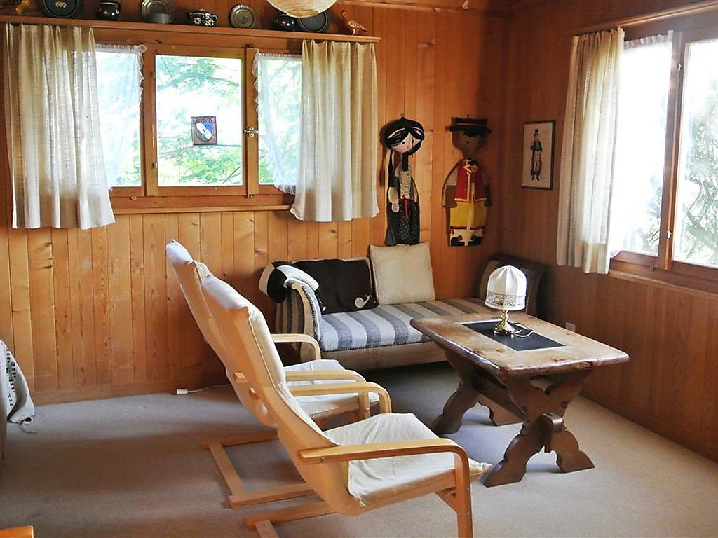 70 m2. Weitere Angaben des Anbieters: 1961 erbautes 4-Zimmer-Chalet (70m2). Balkon und Terrasse mit Gartenmöbeln und Grill. Ruhige und sonnige Lage mit schöner Aussicht. Garage, Abstellraum und Waschmaschine. Nähe Freiluftschwimmbad. Es führt eine längere Treppe zum erhöht gelegenen Chalet (ca. 40 Treppenstufen). Das Chalet eignet sich somit nicht für gehbehinderte Menschen. EG: Grosses Wohnzimmer (Teil mit Schiebetür abtrennbar) mit Balkon, Essecke, Sitzgruppe, Telefon, TV/Radio und WiFi. Separate Küche (Kaffeemaschine Nespresso und Filter, Kühlschrank mit kleinem Gefrierfach, Fondue- und Raclette-Set). 1. Stock: 2 Doppelschlafzimmer (4x90x190cm), 1 kleines Einzelzimmer (1x90x190cm), Bad/Dusche, WC separat. INKLUSIVE: Elektrizität, Heizung, Wasser, Garage, Waschmaschine, WiFi, Küchen-, Badezimmer- und Bettwäsche (Erstausstattung) sowie Kurtaxen und Endreinigung. EXKLUSIVE: Telefongesprächstaxen. Kaffee. ***Haustiere willkommen*** Wichtig: In den meisten Ferienwohnungen ist nur ein Haustier (in der Regel ein Hund) erlaubt. Weitere bzw. andere Haustiere müssen vor der Buchung angefragt werden.
