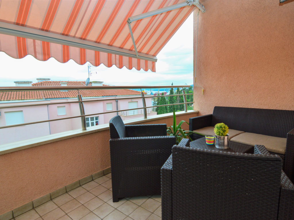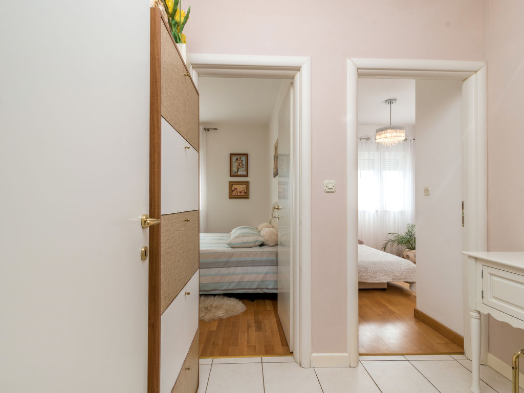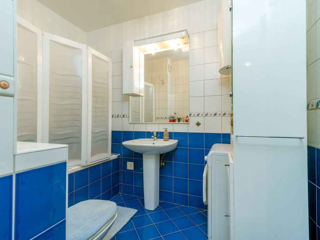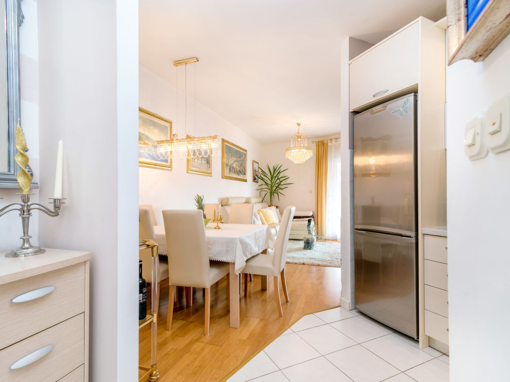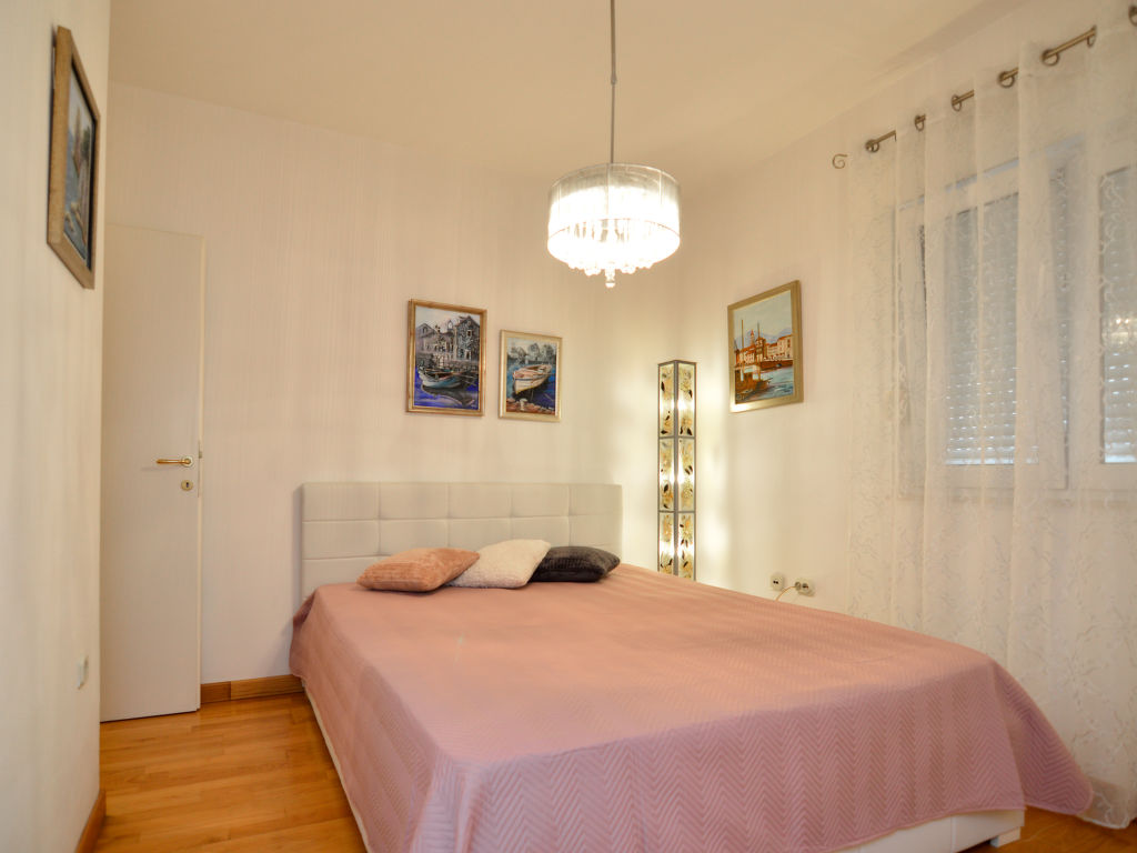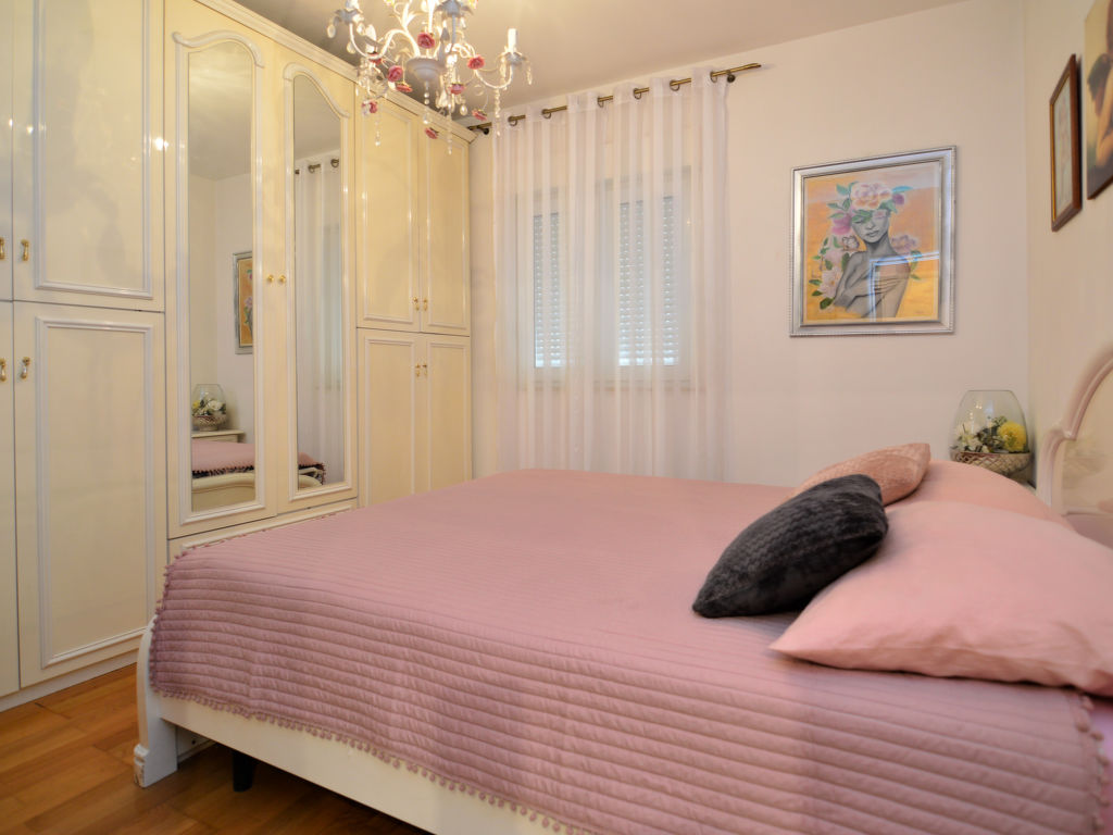3-Zimmer-Wohnung 75 m2 im 1. Stock. Wohn-/Esszimmer mit Sat-TV (Flachbildschirm), Klimaanlage. Ausgang zum Balkon. 1 Zimmer mit 1 franz. Bett (180 cm). 1 Zimmer mit 1 Doppeldiwanbett (130 cm). Offene Küche (1 Kochplatte, Backofen, 3 Flammen, Toaster, Wasserkocher, Mikrowelle, Tiefkühler, elektrische Kaffeemaschine). Bad/WC, sep. WC. Balkon. Balkonmöbel. Eingeschränkte Sicht auf das Meer. Zur Verfügung: Waschmaschine. Internet (Wireless LAN, gratis). Garage (1 Auto). Max. Belegung: 2 Erwachsene, 2 Kinder bis 12 Jahre.