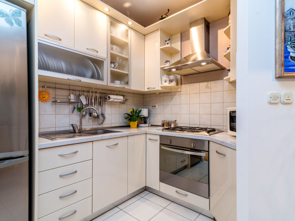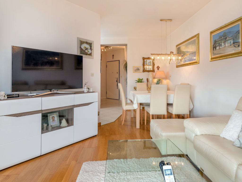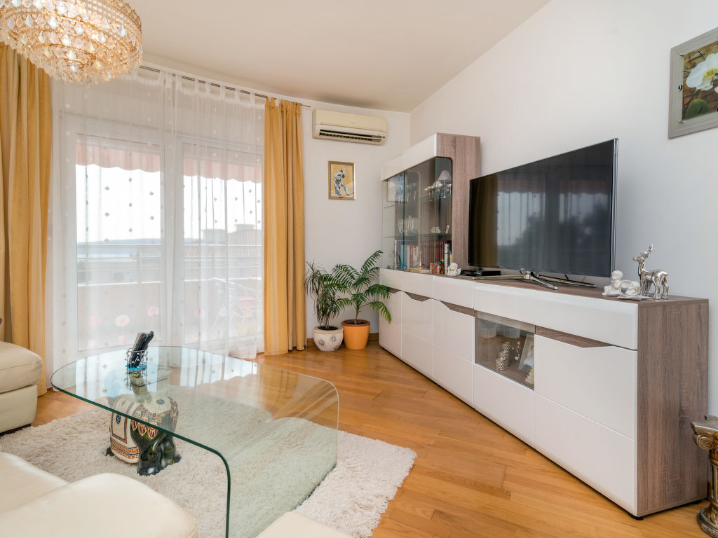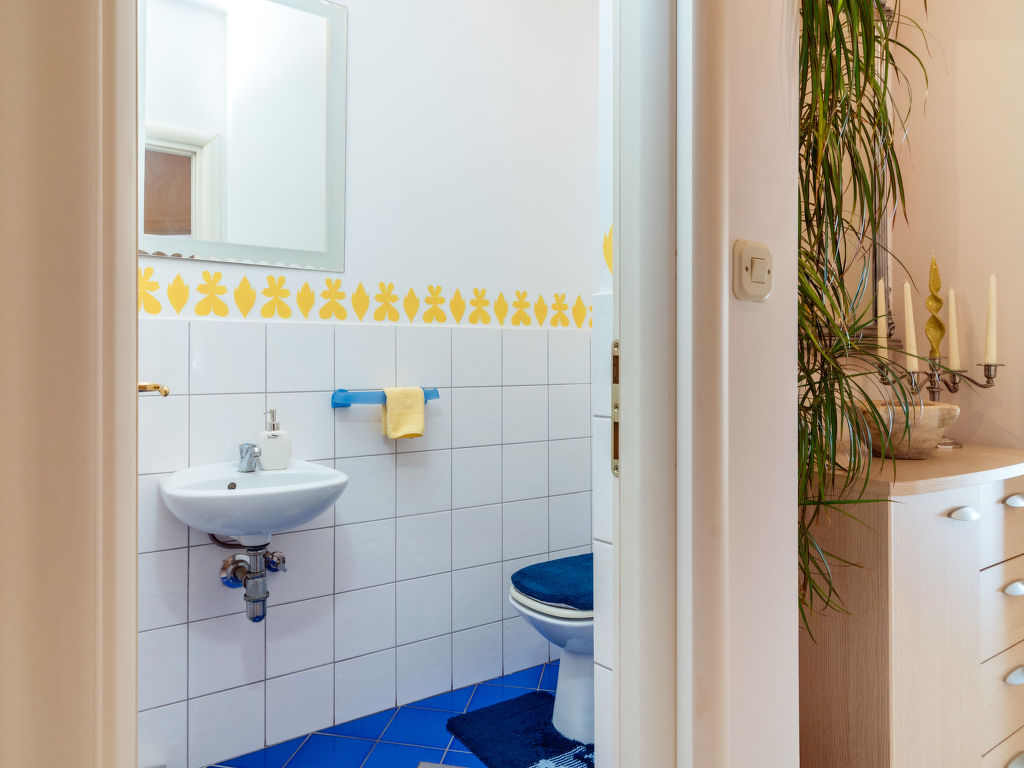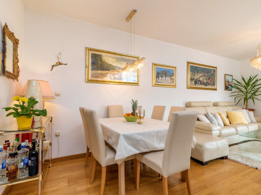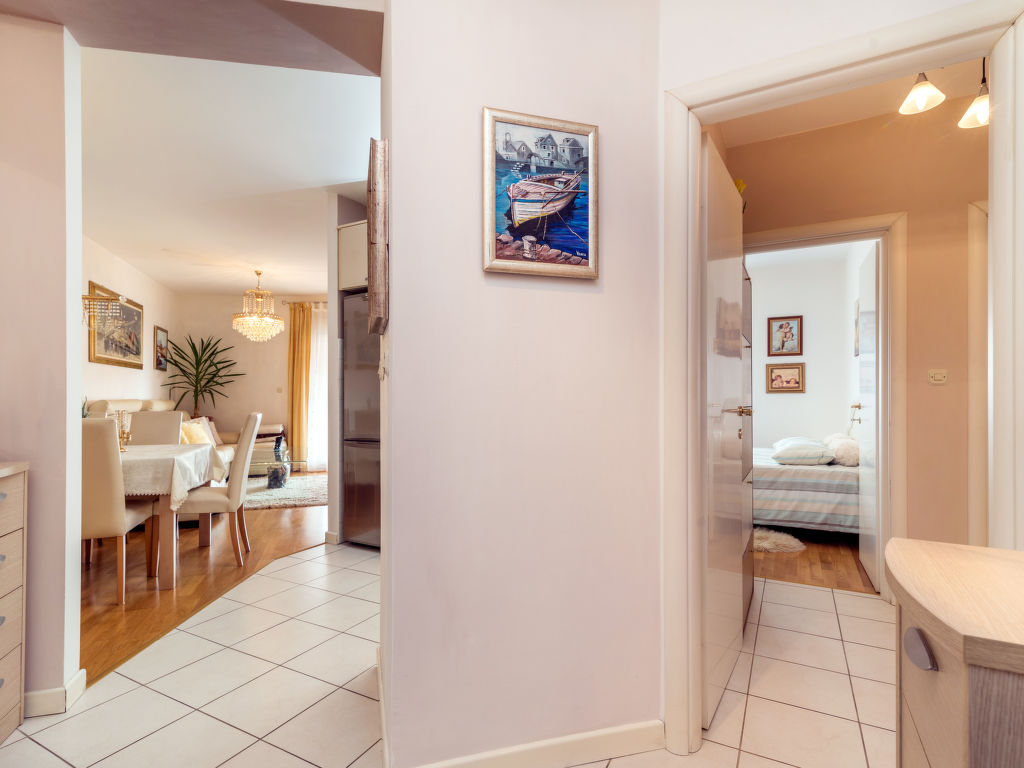 3-Zimmer-Wohnung 75 m2 im 1. Stock. Wohn-/Esszimmer mit Sat-TV (Flachbildschirm), Klimaanlage. Ausgang zum Balkon. 1 Zimmer mit 1 franz. Bett (180 cm). 1 Zimmer mit 1 Doppeldiwanbett (130 cm). Offene Küche (1 Kochplatte, Backofen, 3 Flammen, Toaster, Wasserkocher, Mikrowelle, Tiefkühler, elektrische Kaffeemaschine). Bad/WC, sep. WC. Balkon. Balkonmöbel. Eingeschränkte Sicht auf das Meer. Zur Verfügung: Waschmaschine. Internet (Wireless LAN, gratis). Garage (1 Auto). Max. Belegung: 2 Erwachsene, 2 Kinder bis 12 Jahre.