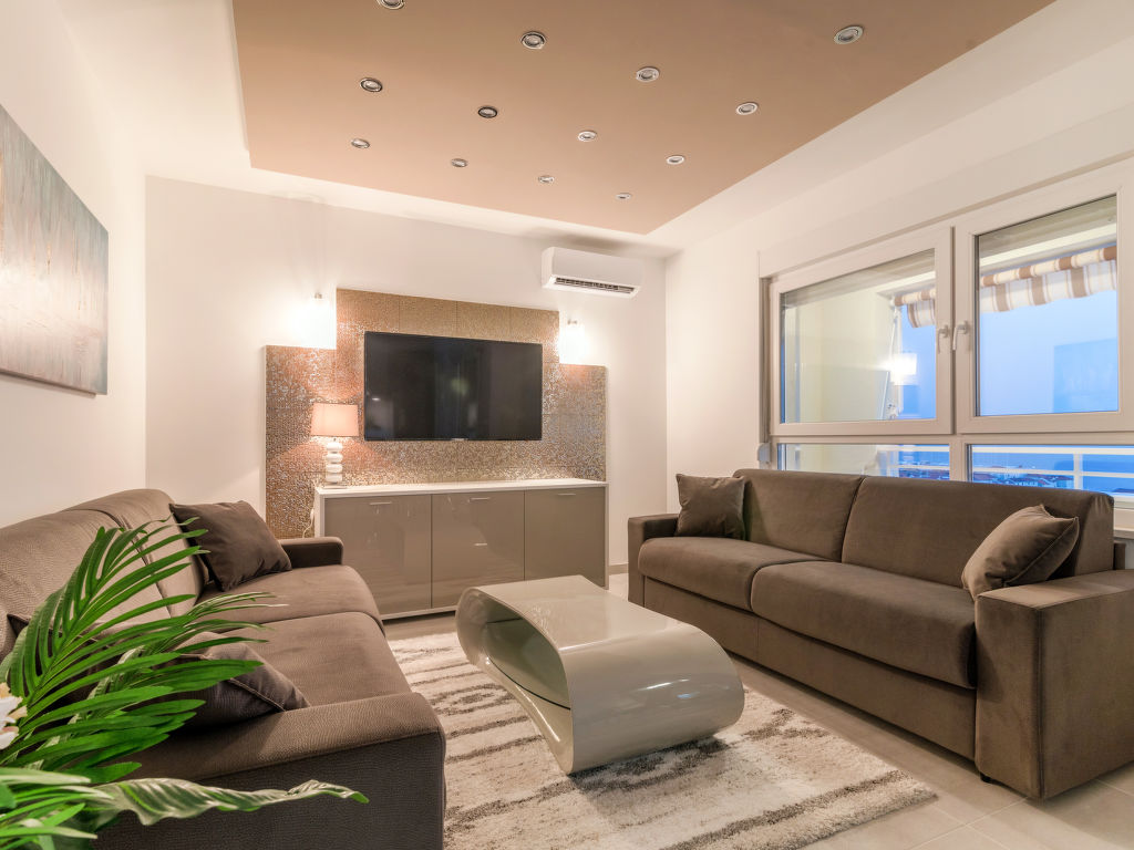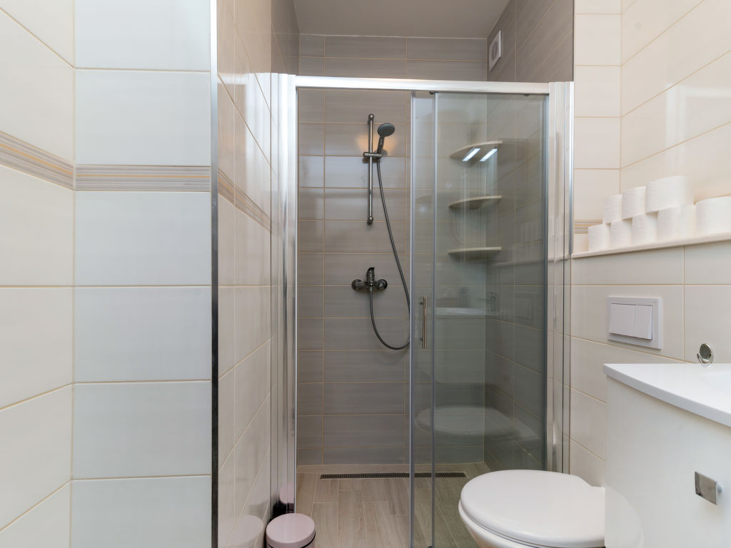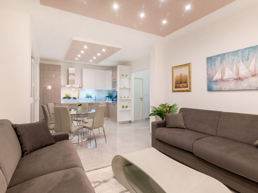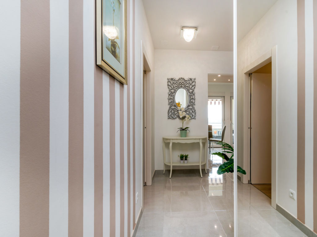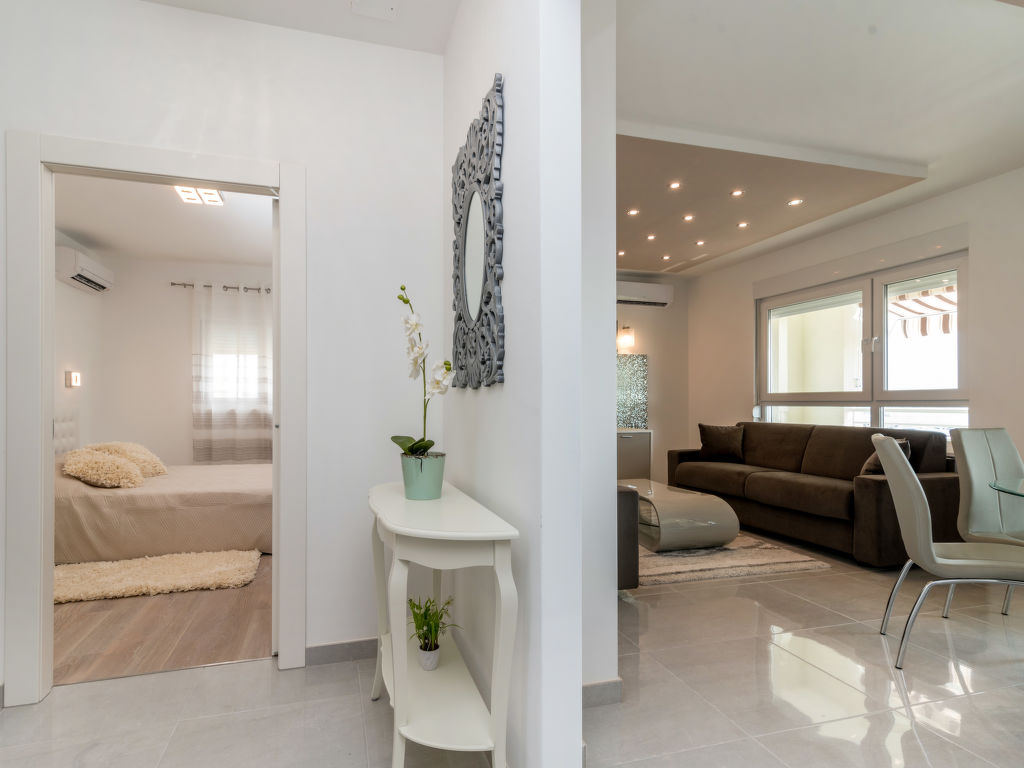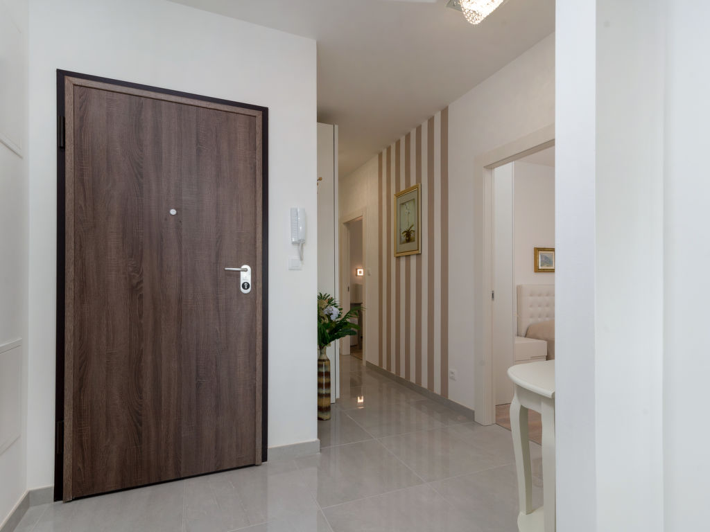 Appartementhaus "Bella Vista", Baujahr 2017. 300 m vom Zentrum von Seget Donji, 1.8 km vom Zentrum von Trogir, 27 km vom Zentrum von Split, 200 m vom Meer, 200 m vom Strand. Zur Mitbenutzung: Grundstück 1'000 m2. Grill. Im Hause: Internetzugang, Fahrstuhl. Parkplatz auf dem Grundstück, öffentliche Parkplätze auf der Strasse. Einkaufsgeschäft 150 m, Supermarkt 1.5 km, Restaurant 2 km, Kieselstrand 200 m.