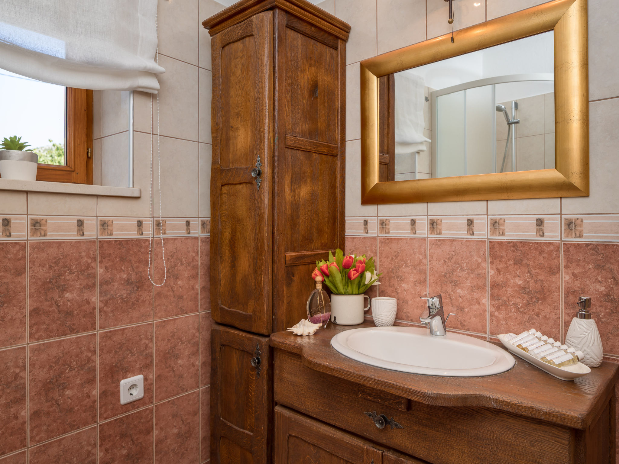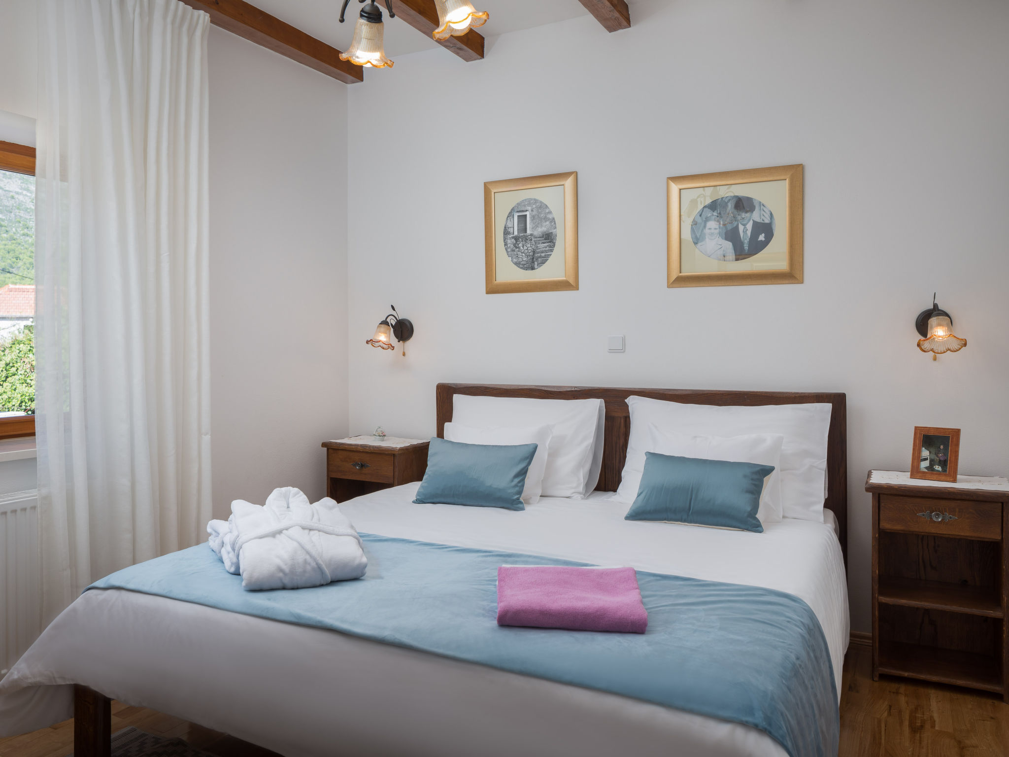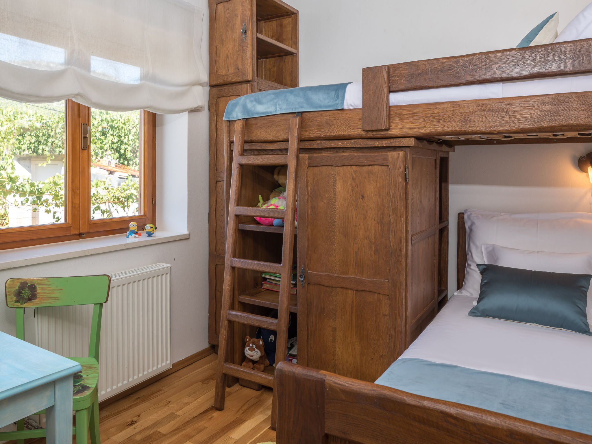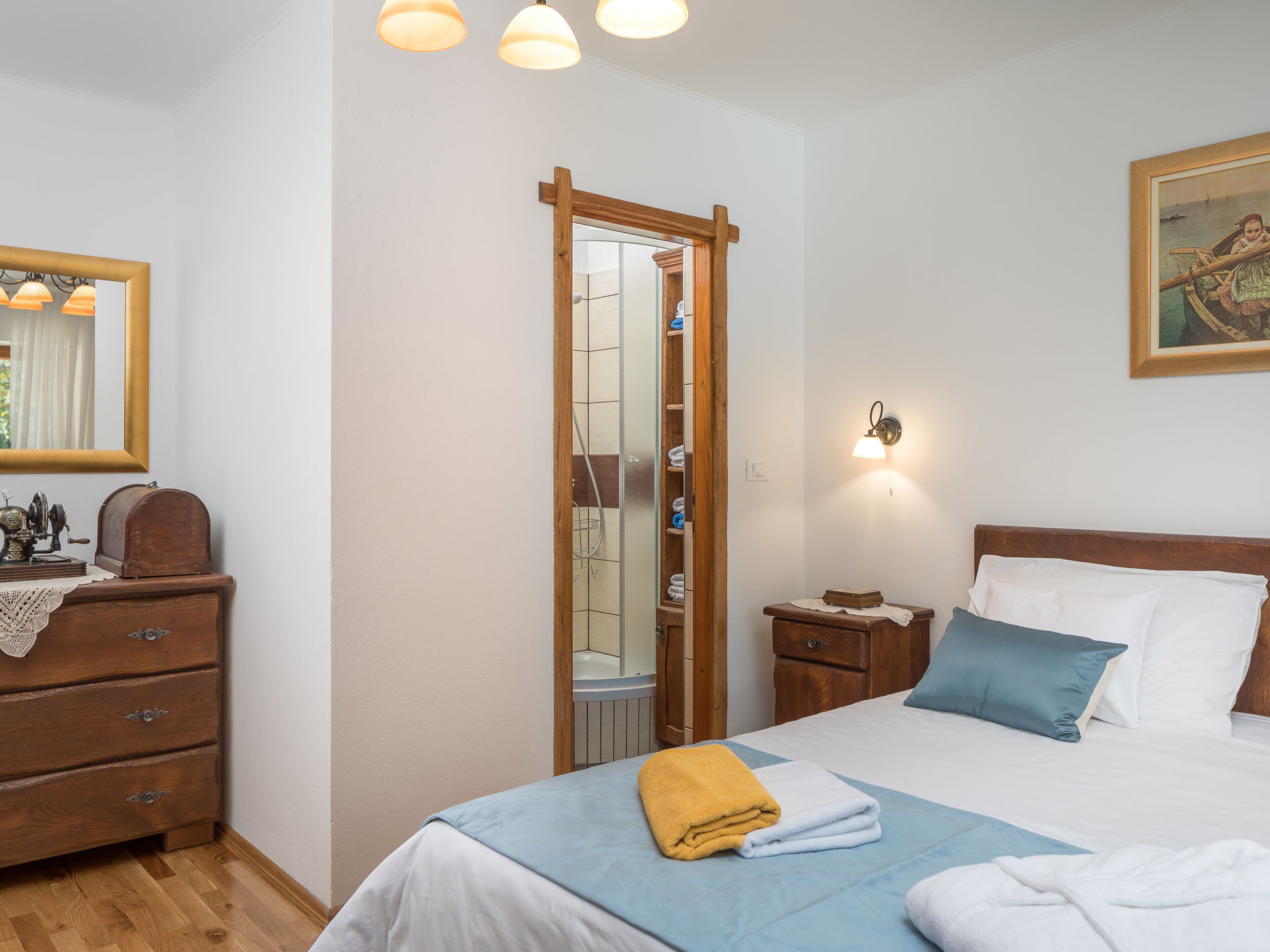 Kinderfreundliches Einfamilienhaus "Villa Dalmatica moderna". Im Weiler Žuvani, 13 km vom Zentrum von Trogir, 24 km vom Zentrum von Primošten, ruhige, sonnige Lage, 13 km vom Meer. Zur Alleinbenutzung: Grundstück 1'600 m2 (eingezäunt), gepflegter Garten, Schwimmbad (32 m2, 35 - 155 cm tief, 02.05.-26.09.) mit Innentreppe. Ungleichmässige Schwimmbadform, Dusche/WC im Poolbereich, Boccia, Terrasse (10 m2), Gartenmöbel, Grill, Kinderspielplatz (Rutschbahn, Schaukel, Sandkasten). Im Hause: Internetzugang, Sauna, Zentralheizung, Waschmaschine, Wäschetrockner. Parkplatz (für 3 Autos) beim Haus auf dem Grundstück. Einkaufsgeschäft 13 km, Restaurant 13 km, Kieselstrand 13 km, Strandbad 13 km. Schwimmbad mit Hydromassage und Wasserfall.