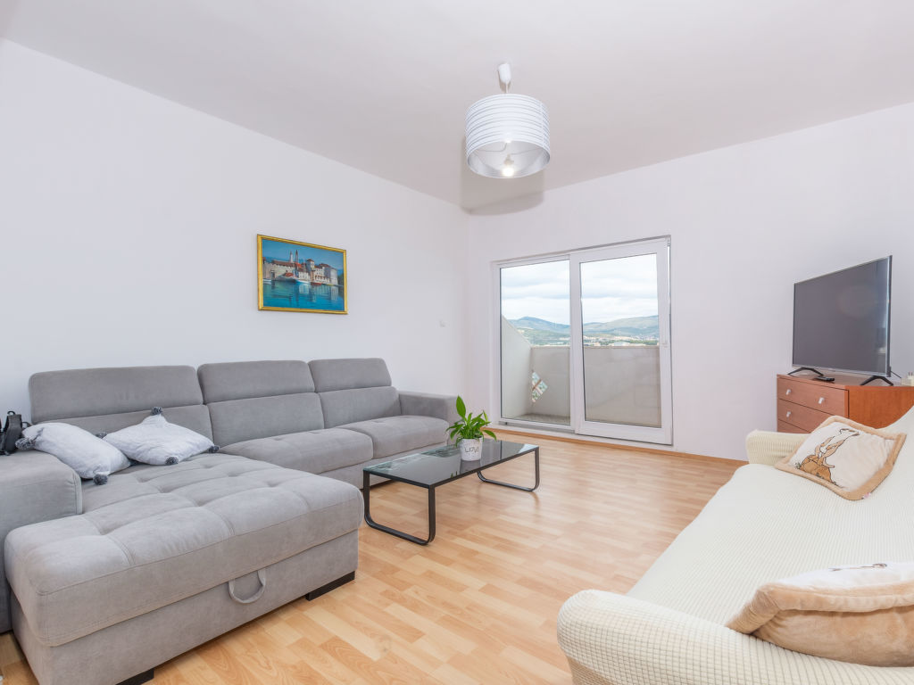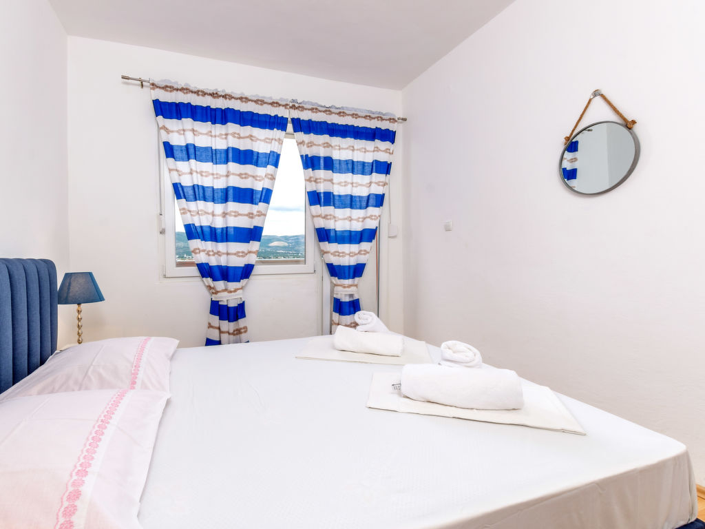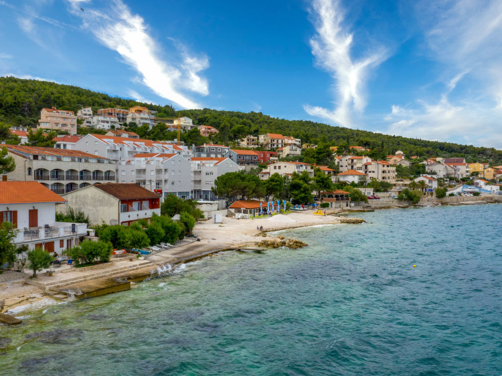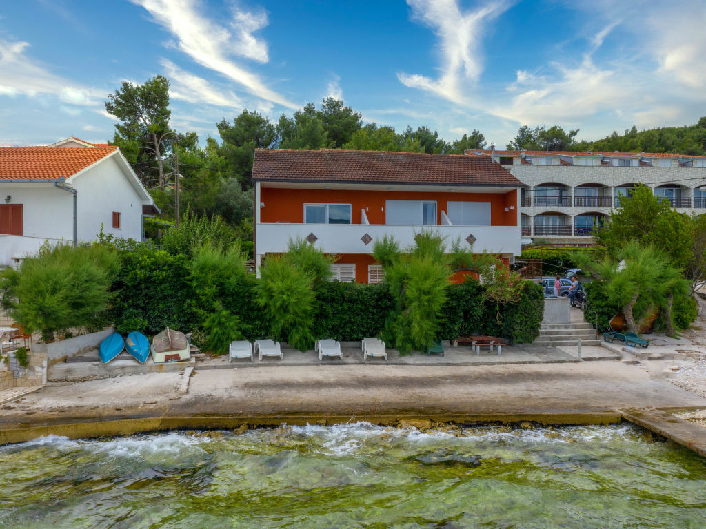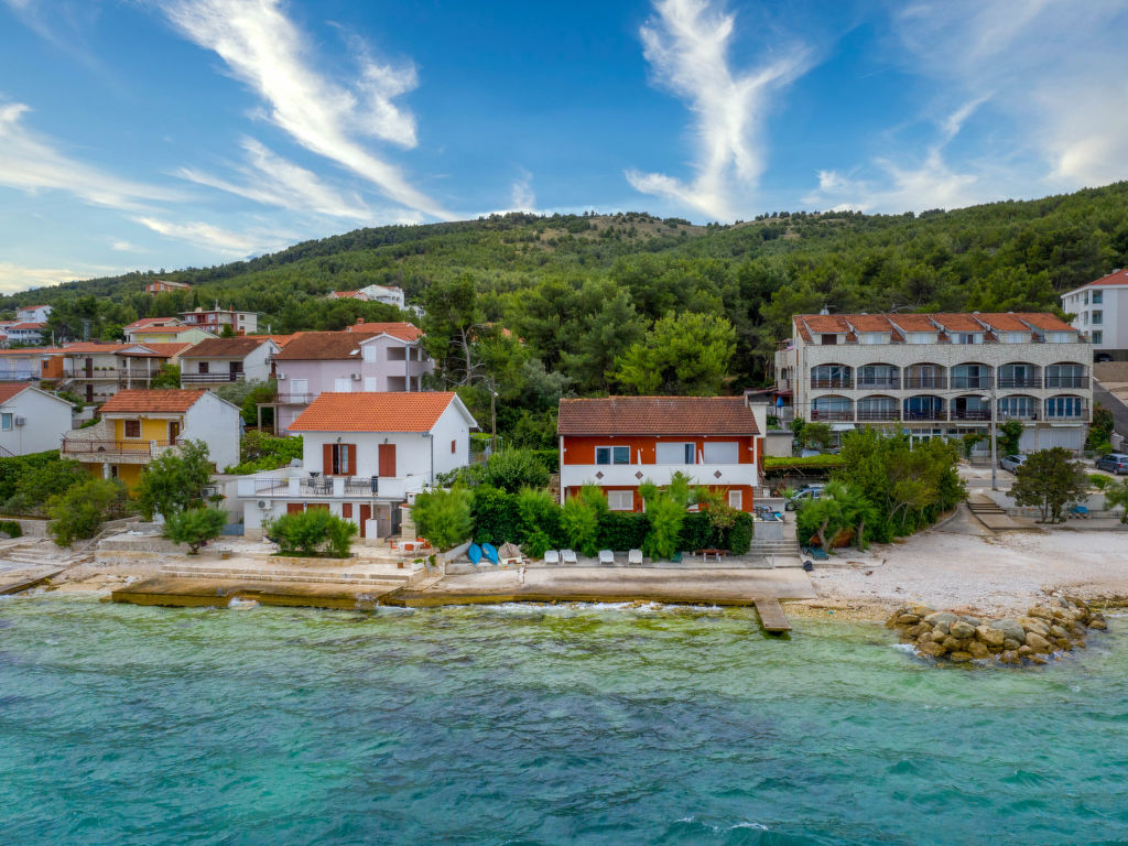 Arbanija (Čiovo) 4 km von Trogir: Zweifamilienhaus "Beach apartment". 100 m vom Zentrum von Arbanija, sonnige Lage, 10 m vom Meer, 10 m vom Strand. Zur Mitbenutzung: Grundstück 200 m2. Grill. Im Hause: Internetzugang. Parkplatz beim Haus auf dem Grundstück. Einkaufsgeschäft 100 m, Restaurant 700 m, Kieselstrand 10 m, Felsstrand 20 m. Golfplatz 35 km, Tennis 7 km. Bitte beachten: Flugplatz 10 km vom Haus.