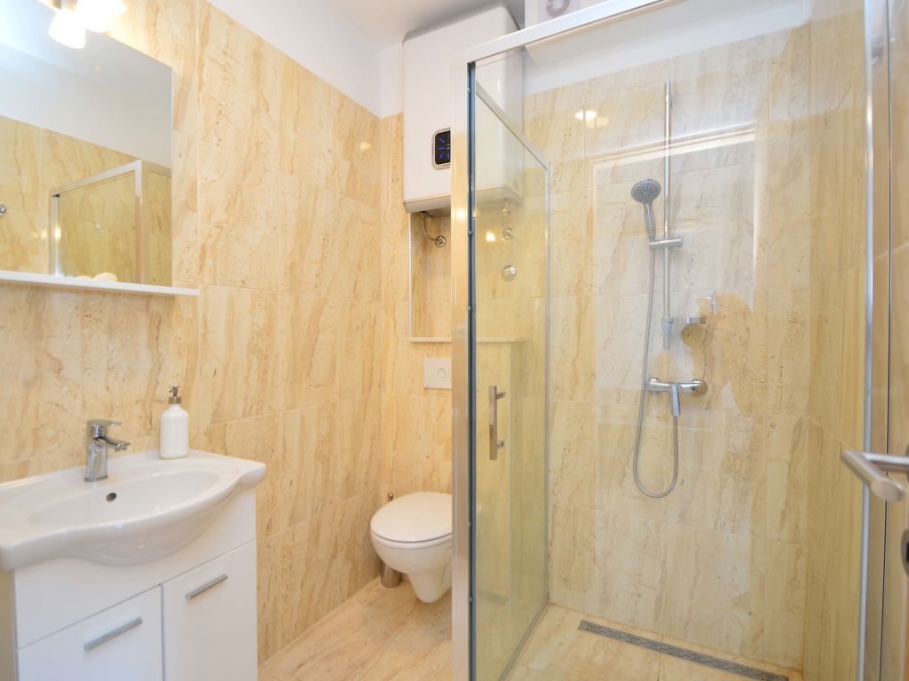 Okrug Gornji (Čiovo) 6 km von Trogir: Mehrfamilienhaus "Borka". 2 km vom Zentrum von Okrug Gornji, ruhige, sonnige Lage, 30 m vom Meer, 30 m vom Strand, in einer Sackgasse. Zur Mitbenutzung: Grundstück 250 m2 (eingezäunt). Terrasse (50 m2), Gartenmöbel, Grill. Im Hause: Internetzugang. Parkplatz beim Haus auf dem Grundstück. Einkaufsgeschäft 850 m, Restaurant 1 km, Felsstrand 30 m. Golfplatz 35 km, Tennis 2.5 km. Bitte beachten: Flugplatz 10 km vom Haus.