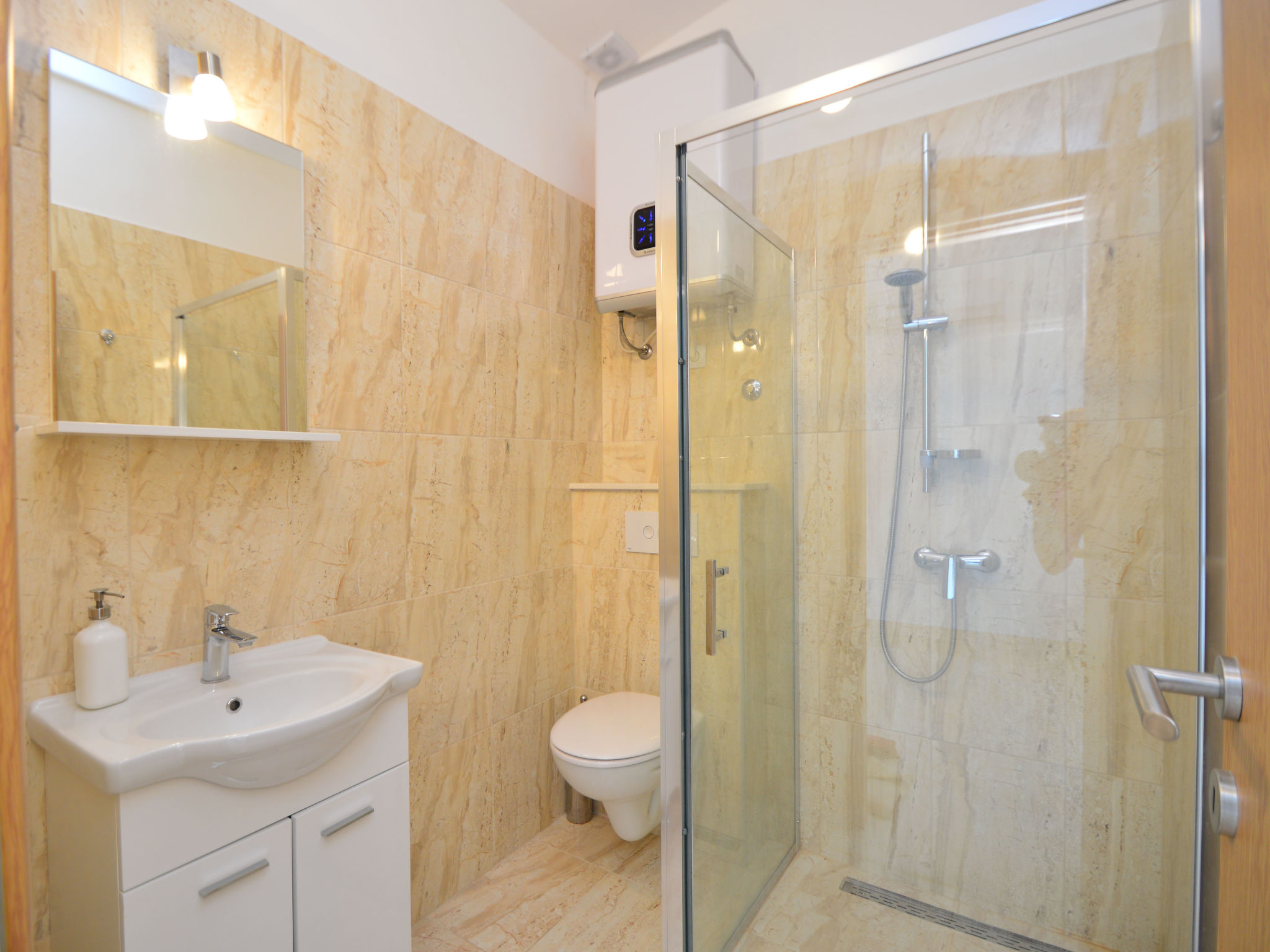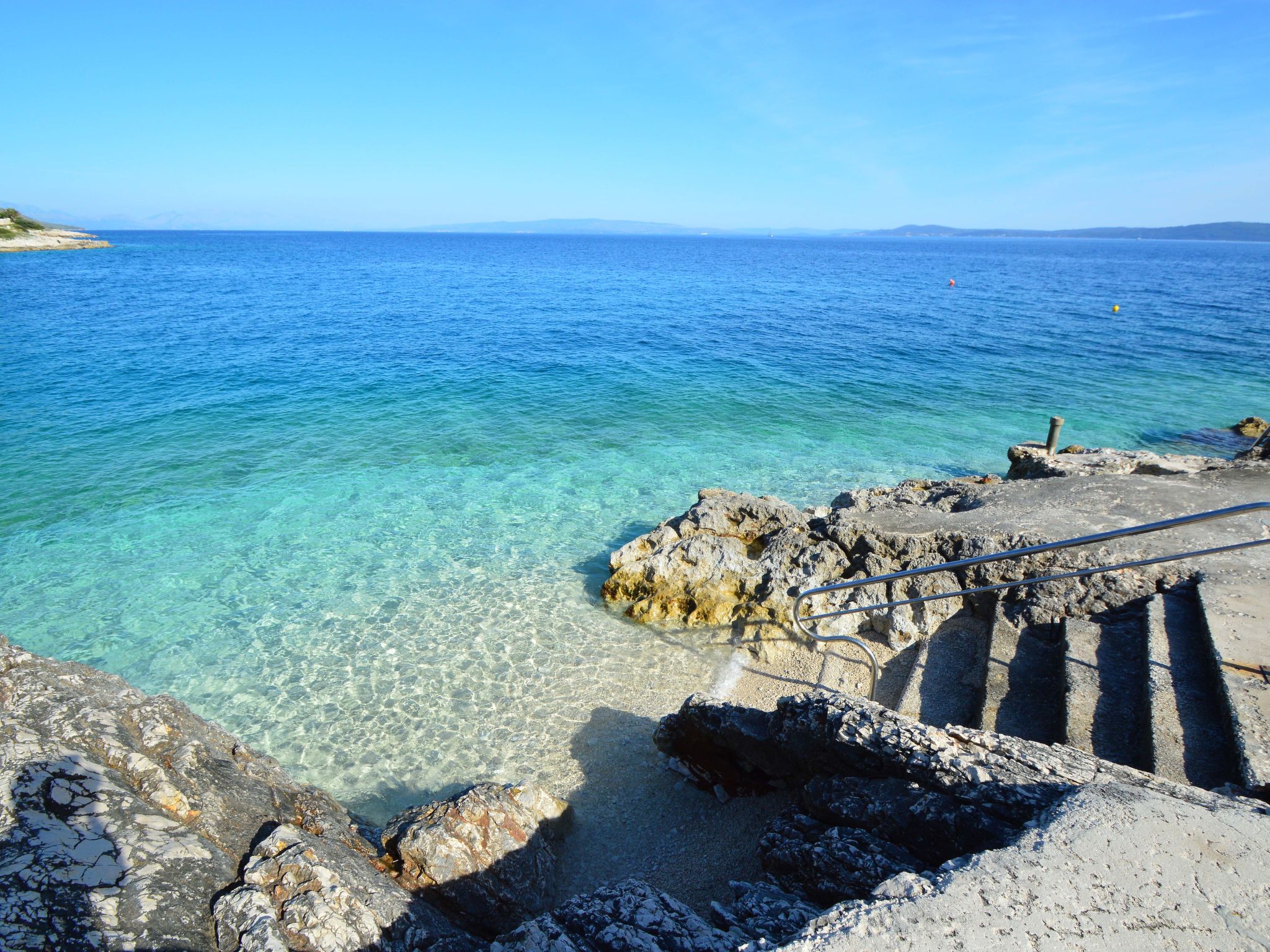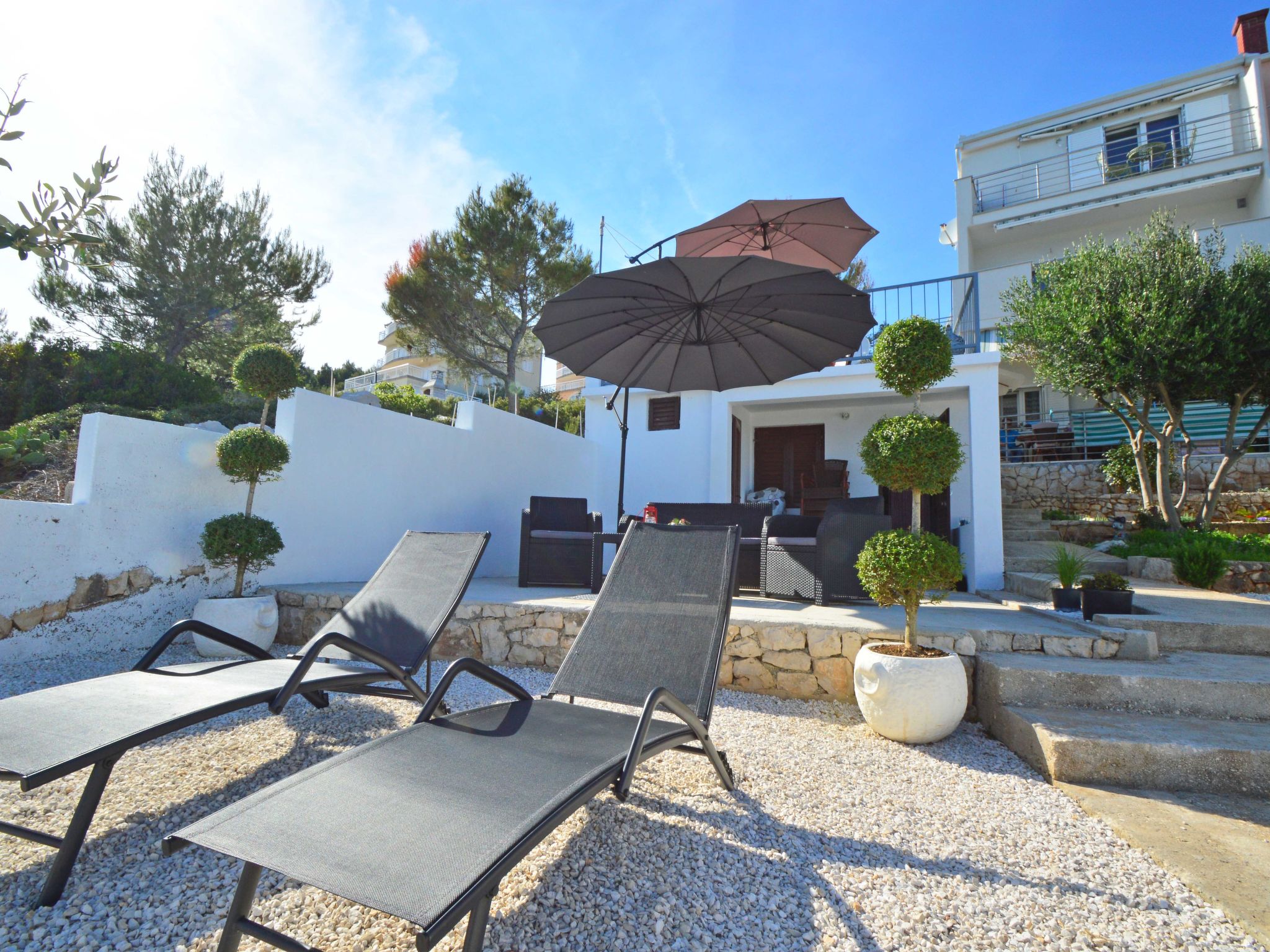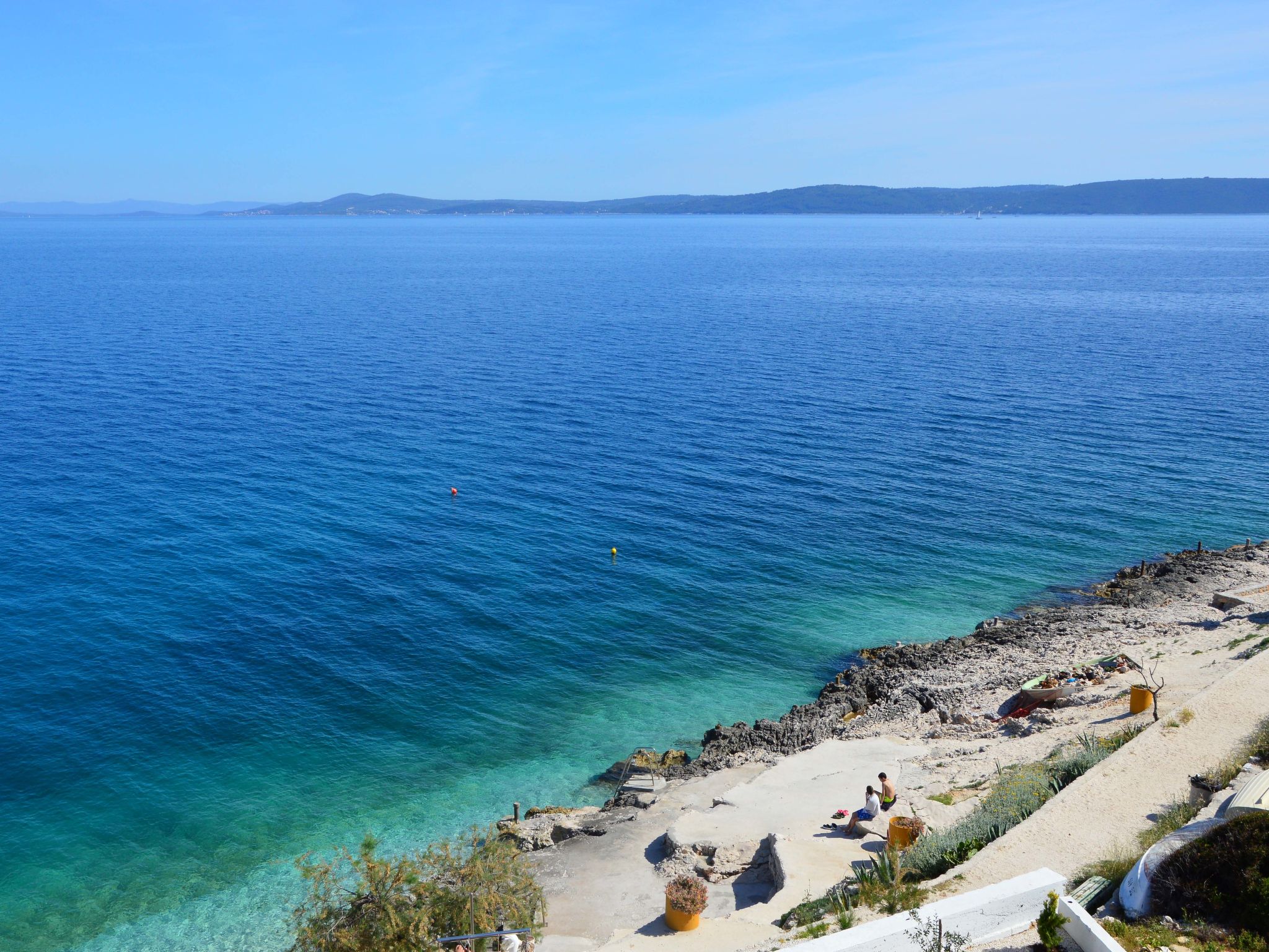 Okrug Gornji (Čiovo) 6 km von Trogir: Mehrfamilienhaus "Borka". 2 km vom Zentrum von Okrug Gornji, ruhige, sonnige Lage, 30 m vom Meer, 30 m vom Strand, in einer Sackgasse. Zur Mitbenutzung: Grundstück 250 m2 (eingezäunt). Terrasse (50 m2), Gartenmöbel, Grill. Im Hause: Internetzugang. Parkplatz beim Haus auf dem Grundstück. Einkaufsgeschäft 850 m, Restaurant 1 km, Felsstrand 30 m. Golfplatz 35 km, Tennis 2.5 km. Bitte beachten: Flugplatz 10 km vom Haus.