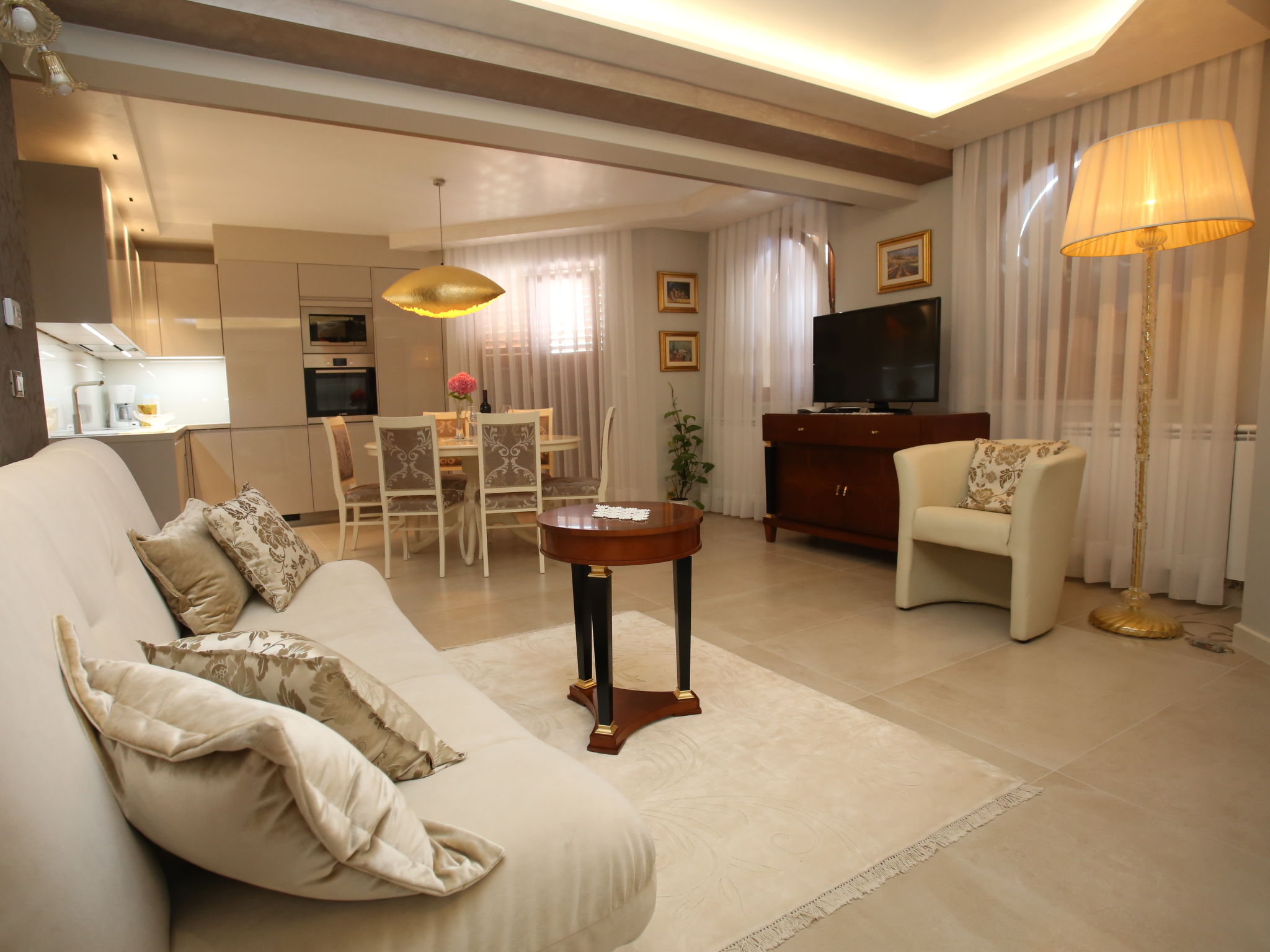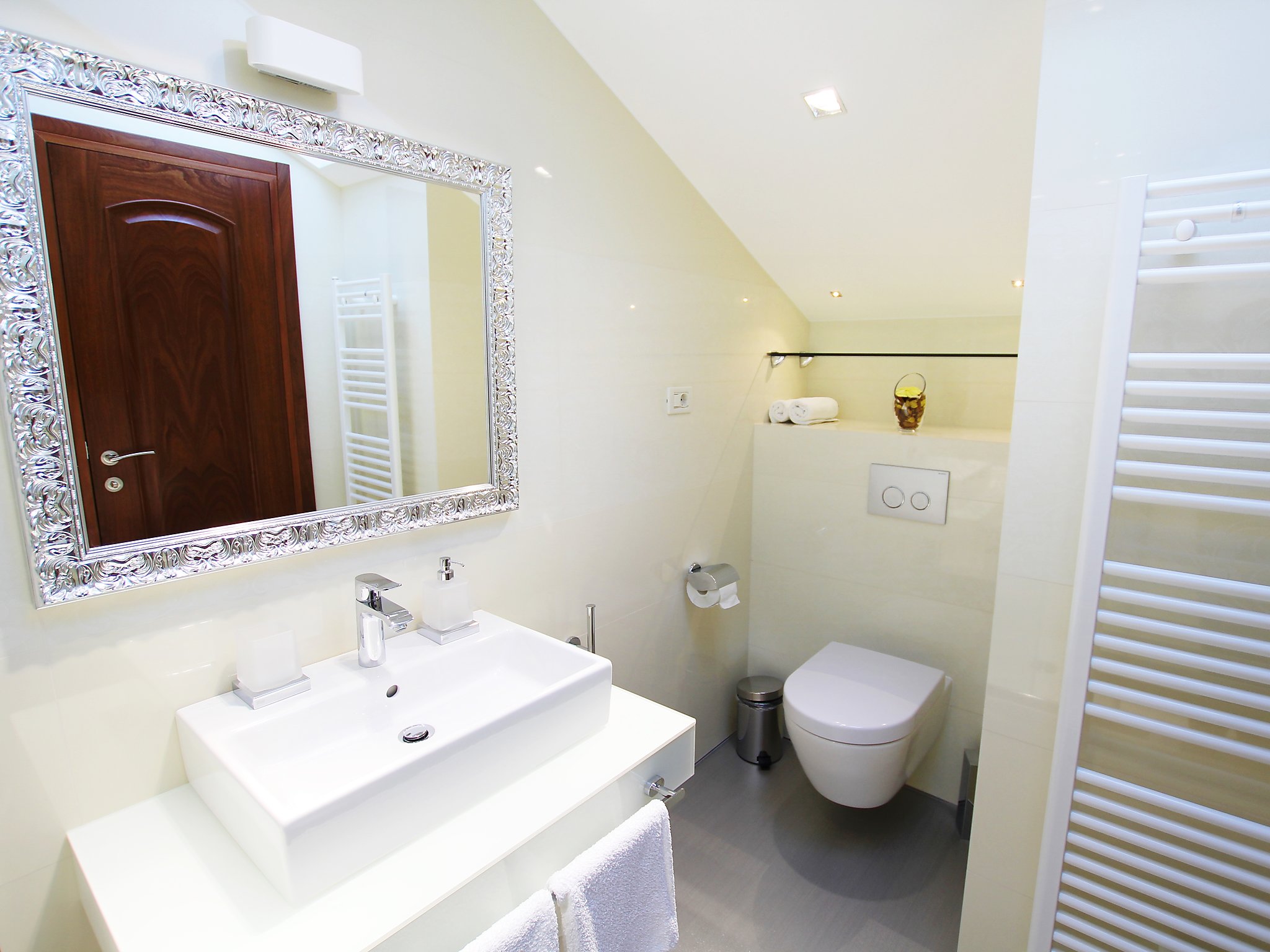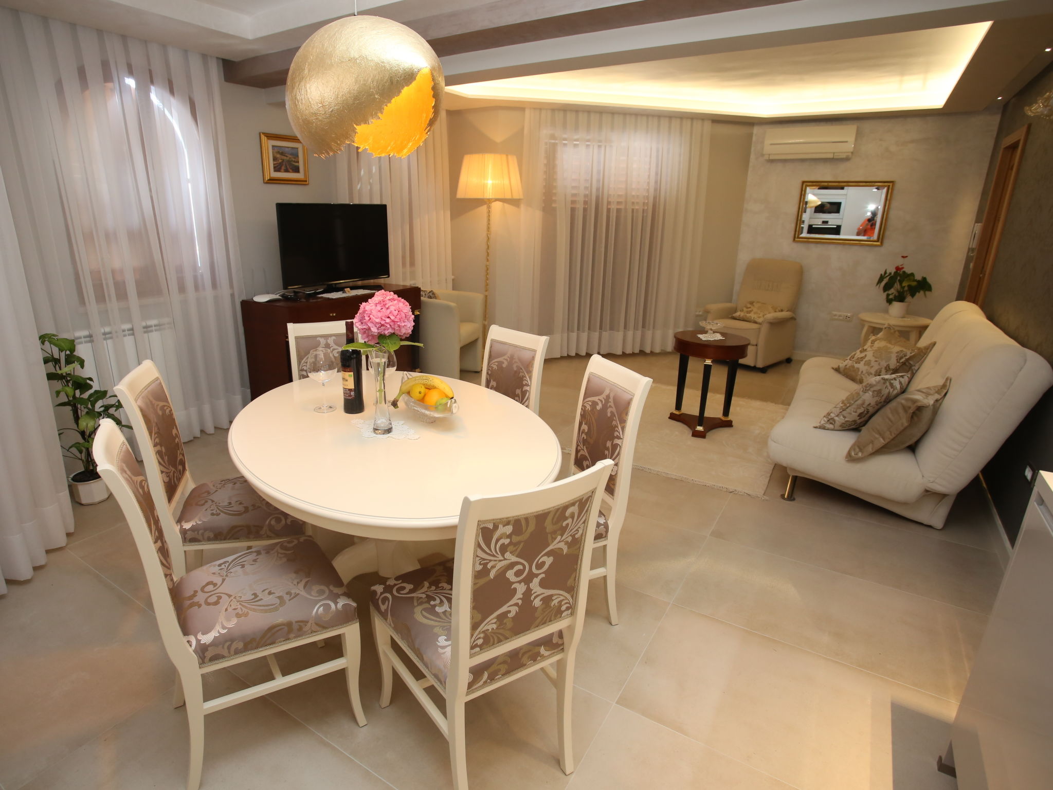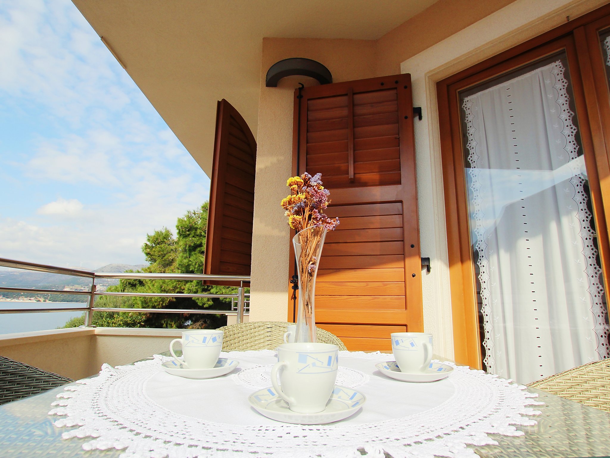7-Zimmer-Haus 400 m2 auf 4 Stockwerken, Südwestlage. Wohn-/Esszimmer 50 m2 mit Sat-TV (Flachbildschirm), Klimaanlage. Ausgang zum Balkon. 1 Zimmer mit 1 franz. Bett (160 cm, Länge 200 cm), Dusche/WC und Sat-TV (Flachbildschirm), Klimaanlage. 1 Zimmer mit 1 Doppelbett (2 x 90 cm, Länge 200 cm), Bad/Bidet/WC und Sat-TV (Flachbildschirm), Klimaanlage. Offene Küche (Backofen, Geschirrspüler, 4 Glaskeramikherd Platten, Mikrowelle, Tiefkühler, elektrische Kaffeemaschine). 2. Obergeschoss: Wohn-/Esszimmer 50 m2 mit offenem Kamin und Sat-TV (Flachbildschirm), Klimaanlage. Ausgang zum Balkon, zur Terrasse. Küche (Backofen, Geschirrspüler, 4 Glaskeramikherd Platten, Mikrowelle, Tiefkühler, elektrische Kaffeemaschine). Dusche/WC. Dachgeschoss: 1 abgeschrägtes Zimmer, Deckenhöhe 145 - 290 cm mit Dachfenster mit 1 Doppelbett (2 x 90 cm, Länge 200 cm), Dusche/WC und TV (Flachbildschirm), Klimaanlage. 1 abgeschrägtes Zimmer, Deckenhöhe 145 - 290 cm mit Dachfenster mit 1 Doppelbett (2 x 90 cm, Länge 210 cm), Bad/Bidet/WC und Klimaanlage. Ausgang zur Terrasse. 1 abgeschrägtes Zimmer 20 m2, Deckenhöhe 145 - 290 cm mit Dachfenster mit 1 Doppelbett (2 x 90 cm, Länge 200 cm), Bad/Bidet/WC, mit Eckbadewanne und Klimaanlage. Ausgang zur Terrasse. 2 Balkone 7 m2, 2 Balkone 3 m2, Terrasse 20 m2 teilweise überdacht, Terrasse 15 m2 teilweise überdacht. Terrassenmöbel, Liegestühle. Herrliche Sicht auf das Meer. Zur Verfügung: Safe, Babybett. Internet (Wireless LAN, gratis). Im Erdgeschoss: Billardzimmer, TV (Flachbildschirm), sep. WC. Eine Ferienwohnung im 1. Stock mit Wohn-/Essbereich, offener Küche und 2 Schlafzimmern. Eine Ferienwohnung auf 2 Ebenen mit separatem Eingang, Wohn-/Essbereich und Küche im zweiten Stock und 3 Schlafzimmer in der obersten Etage.