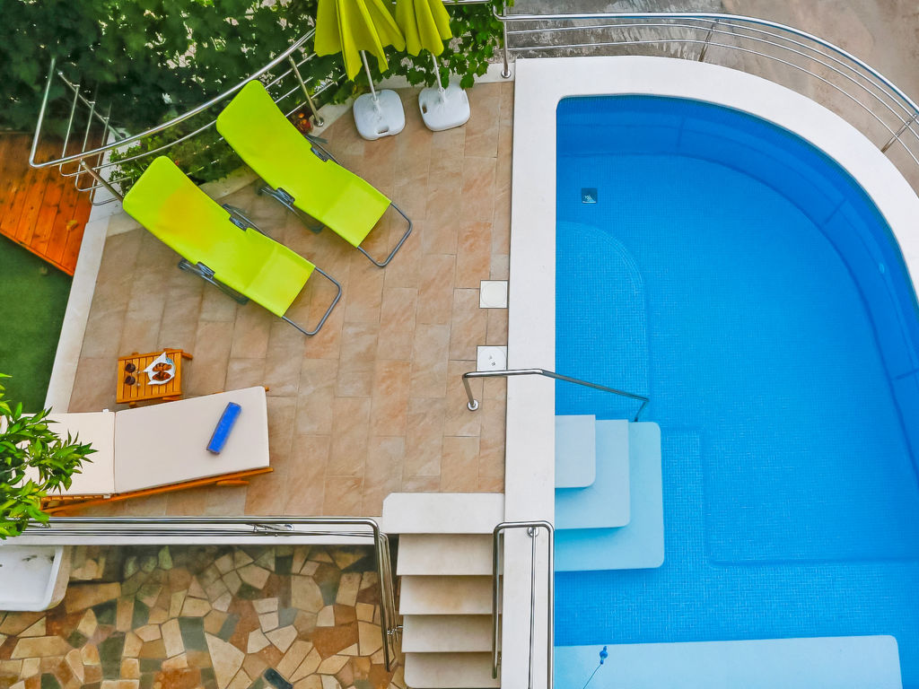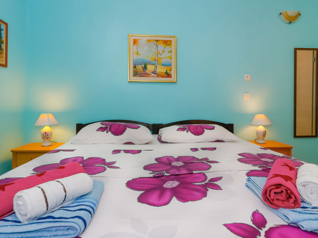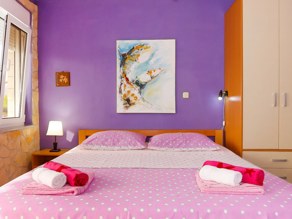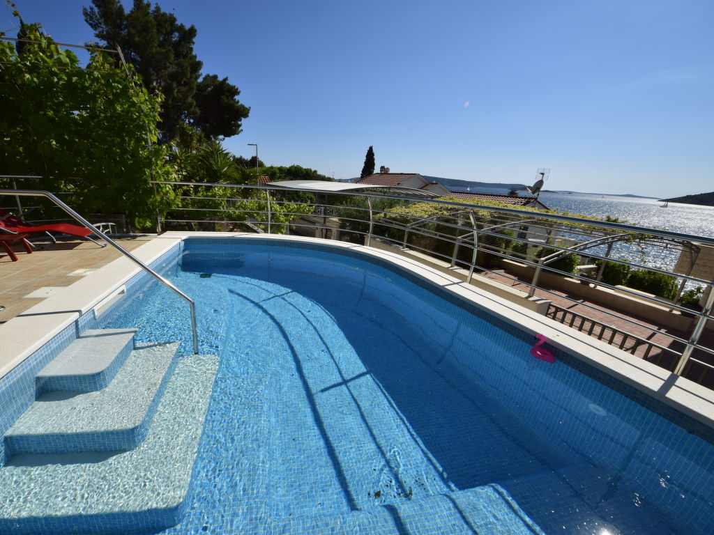 Okrug Donji 8 km von Trogir: Einfamilienhaus "Anita", auf 2 Stockwerken. Ruhige, sonnige Lage, 50 m vom Meer, 50 m vom Strand. Zur Alleinbenutzung: Grundstück 370 m2 (eingezäunt), Schwimmbad (18 m2, 150 cm tief, 01.05.-15.10.) mit Innentreppe. Ungleichmässige Schwimmbadform, Aussendusche, Terrasse (20 m2), Gartenmöbel, Grill. Im Hause: Internetzugang, Billard, Tischfussball, Waschmaschine. Parkplatz (für 2 Autos) beim Haus auf dem Grundstück, Einzelgarage. Einkaufsgeschäft 1 km, Restaurant 5 km, Kieselstrand 700 m, Felsstrand 50 m. Bitte beachten: Flugplatz 14 km vom Haus. Das Haus besteht aus 2 Ferienwohnungen, die als ein Objekt vermietet werden. Die zweite Etage ist geschlossen und nicht belegt. Schwimmbad mit Hydromassage.