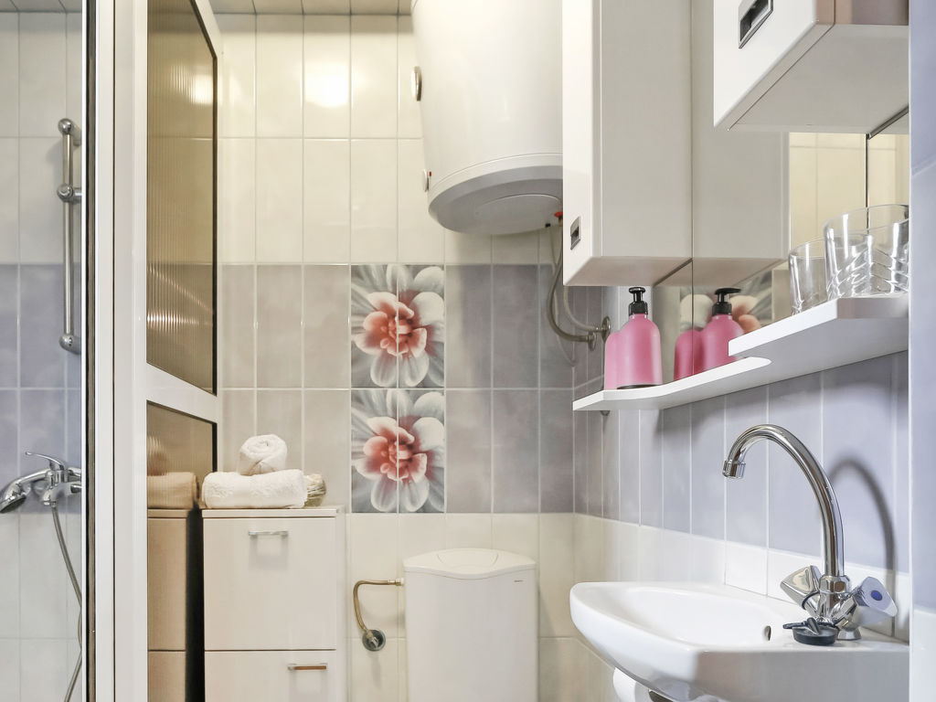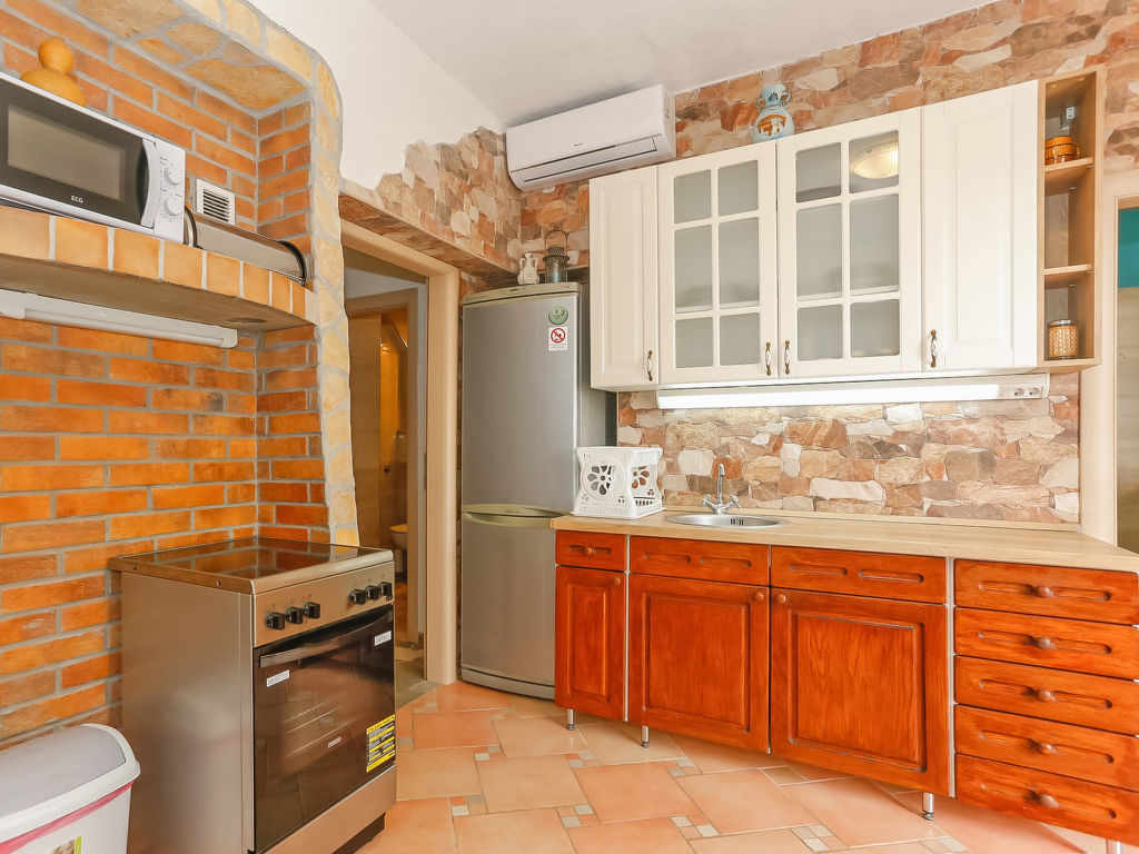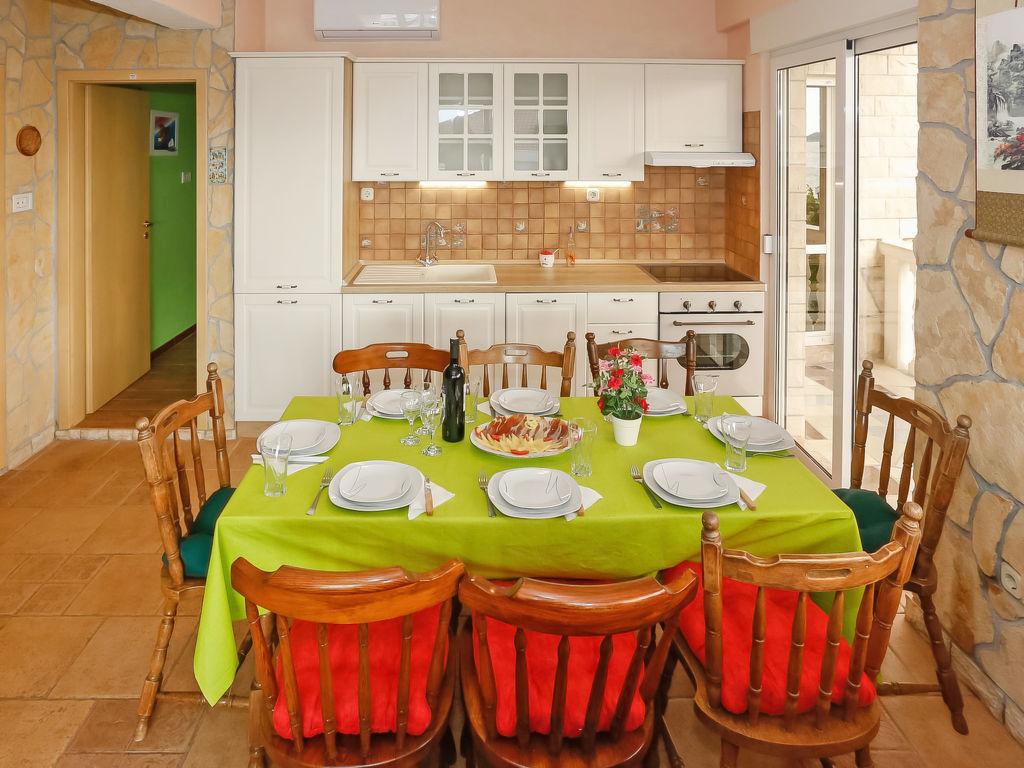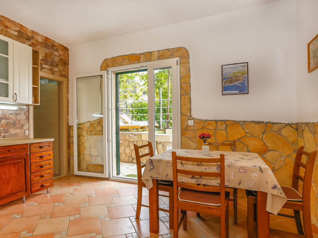 Okrug Donji 8 km von Trogir: Einfamilienhaus "Anita", auf 2 Stockwerken. Ruhige, sonnige Lage, 50 m vom Meer, 50 m vom Strand. Zur Alleinbenutzung: Grundstück 370 m2 (eingezäunt), Schwimmbad (18 m2, 150 cm tief, 01.05.-15.10.) mit Innentreppe. Ungleichmässige Schwimmbadform, Aussendusche, Terrasse (20 m2), Gartenmöbel, Grill. Im Hause: Internetzugang, Billard, Tischfussball, Waschmaschine. Parkplatz (für 2 Autos) beim Haus auf dem Grundstück, Einzelgarage. Einkaufsgeschäft 1 km, Restaurant 5 km, Kieselstrand 700 m, Felsstrand 50 m. Bitte beachten: Flugplatz 14 km vom Haus. Das Haus besteht aus 2 Ferienwohnungen, die als ein Objekt vermietet werden. Die zweite Etage ist geschlossen und nicht belegt. Schwimmbad mit Hydromassage.
