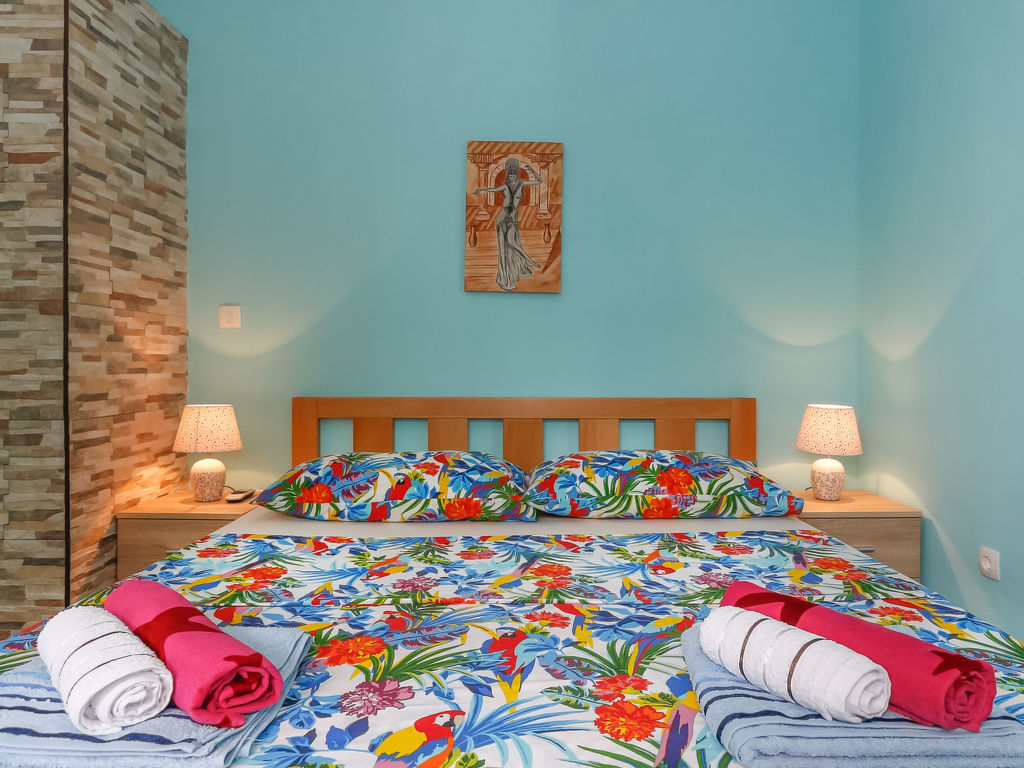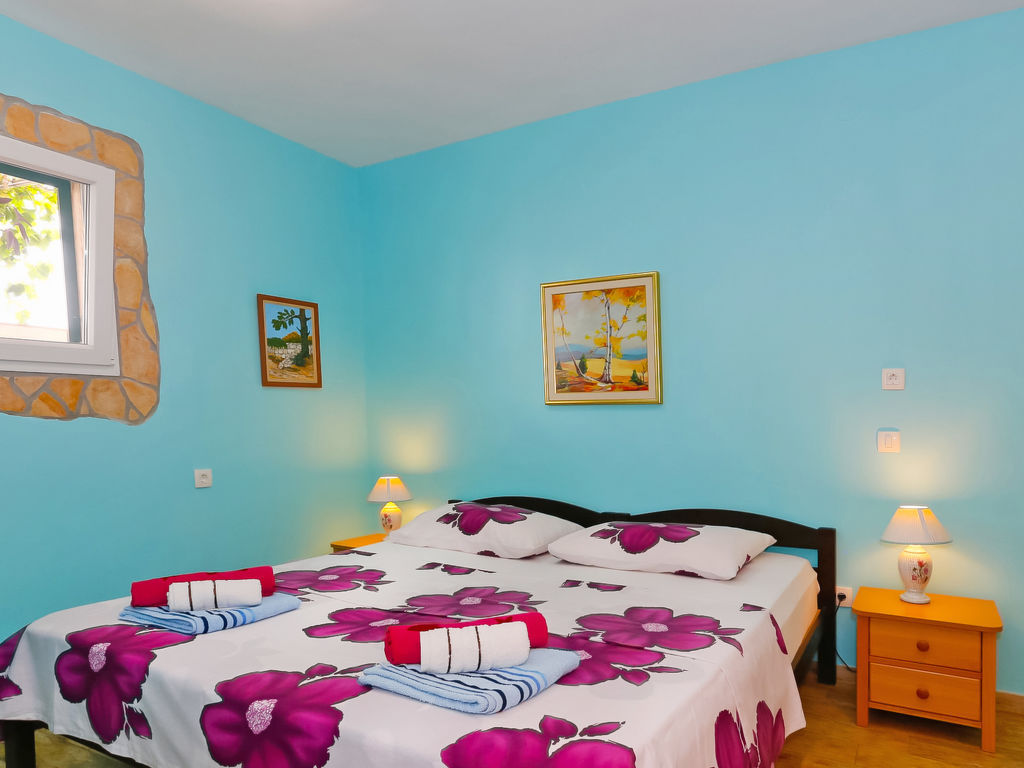 5-Zimmer-Haus 190 m2 auf 2 Stockwerken, Südlage. 1 Zimmer mit 1 Doppelbett (2 x 80 cm, Länge 200 cm). 1 Zimmer mit 1 franz. Bett (160 cm, Länge 200 cm), Klimaanlage. Esszimmer mit Sat-TV (Flachbildschirm), Klimaanlage. Ausgang zur Terrasse. Offene Küche (Backofen, 4 Glaskeramikherd Platten, Mikrowelle, Tiefkühler). Dusche/WC. Obergeschoss: Wohn-/Esszimmer 20 m2 mit Sat-TV (Flachbildschirm), Klimaanlage. Ausgang zur Terrasse. 1 Zimmer mit 1 franz. Bett (180 cm, Länge 200 cm), Esstisch, Küchenblock, Dusche/WC und Klimaanlage. Ausgang zur Terrasse. 1 Zimmer mit 1 franz. Bett (180 cm, Länge 200 cm), Dusche/WC und Klimaanlage. Offene Küche (4 Glaskeramikherd Platten, Tiefkühler). Dusche/WC. Terrasse 15 m2, überdacht, Terrasse 30 m2, überdacht. Terrassenmöbel, Liegestühle. Schöne Sicht auf das Meer. Zur Verfügung: Waschmaschine, Haartrockner. Internet (Wireless LAN, gratis). 1 Haustier/Hund erlaubt. Ferienwohnung im Erdgeschoss: Esszimmer, offene Küche, 2 Schlafzimmer. Ferienwohnung im ersten Stock: Wohn-/Essbereich, offene Küche, 2 Schlafzimmer.
