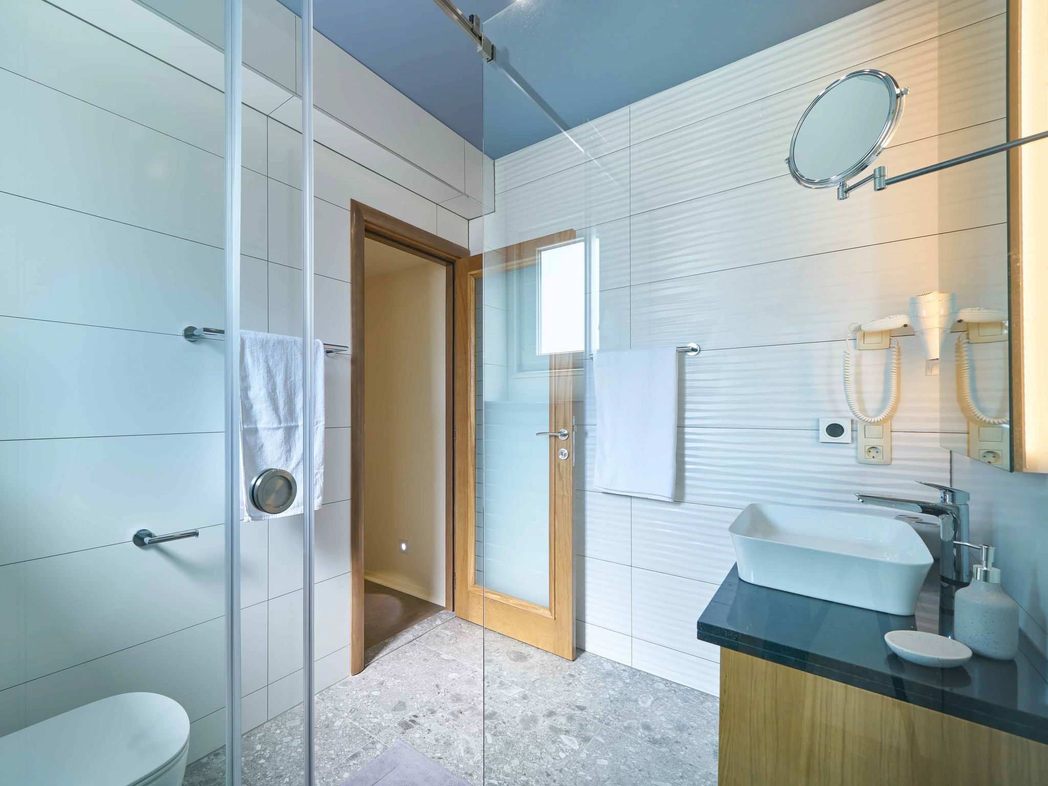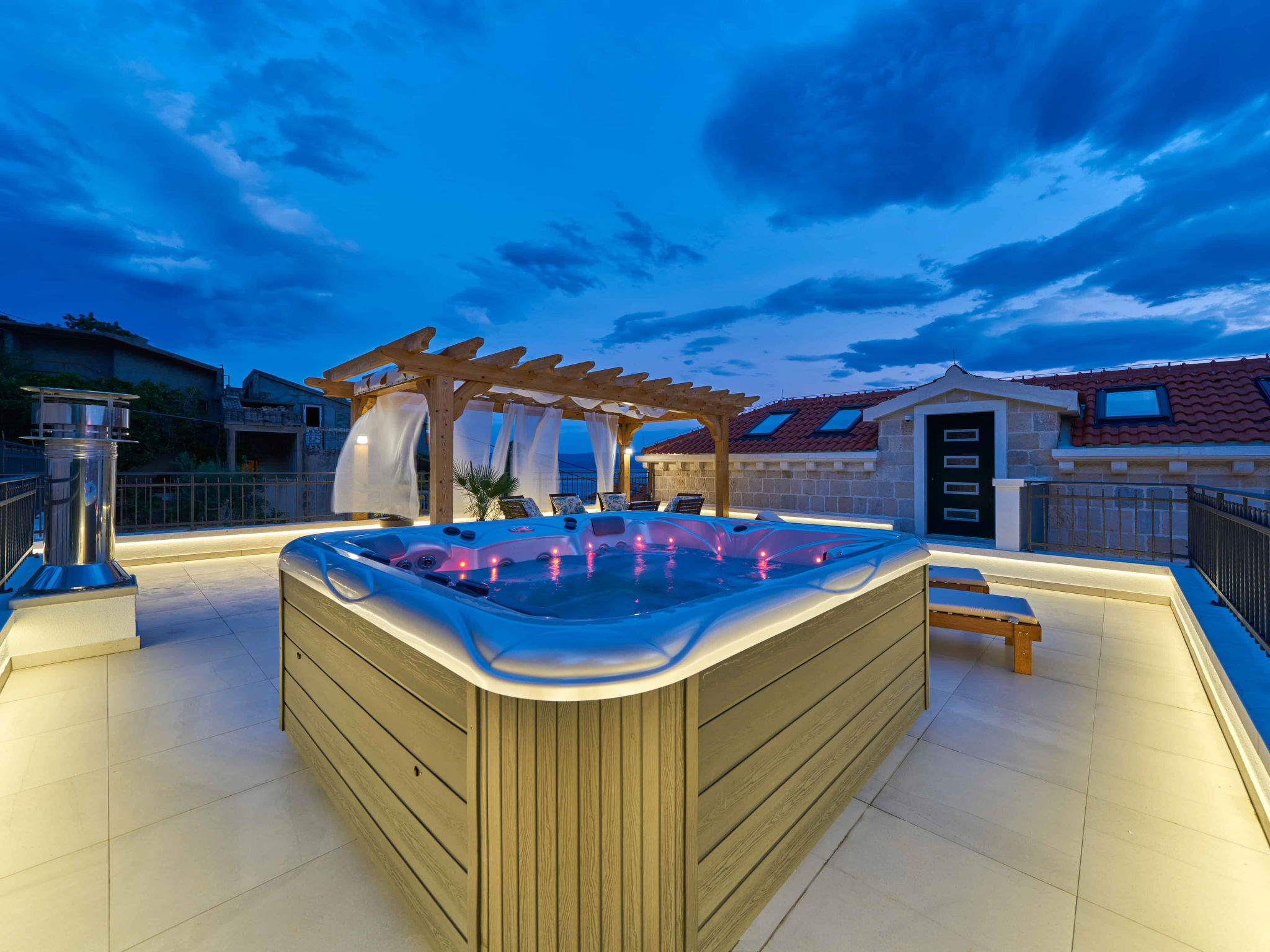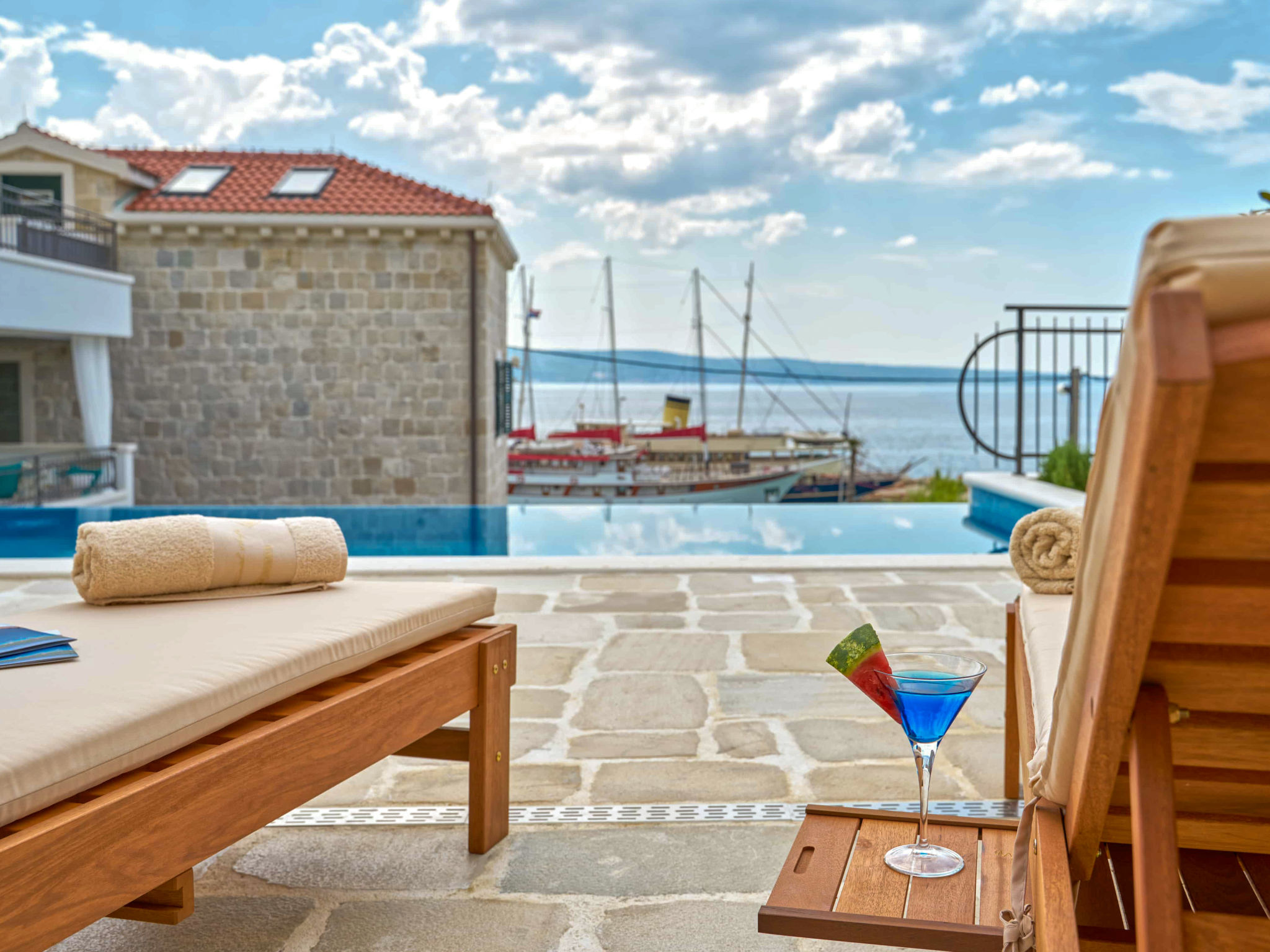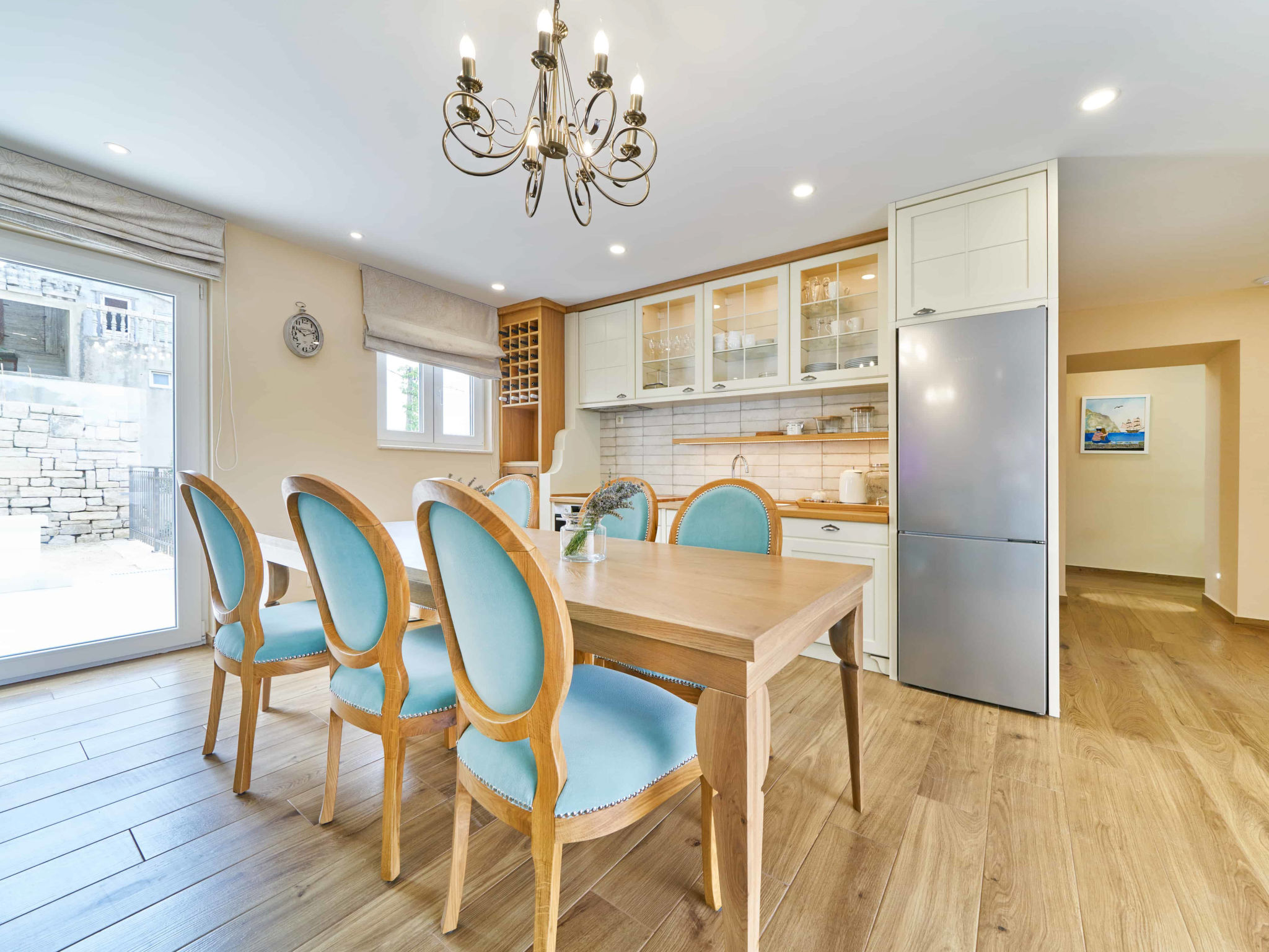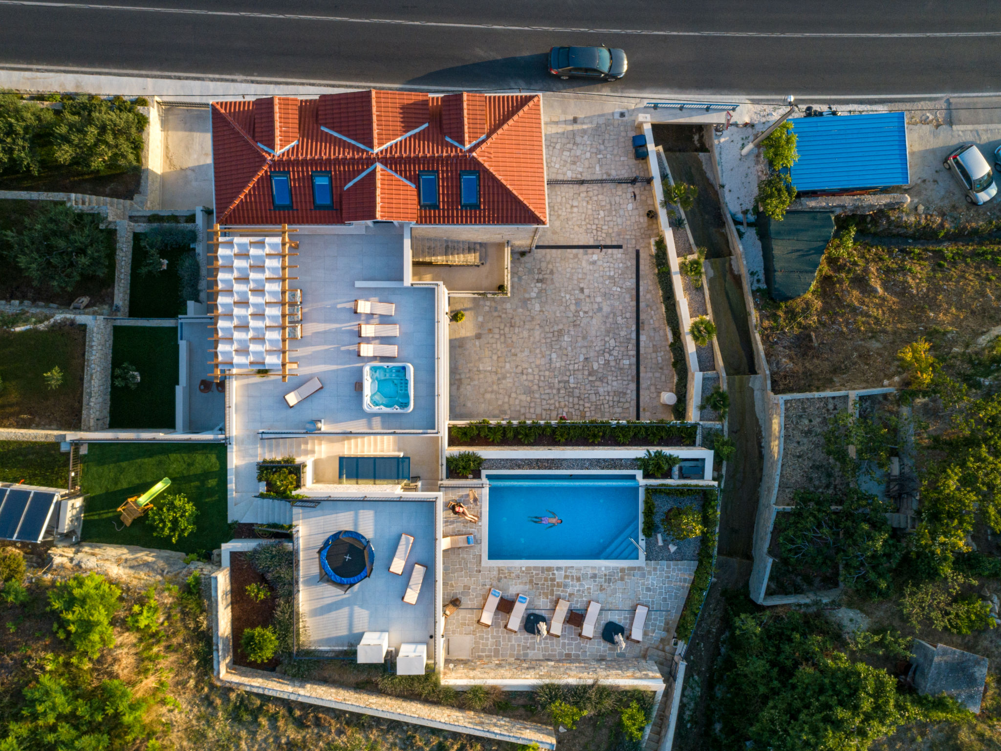 8-Zimmer-Villa 280 m2 auf 2 Stockwerken. Geräumig, schön eingerichtet: Wohn-/Esszimmer mit offenem Kamin und Sat-TV (Flachbildschirm), Klimaanlage. Ausgang zur Terrasse. 2 Zimmer, jedes Zimmer mit 1 franz. Bett (180 cm, Länge 200 cm), Dusche/WC und Sat-TV (Flachbildschirm). 1 Zimmer mit 2 Betten (90 cm, Länge 200 cm), Dusche/WC und Sat-TV (Flachbildschirm). Offene Küche (Backofen, Geschirrspüler, 4 Glaskeramikherd Platten, Toaster, Wasserkocher, Mikrowelle, Tiefkühler, elektrische Kaffeemaschine). Sep. WC. Obergeschoss: Wohn-/Esszimmer mit offenem Kamin und Sat-TV (Flachbildschirm). Ausgang zur Terrasse, zum Schwimmbad. 2 Zimmer, jedes Zimmer mit 1 franz. Bett (180 cm, Länge 200 cm), Dusche/WC und Sat-TV (Flachbildschirm). 1 Zimmer mit 2 Betten (90 cm, Länge 200 cm), Dusche/WC und Sat-TV (Flachbildschirm). Offene Küche (Backofen, Geschirrspüler, 4 Glaskeramikherd Platten, Toaster, Wasserkocher, Mikrowelle, Tiefkühler, elektrische Kaffeemaschine). Sep. WC. Bodenheizung. Balkon 10 m2, 2 Terrassen 20 m2, überdacht. Terrassenmöbel, Liegestühle. Schöne Sicht auf das Meer. Zur Verfügung: Safe, Bügeleisen, Kinderhochstuhl, Babybett, Haartrockner. Internet (Wireless LAN, gratis). Bitte beachten: Rauchmelder, Feuerlöscher.