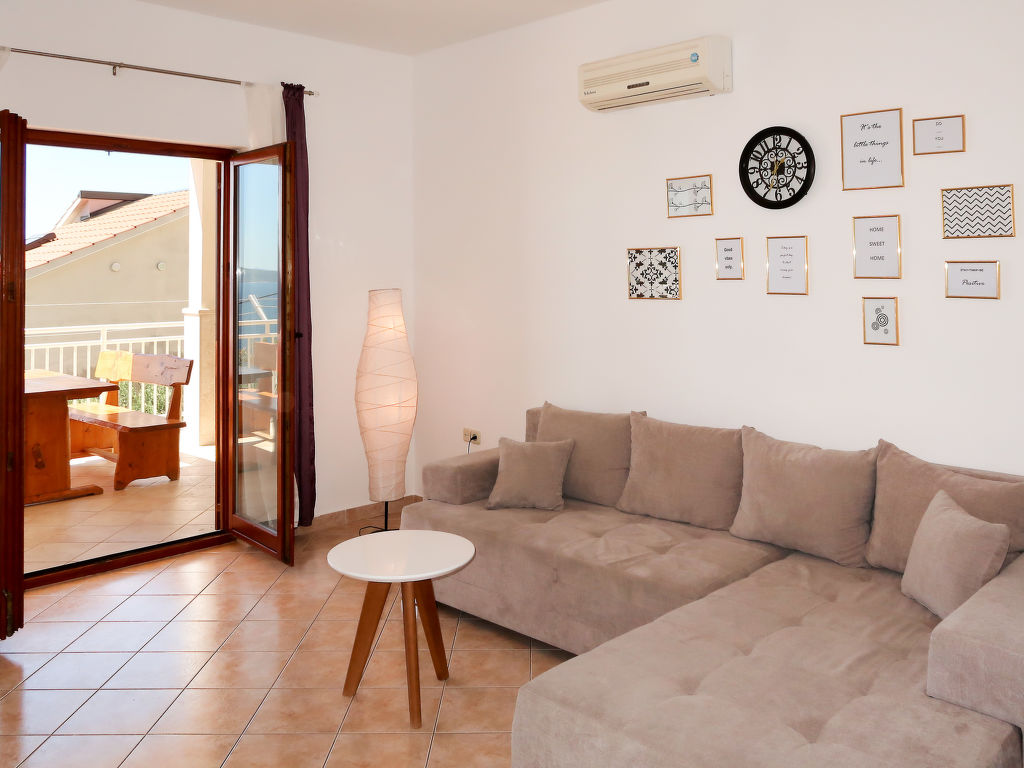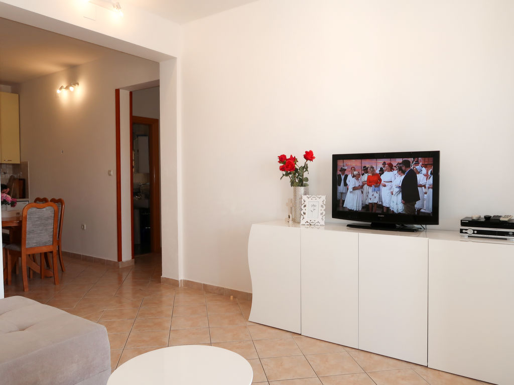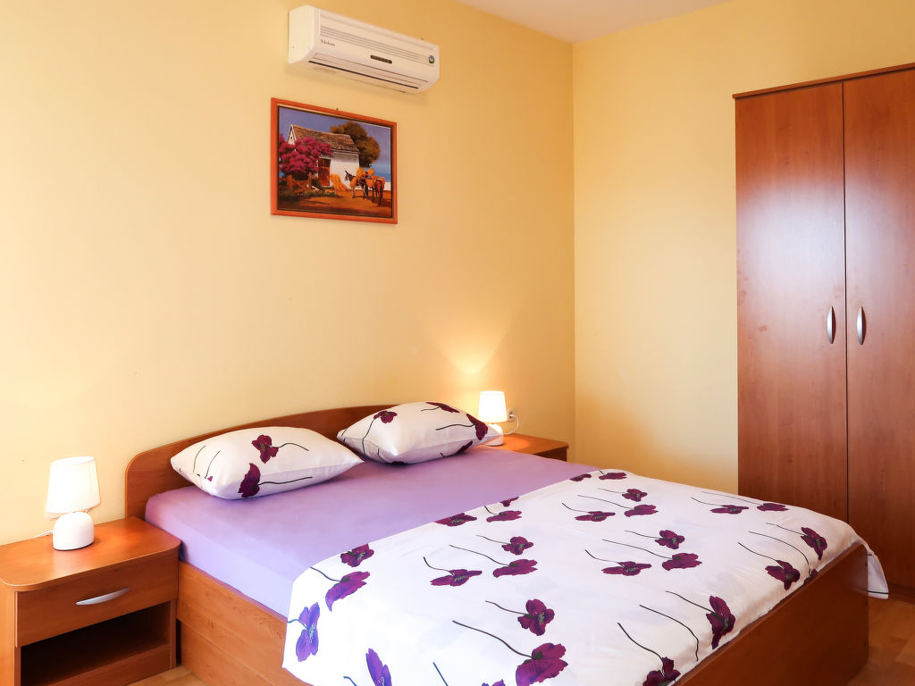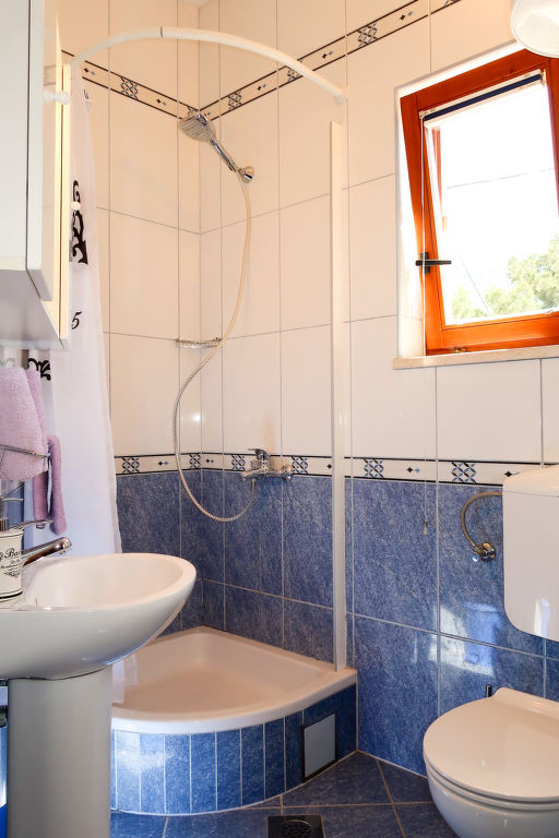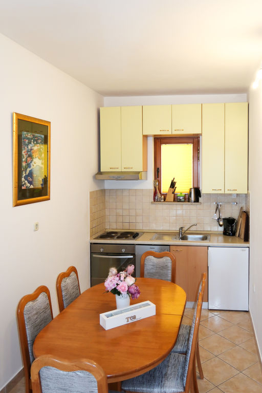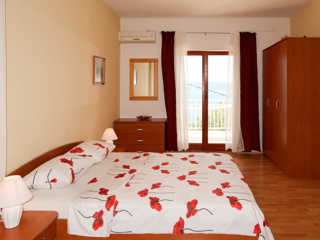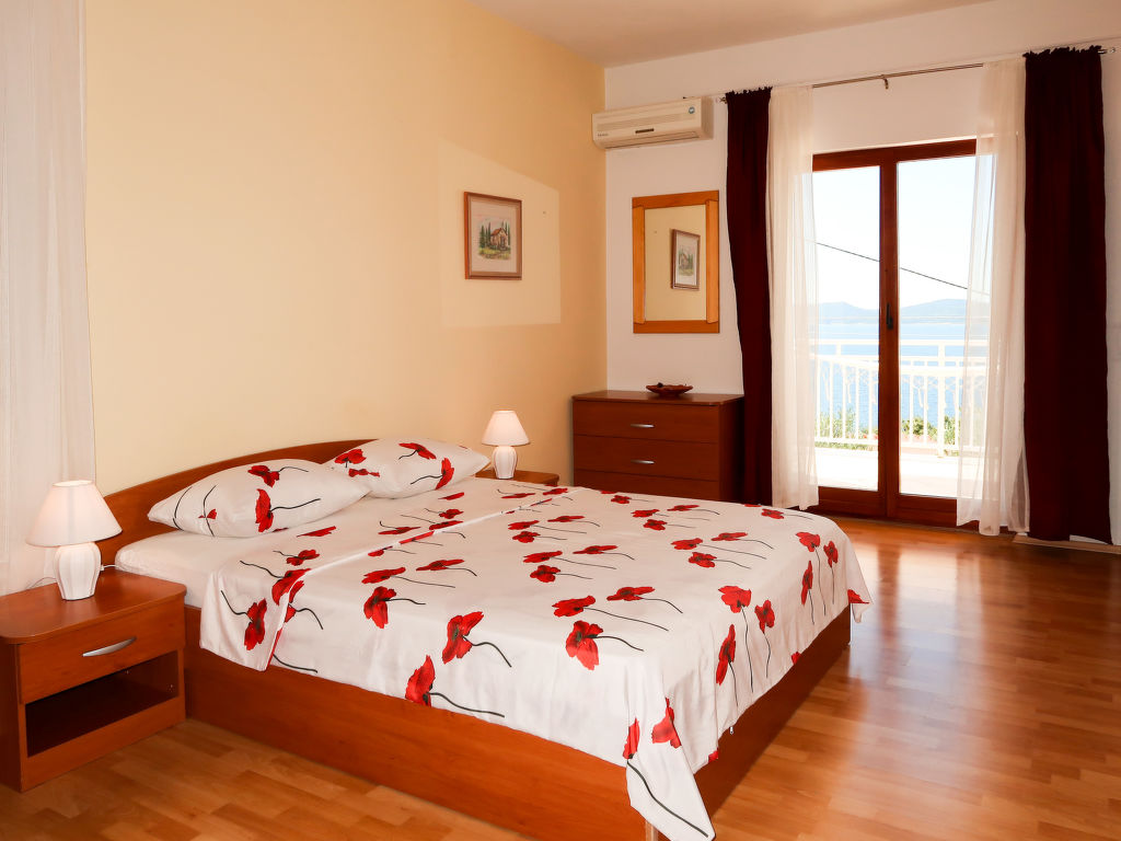 "Ružica (OMI210)", 3-Zimmer-Wohnung 90 m2 im 1. Stock. Objekt geeignet für 4 Erwachsene + 2 Kinder. Wohn-/Esszimmer mit 1 Doppeldiwanbett, Sat-TV und Klimaanlage. 1 Zimmer mit 1 franz. Bett, Dusche/WC und Klimaanlage. Ausgang zum Balkon. 1 Zimmer mit 1 franz. Bett und Klimaanlage. Ausgang zum Balkon. Offene Küche (Backofen, Geschirrspüler, 4 Glaskeramikherd Platten, Toaster, Wasserkocher, Mikrowelle, elektrische Kaffeemaschine). Dusche/WC. Balkon. Balkonmöbel, Gartengrill (mobil), Liegestühle. Sicht auf das Meer. Zur Verfügung: Waschmaschine. Internet (Wireless LAN, gratis). Garage (2 Autos). Maximal 1 Haustier/Hund erlaubt.