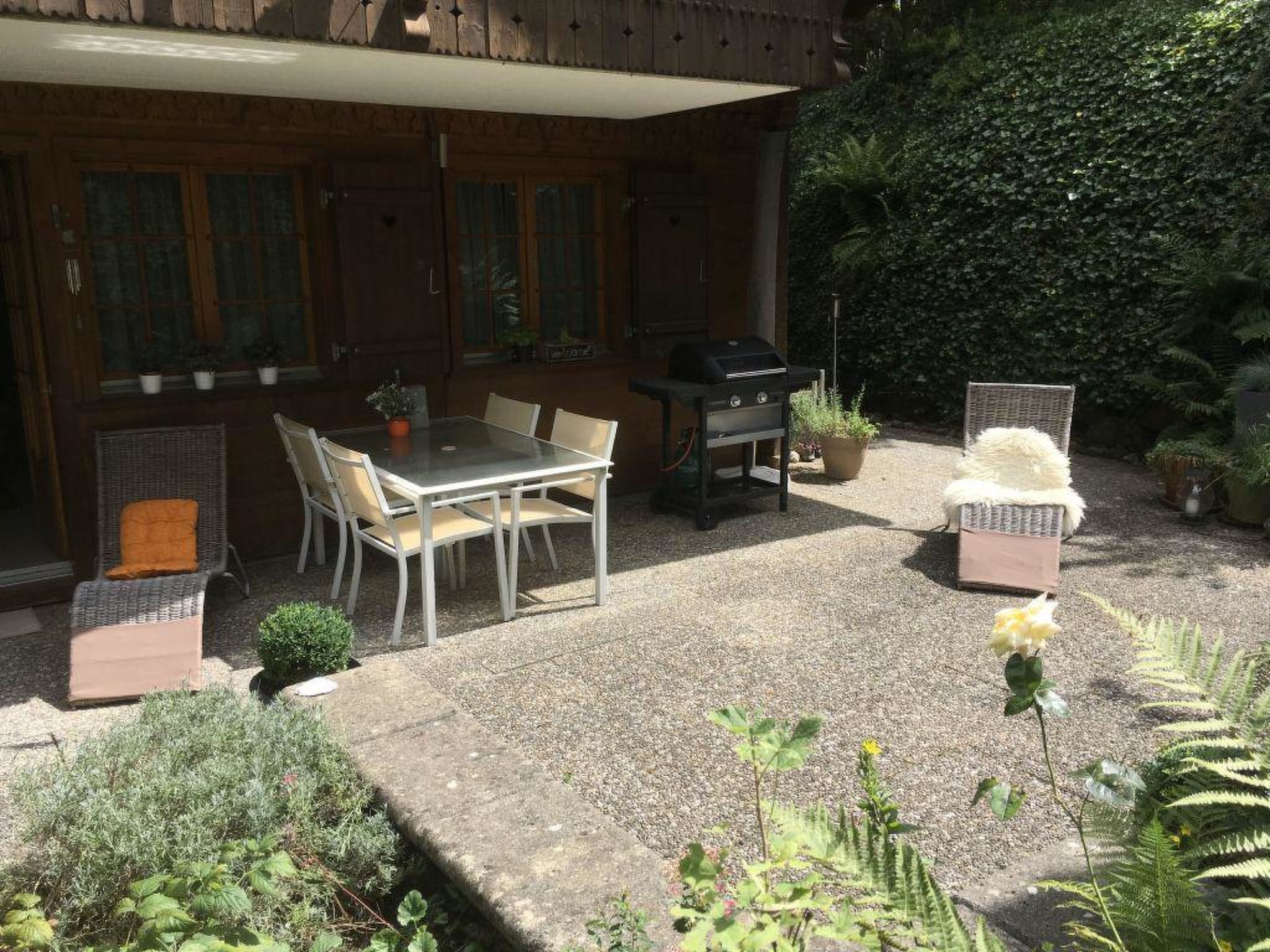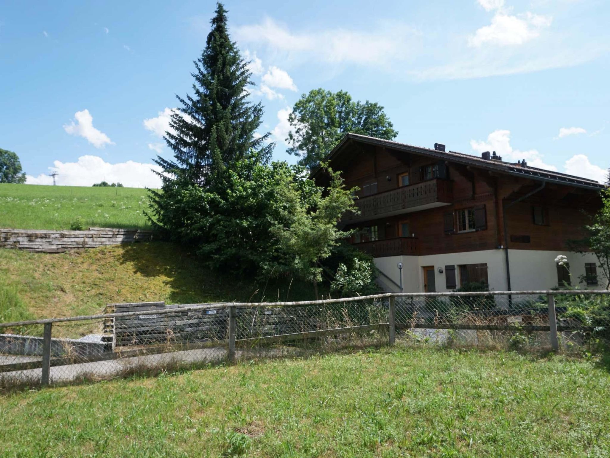 63 m2. Weitere Angaben des Anbieters: 3-Zimmerwohnung (63m2) im 1. Stock eines 1981 erbauten Chalets. Ruhige Lage und nahe des Zentrums sowie der Geschäfte. Über eine Treppe erreicht man die möblierte Terrasse mit Gartengrill. Garagenplatz und ein zusätzlicher Aussenparkplatz. Abstellraum für Sportgeräte sowie Waschmaschine und Wäschetrockner stehen im Untergeschoss zur gemeinschftlichen Benützung zur Verfügung. 2 Fahrräder, 2 Schlitten und ein Tischtennis-Tisch können kostenfrei benutzt werden. Die Skipiste ist in 1 Minute zu Fuss erreichbar, die Gondelbahn Rinderberg und der Bahnhof in 10 Minuten. Der Tennisplatz und das Schwimmbad befinden sich in der Nähe.