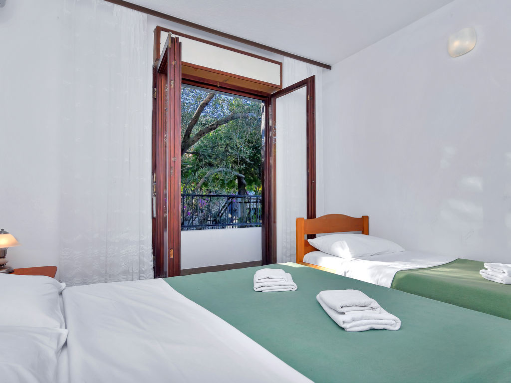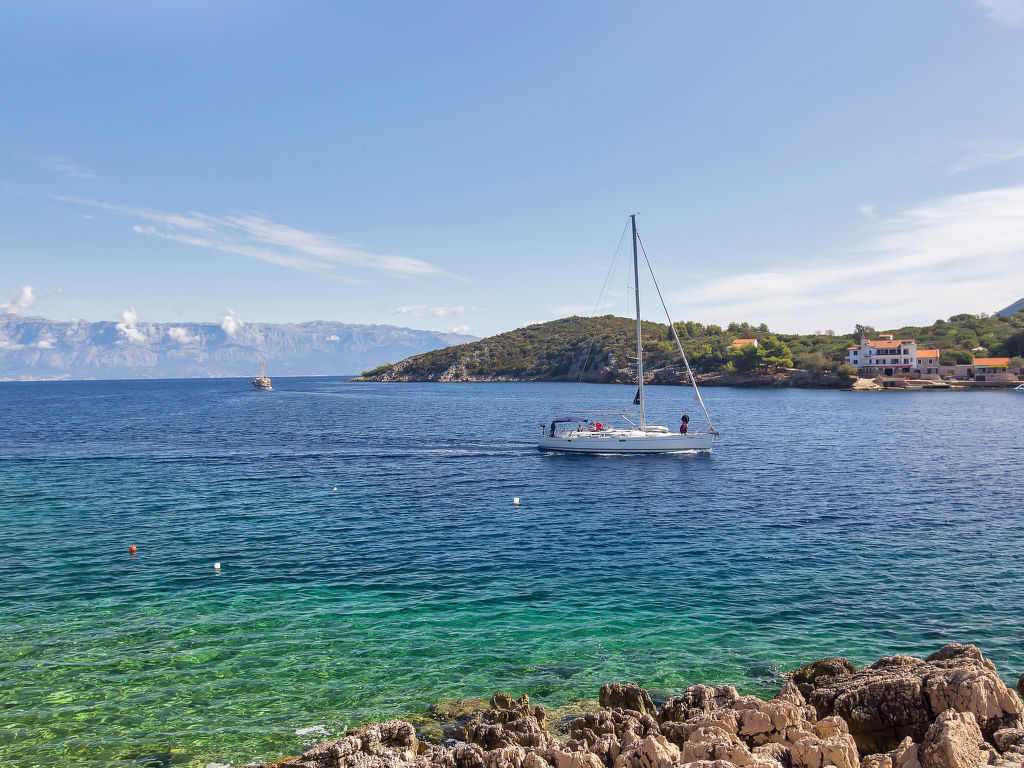 Mehrfamilienhaus "Rubin". 4 km vom Zentrum von Zastražišće, ruhige, sonnige Lage, 10 m vom Meer, 10 m vom Strand. Zur Mitbenutzung: Grundstück 1'000 m2. Grill. Im Hause: Internetzugang, Fahrradverleih. Parkplatz beim Haus auf dem Grundstück. Einkaufsgeschäft 4 km, Restaurant 15 km, Felsstrand, betonierter Strand 10 m. Bitte beachten: private Bootsanlegestelle, auf Anfrage. Motorbootverleih möglich (auf Anfrage, extra).