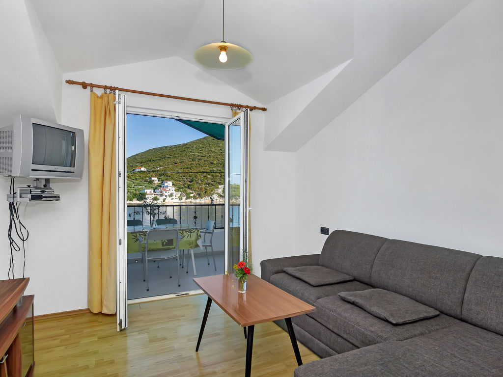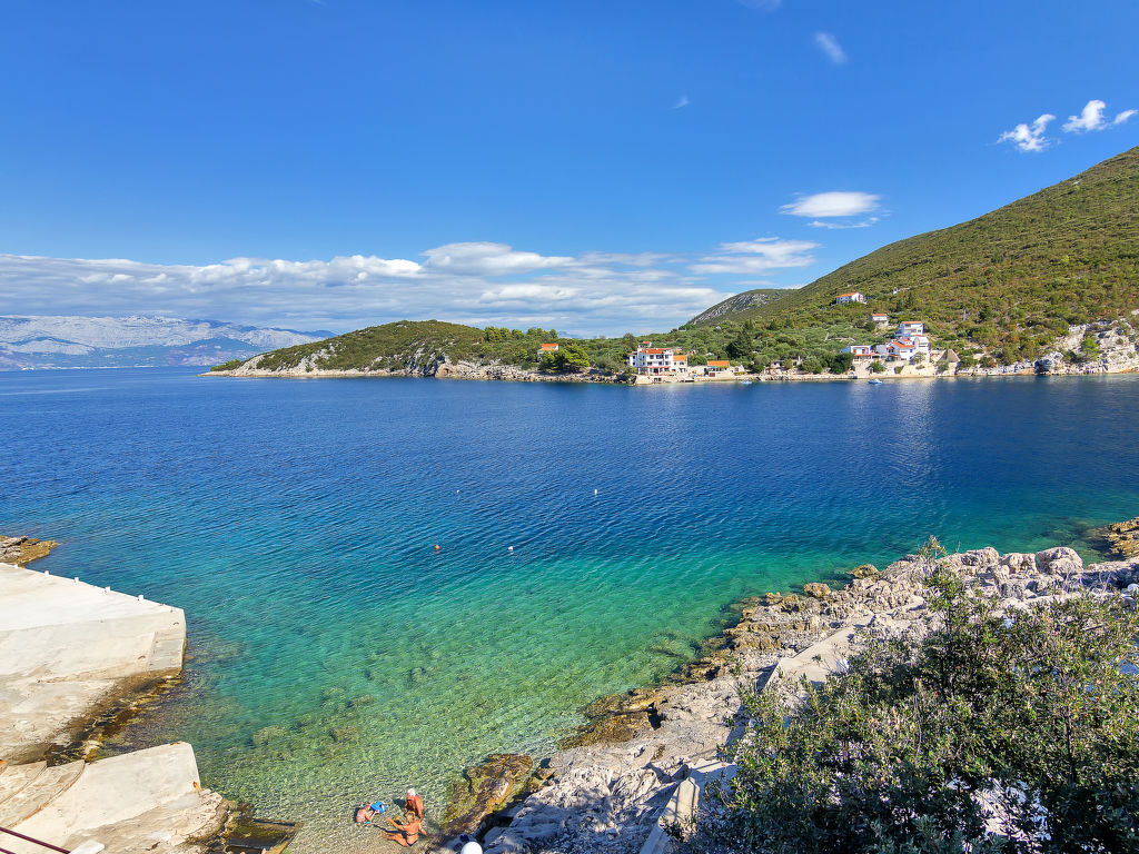Mehrfamilienhaus "Rubin". 4 km vom Zentrum von Zastražišće, ruhige, sonnige Lage, 10 m vom Meer, 10 m vom Strand. Zur Mitbenutzung: Grundstück 1'000 m2. Grill. Im Hause: Internetzugang, Fahrradverleih. Parkplatz beim Haus auf dem Grundstück. Einkaufsgeschäft 4 km, Restaurant 15 km, Felsstrand, betonierter Strand 10 m. Bitte beachten: private Bootsanlegestelle, auf Anfrage. Motorbootverleih möglich (auf Anfrage, extra).