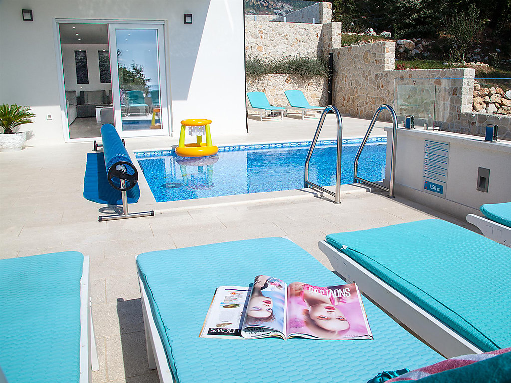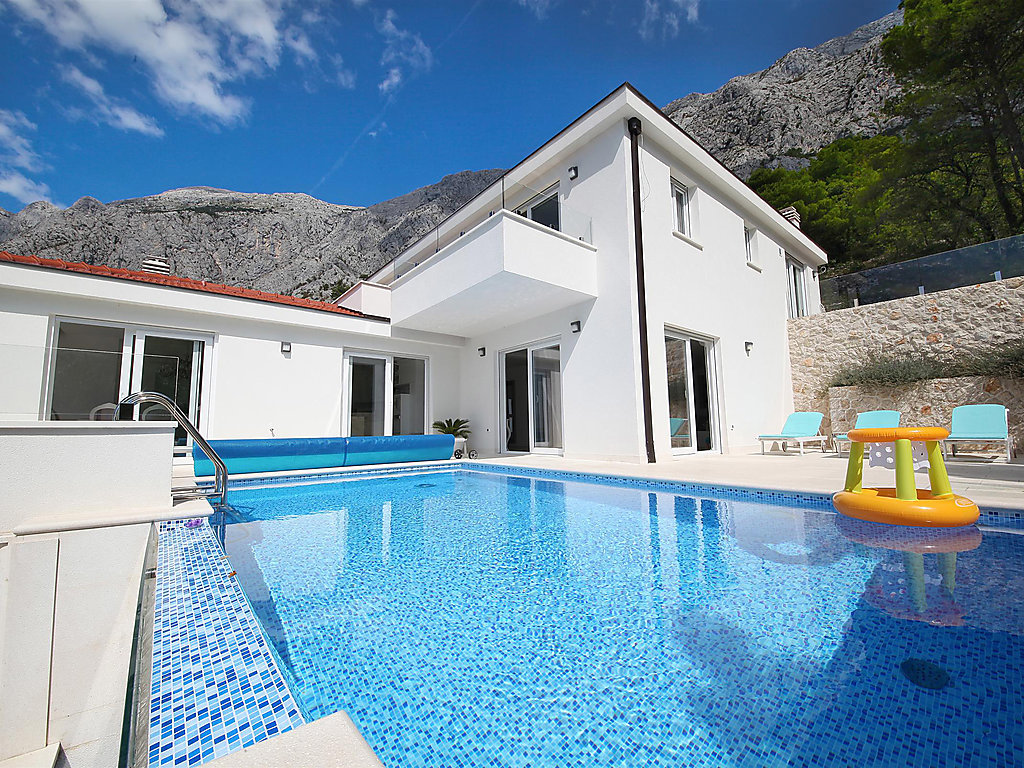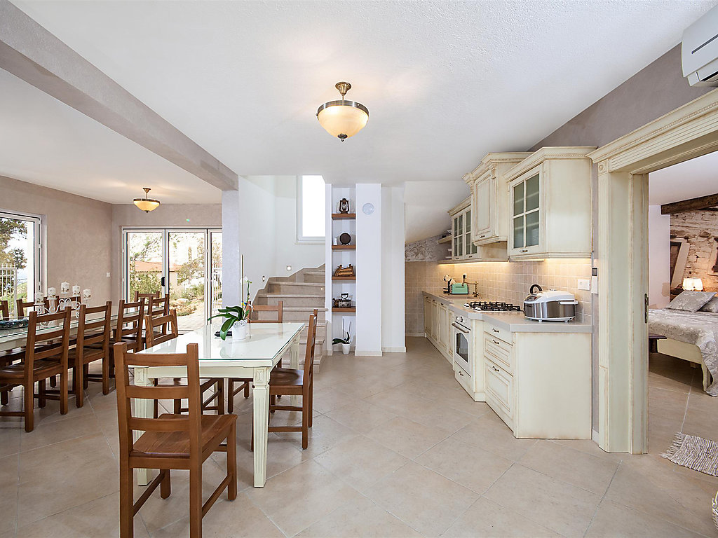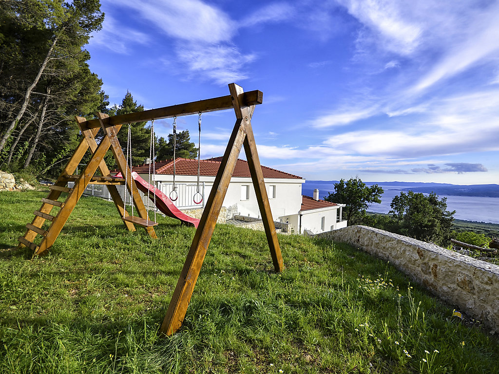 Villa "Ines", auf 3 Stockwerken. Oberhalb von Baško Polje, im Weiler Bast, 3.5 km vom Zentrum von Baško Polje, ruhige, sonnige, erhöhte Lage, 3 km vom Meer, 3 km vom Strand. Zur Alleinbenutzung: Grundstück 800 m2 (eingezäunt), Schwimmbad eckig, beheizt (6 x 4 m, 150 cm tief, 01.01.-31.12.). Aussendusche, Terrasse (80 m2), Gartenmöbel, Grill, Kinderspielplatz (Rutschbahn, Schaukel). Im Hause: Internetzugang, Sauna, Fitnessraum, Massage (extra). Waschmaschine. Koch möglich (extra). Parkplatz beim Haus auf dem Grundstück. Einkaufsgeschäft 3 km, Restaurant 100 m, Kieselstrand 3 km. Wanderwege ab Haus 40 m. Schwimmbad mit Hydromassage.