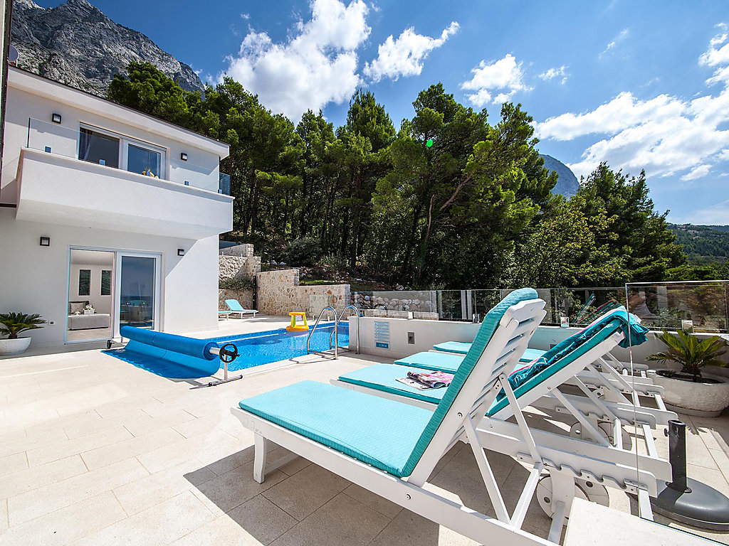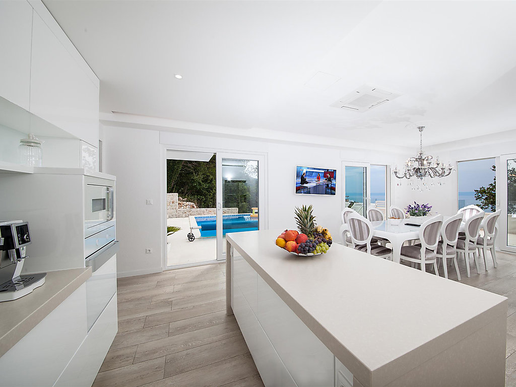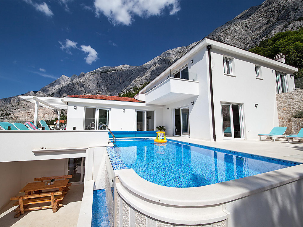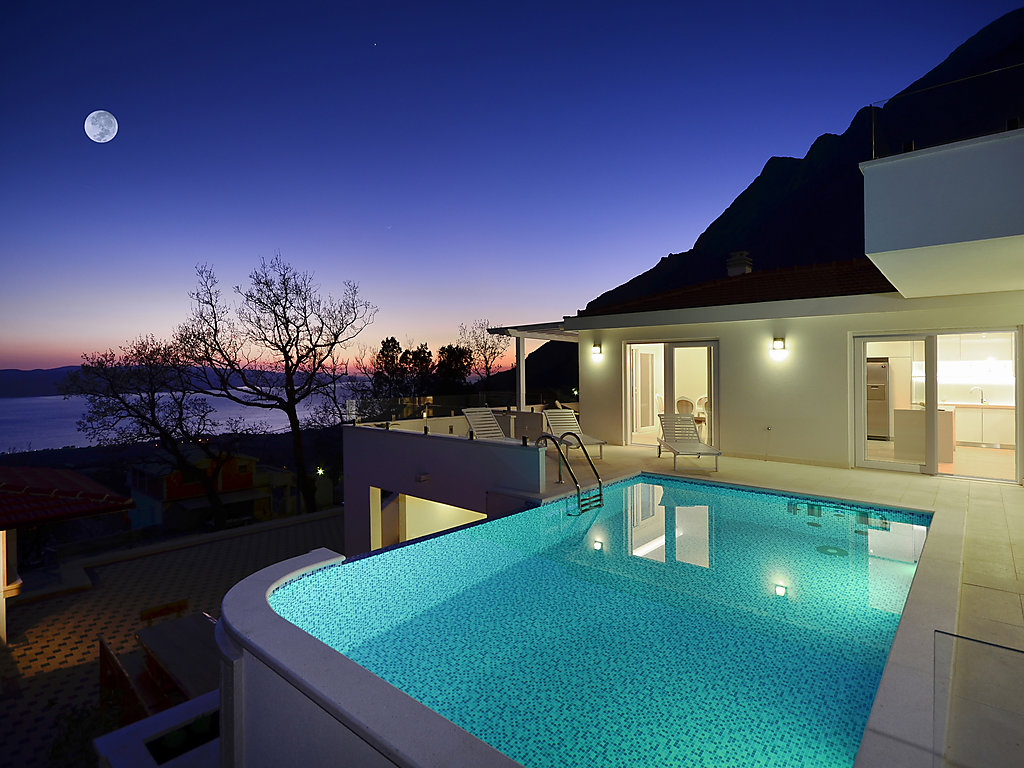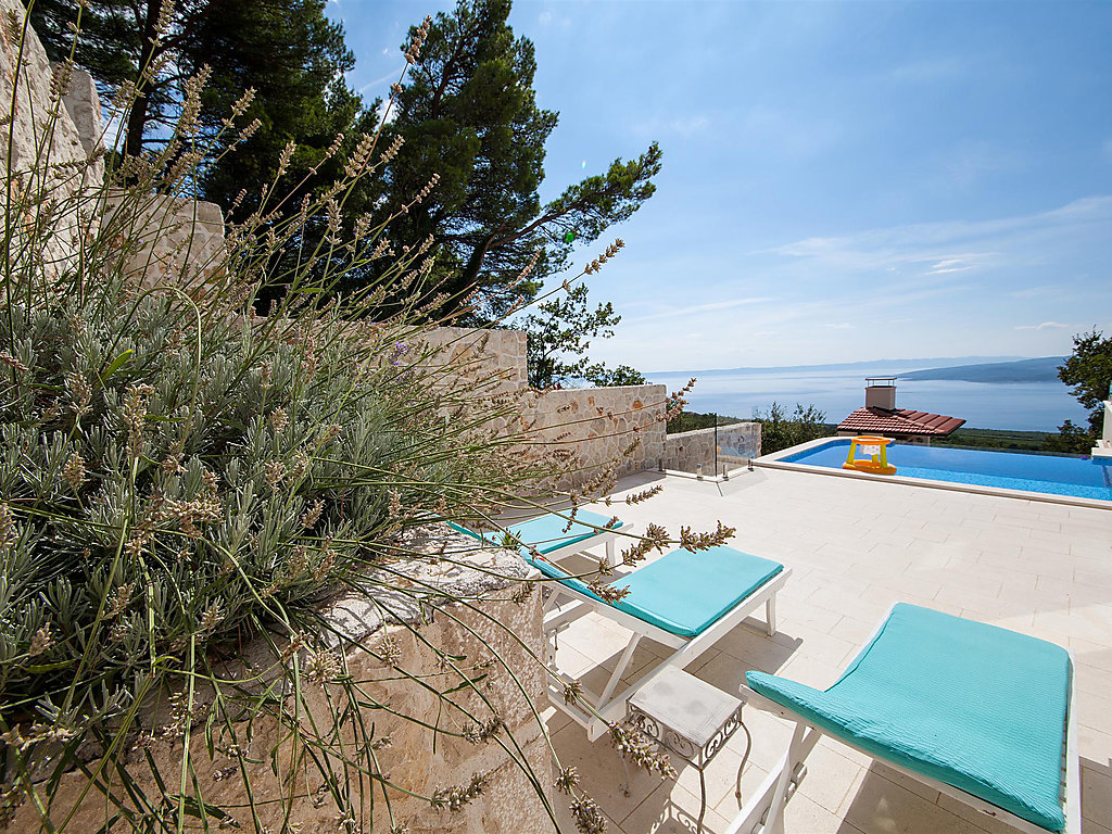 Villa "Ines", auf 3 Stockwerken. Oberhalb von Baško Polje, im Weiler Bast, 3.5 km vom Zentrum von Baško Polje, ruhige, sonnige, erhöhte Lage, 3 km vom Meer, 3 km vom Strand. Zur Alleinbenutzung: Grundstück 800 m2 (eingezäunt), Schwimmbad eckig, beheizt (6 x 4 m, 150 cm tief, 01.01.-31.12.). Aussendusche, Terrasse (80 m2), Gartenmöbel, Grill, Kinderspielplatz (Rutschbahn, Schaukel). Im Hause: Internetzugang, Sauna, Fitnessraum, Massage (extra). Waschmaschine. Koch möglich (extra). Parkplatz beim Haus auf dem Grundstück. Einkaufsgeschäft 3 km, Restaurant 100 m, Kieselstrand 3 km. Wanderwege ab Haus 40 m. Schwimmbad mit Hydromassage.