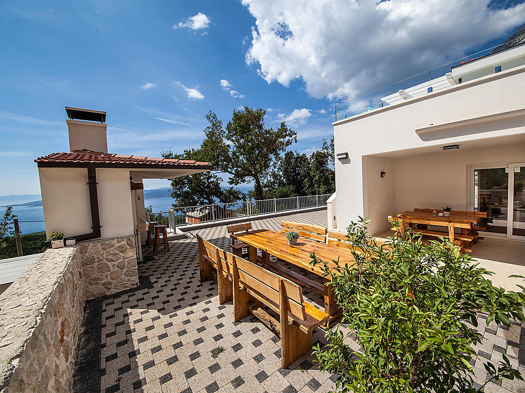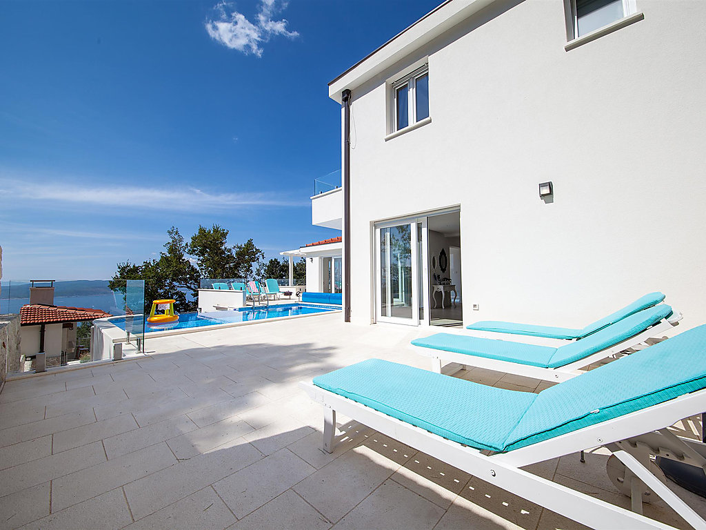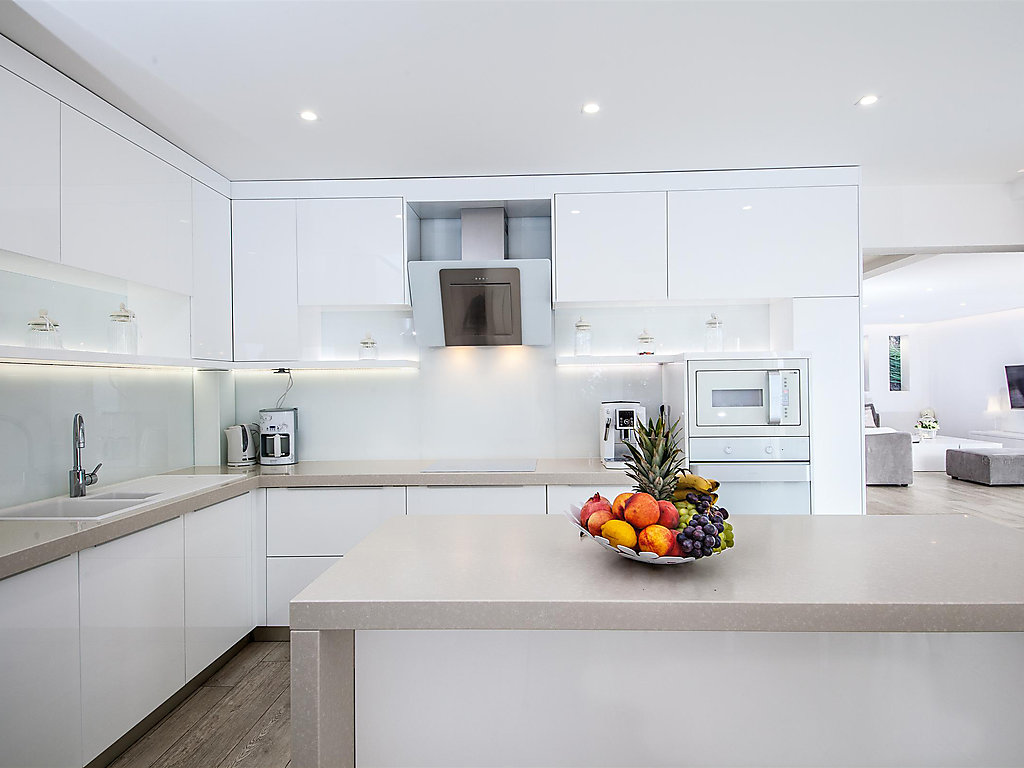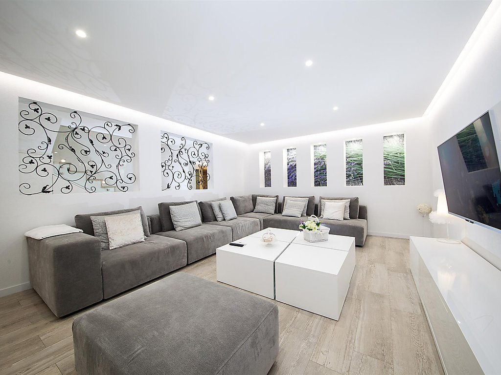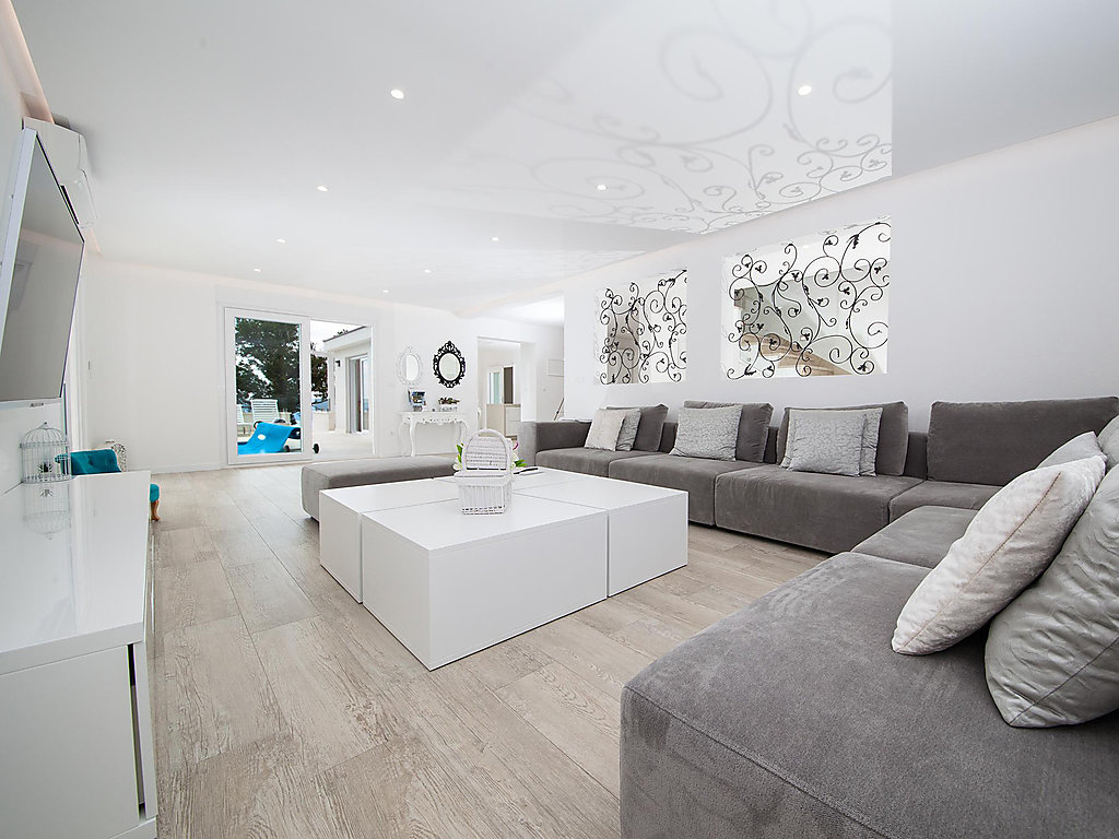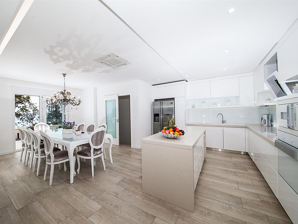 6-Zimmer-Villa 450 m2 auf 3 Stockwerken, Südlage. Komfortabel und geschmackvoll eingerichtet: Wohnzimmer 40 m2 mit Sat-TV (Flachbildschirm), Klimaanlage. Ausgang zur Terrasse. Esszimmer mit Sat-TV (Flachbildschirm). Ausgang zur Terrasse. Offene Küche (Backofen, Geschirrspüler, 4 Glaskeramikherd Platten, Mikrowelle, Tiefkühler). Sep. WC. Unteres Geschoss: 1 Zimmer mit 1 franz. Bett (180 cm, Länge 200 cm), Dusche/WC und Sat-TV (Flachbildschirm), Klimaanlage. Esszimmer. Ausgang zur Terrasse. Küche (4 Kochplatten, Backofen, Geschirrspüler). Sep. WC. Obergeschoss: 1 Zimmer mit 1 franz. Bett (180 cm, Länge 200 cm), Dusche/WC und Sat-TV (Flachbildschirm), Klimaanlage. Ausgang zum Balkon. 2 Zimmer, jedes Zimmer mit 1 franz. Bett (180 cm, Länge 200 cm), Dusche/WC und Sat-TV (Flachbildschirm), Klimaanlage. Ausgang zur Terrasse. 1 Zimmer mit 1 franz. Bett (180 cm, Länge 200 cm), Bad/WC, Sprudelbad und Sat-TV (Flachbildschirm), Klimaanlage. Ausgang zum Balkon. Warmluftheizung. 2 Balkone 8 m2, Terrasse 80 m2 teilweise überdacht, Terrasse 50 m2 teilweise überdacht. Terrassenmöbel, Liegestühle. Schöne Panoramasicht auf das Meer. Zur Verfügung: Safe, Haartrockner. Internet (Wireless LAN, gratis). Terrasse 35 m2, Terrasse 25 m2.