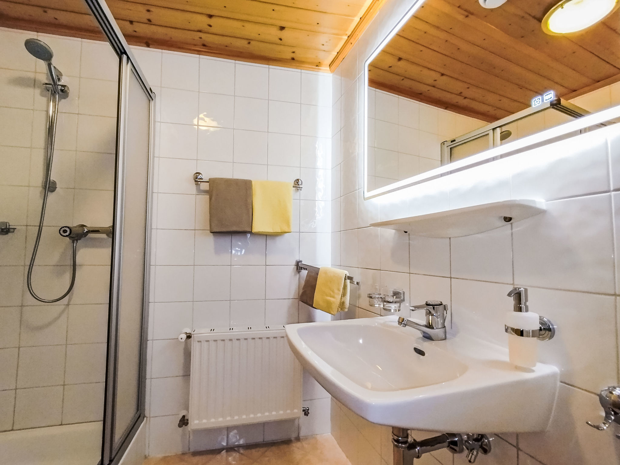 3-Zimmer-Wohnung, Erdgeschoss (Hanglage), ca. 55 m². Flur mit Garderobe. Wohnküche (4 Ceranfelder, Backofen, Mikrowelle, Geschirrspüler, Kühlschrank, Kaffeemaschine, Wasserkocher, Toaster) mit Essplatz, Sat-TV, Radio und Terrasse. Doppelzimmer mit Sat-TV. Zweibettzimmer mit Sat-TV und Dusche/WC. Dusche/WC. Bei Belegung mit weniger Personen als der maximalen Personenzahl stehen nicht alle Wohneinheiten zur Verfügung.