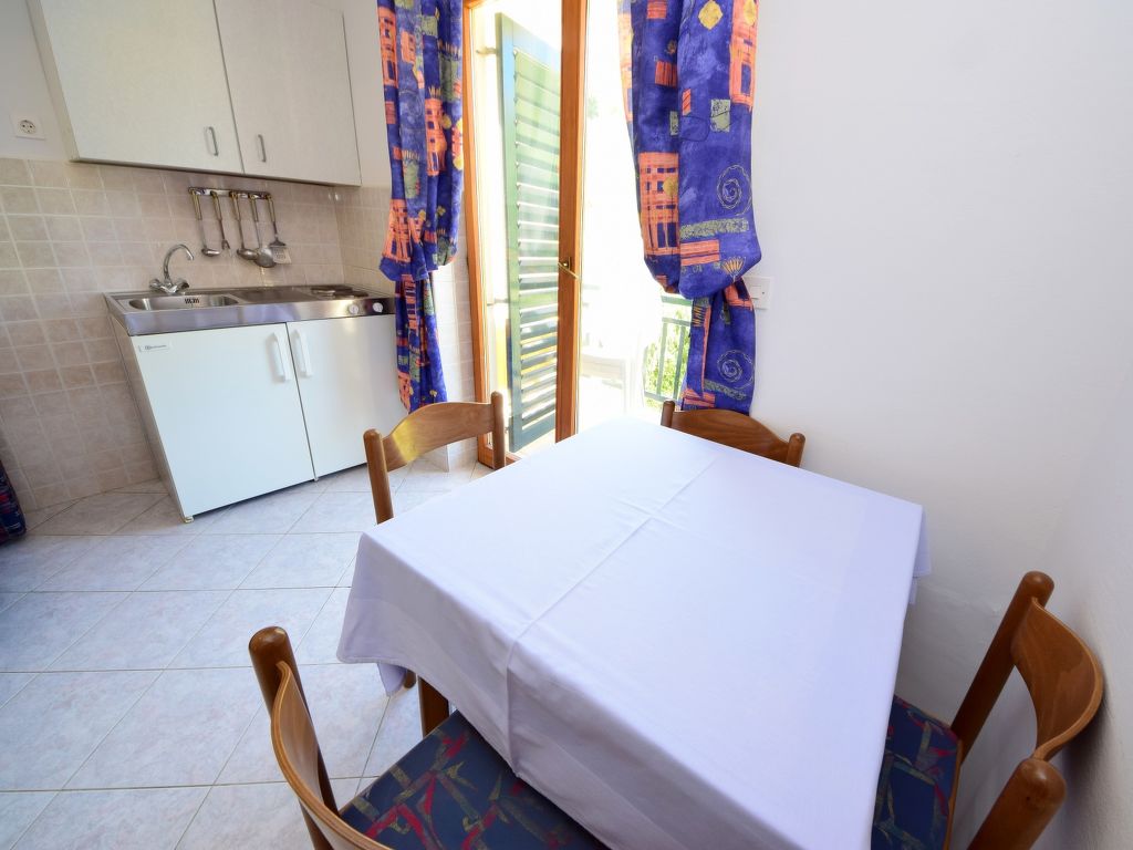 2-Zimmer-Wohnung 24 m2 im 1. Stock, Südlage. Wohn-/Esszimmer 12 m2 mit 2 Betten (80 cm, Länge 200 cm), Klimaanlage. Ausgang zur Terrasse. 1 Zimmer mit 1 Doppelbett (2 x 90 cm, Länge 200 cm). Offene Küche (2 Kochplatten). Dusche/WC. Klimaanlage (extra). Terrasse 8 m2. Terrassenmöbel. Eingeschränkte Sicht auf das Meer. Zur Verfügung: Internet (Wireless LAN, gratis). Maximal 1 Haustier/Hund erlaubt.