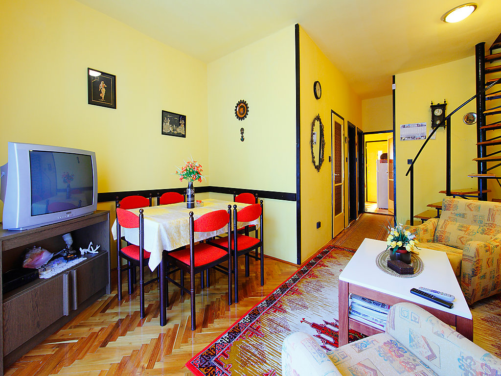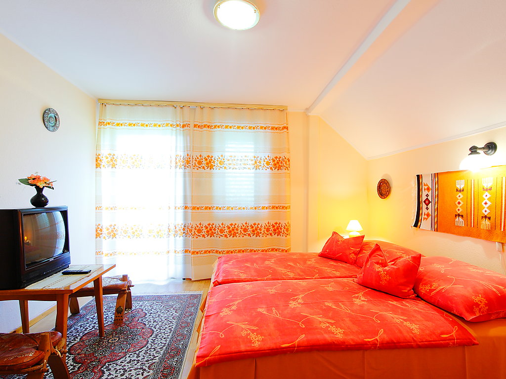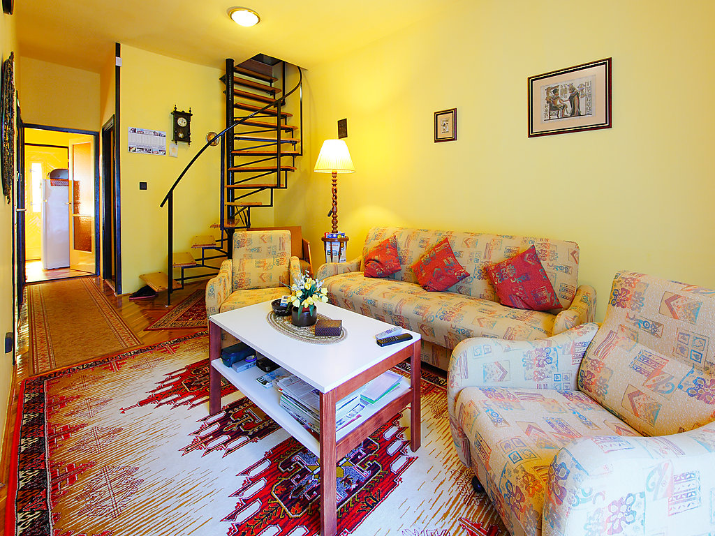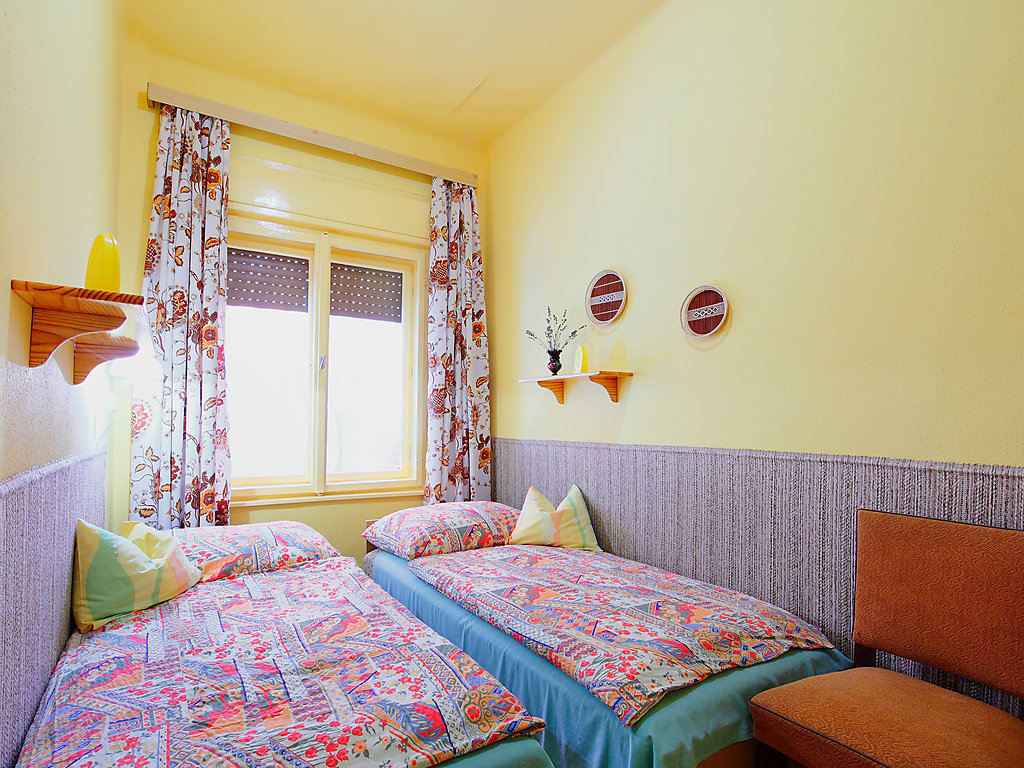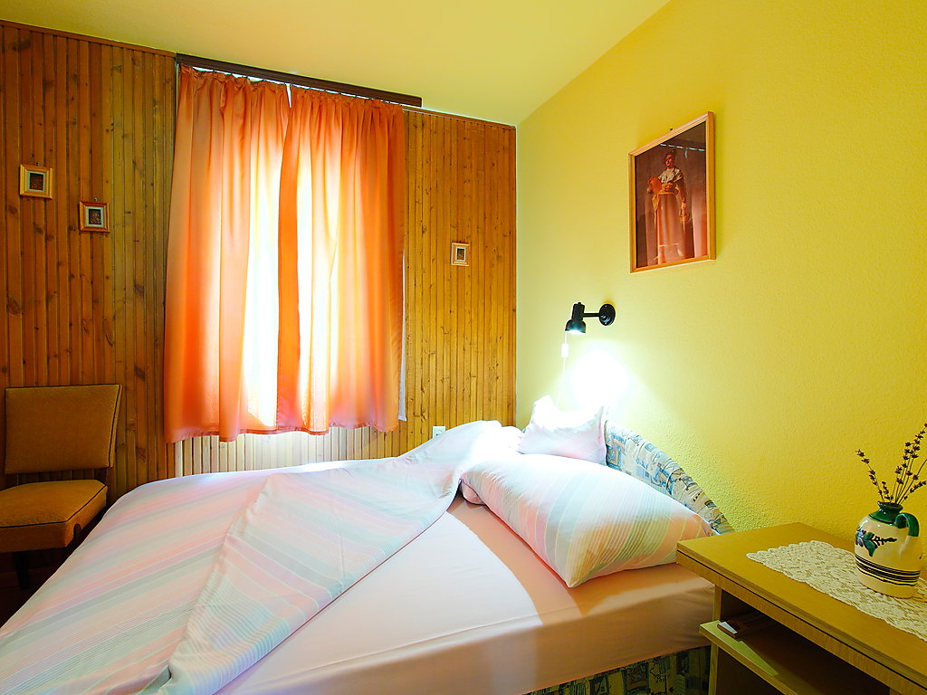 5-Zimmer-Doppelhaushälfte 75 m2. Wohnzimmer mit Sat-TV und Internationale TV-Sender. Ausgang zur Terrasse. 1 Zimmer mit 2 Betten. Kleine Küche (4 Kochplatten, Backofen, Mikrowelle). Dusche/WC. Obergeschoss: (steile Treppe) 1 Zimmer mit 2 Betten. Ausgang zum Balkon. 1 Zimmer mit 1 franz. Bett. Dusche/WC. Grosser Balkon 18 m2, Balkon 7 m2, grosse Terrasse 28 m2. Terrassenmöbel. Zur Verfügung: Kinderhochstuhl, Babybett bis 3 Jahre. Parkplatz (eingezäunt). MA19010182