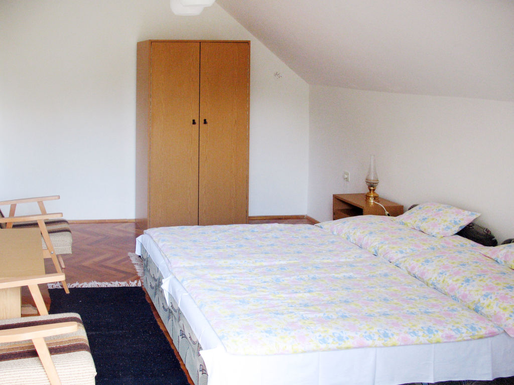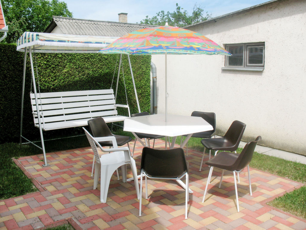 Einfamilienhaus "Sport". 700 m vom Zentrum von Mariafürdö, am Ortsrand, 15 km vom Zentrum von Keszthely, 58 km vom Zentrum von Siofok, in einem Wohnquartier, 900 m vom See. Zur Alleinbenutzung: Grundstück 800 m2 (eingezäunt), gepflegter Garten mit Rasen und Pflanzen, Aufstellpool (3 m2, 40 cm tief, 15.05.-15.09.). Aussendusche, Kinderspielplatz (Schaukel, Sandkasten), Parkplatz (für 3 Autos), Einzelgarage. Einkaufsgeschäft 400 m, Supermarkt 8 km, Grasstrand 900 m.